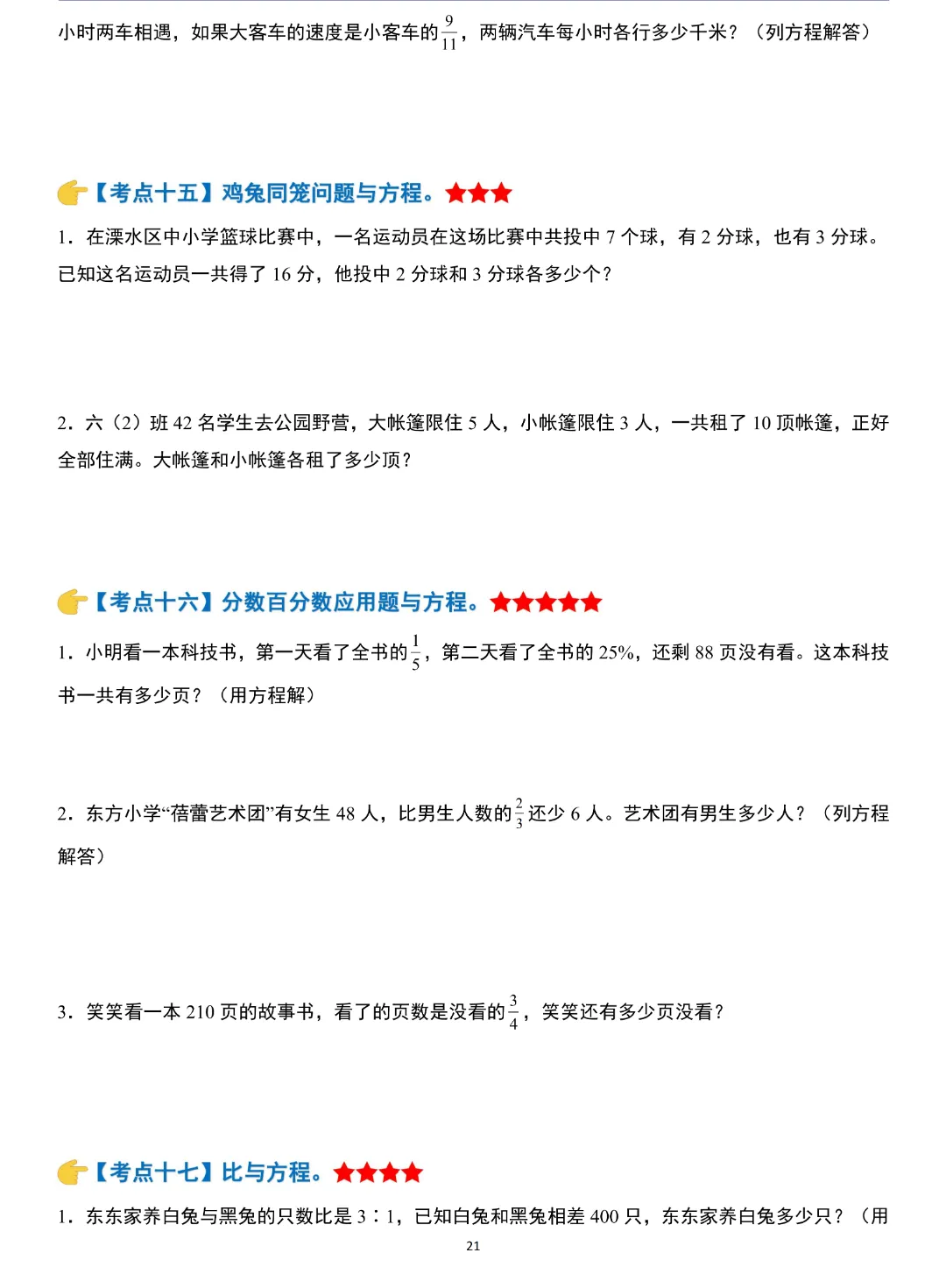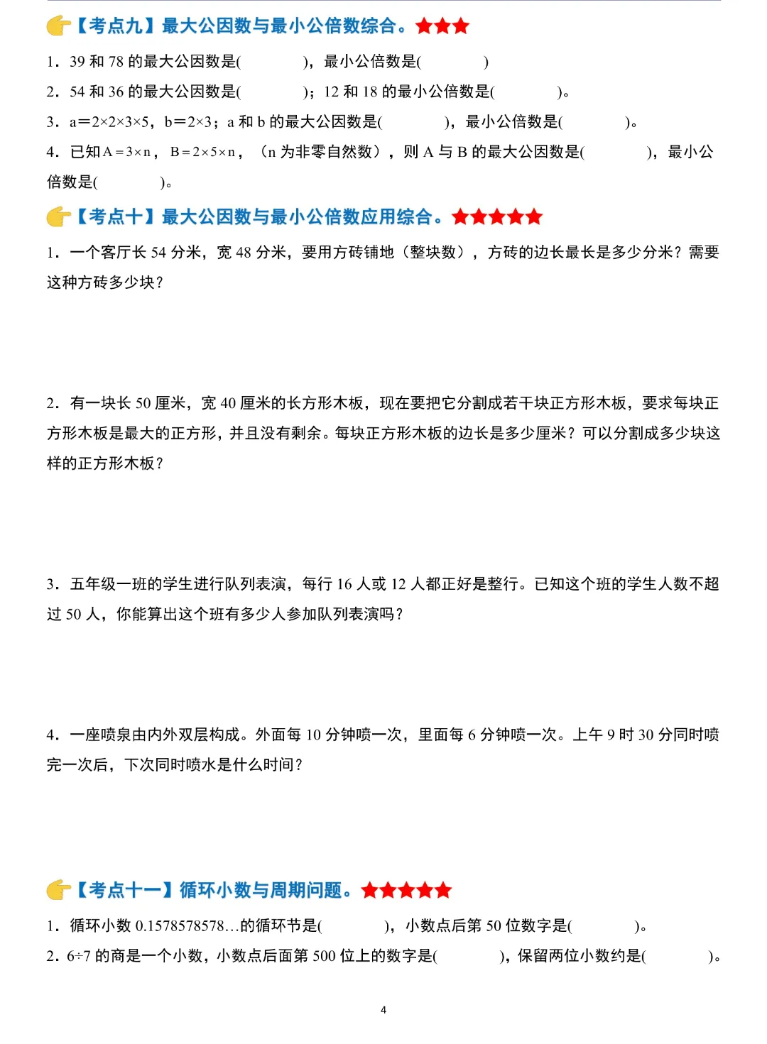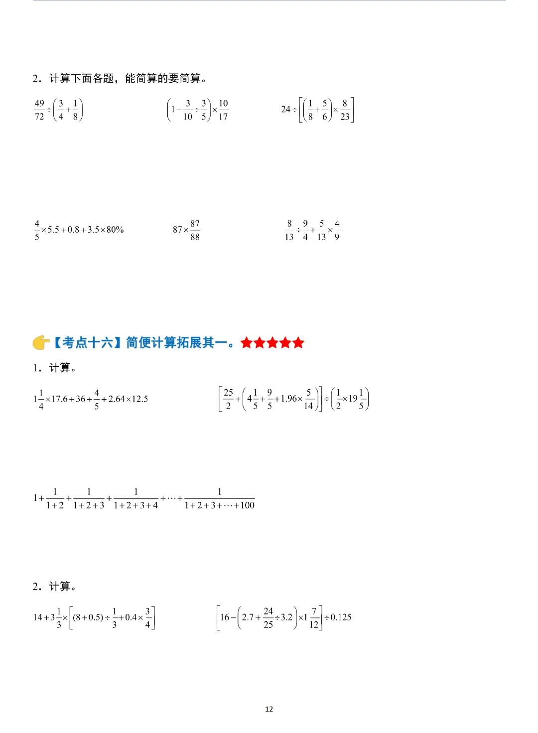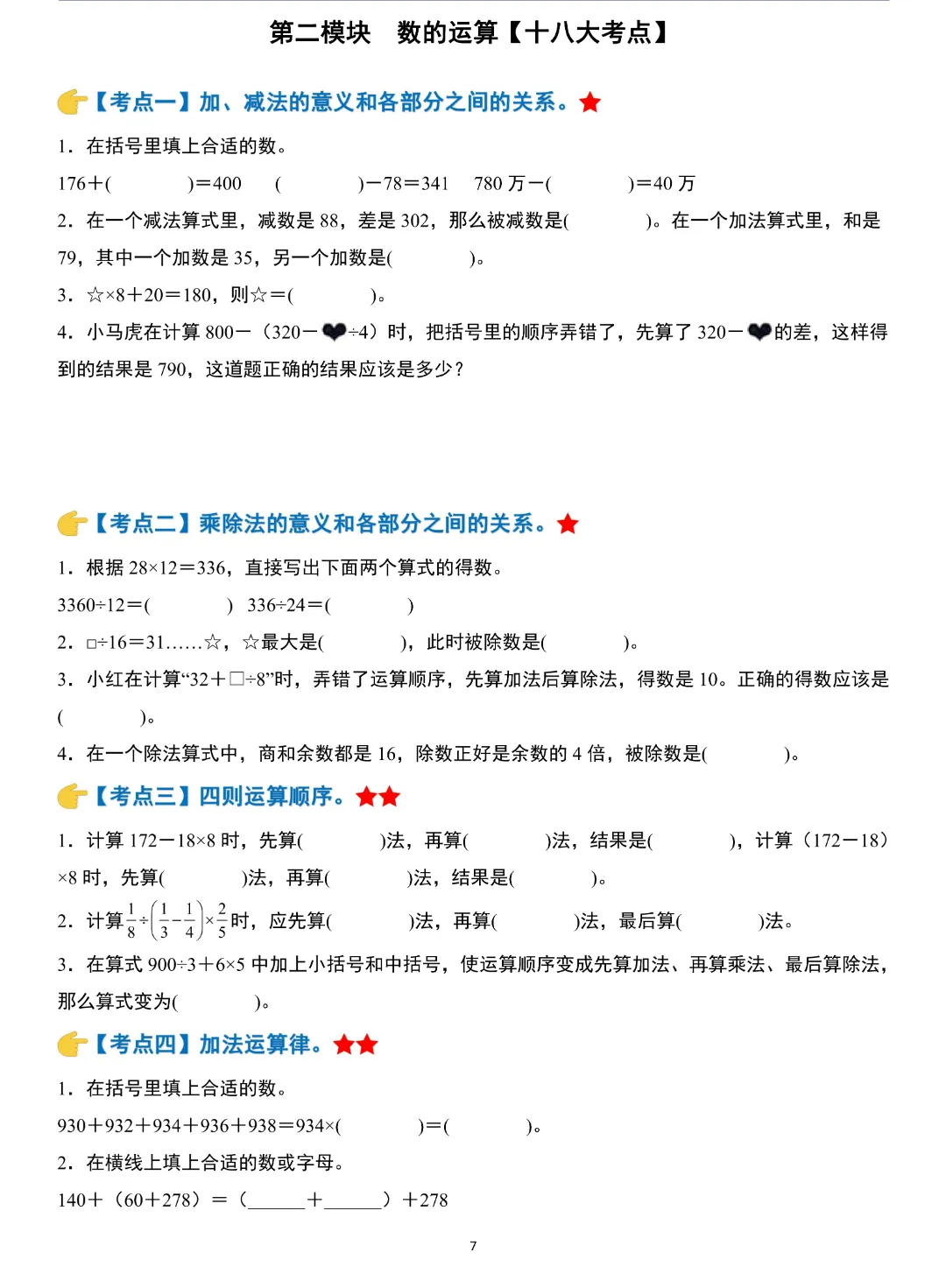 小升初数学模块综合复习259个考点练习版,含答案解析,电子版可打印