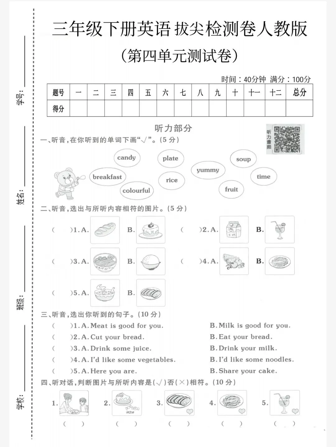 🌞🌞🌺🌺大家好,今天给大家整理了【26春人教版三年级下册英语】【第四单元测试卷】内容都是老师课堂重点+常考题型,家长可以直接保存给孩子使用。