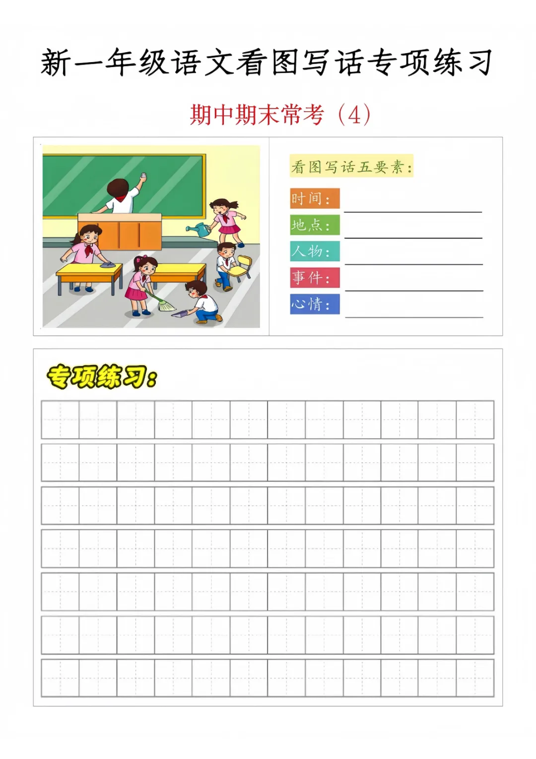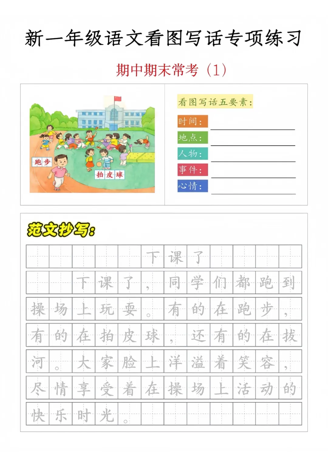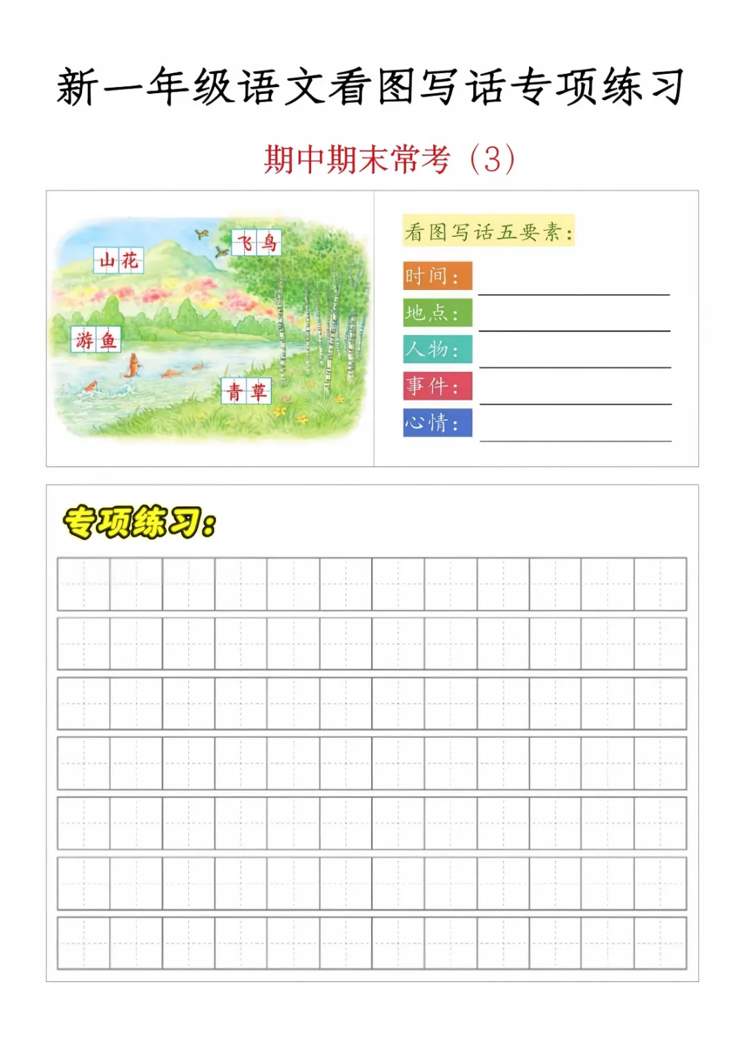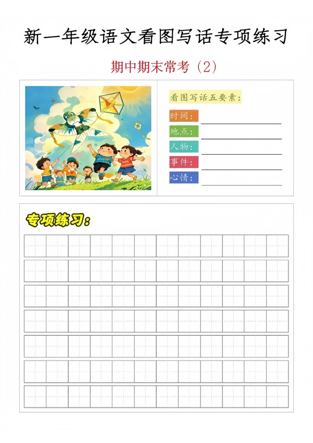 2026年一年级下册语文看图写话(抄写+空白)44页|电子版可打印
