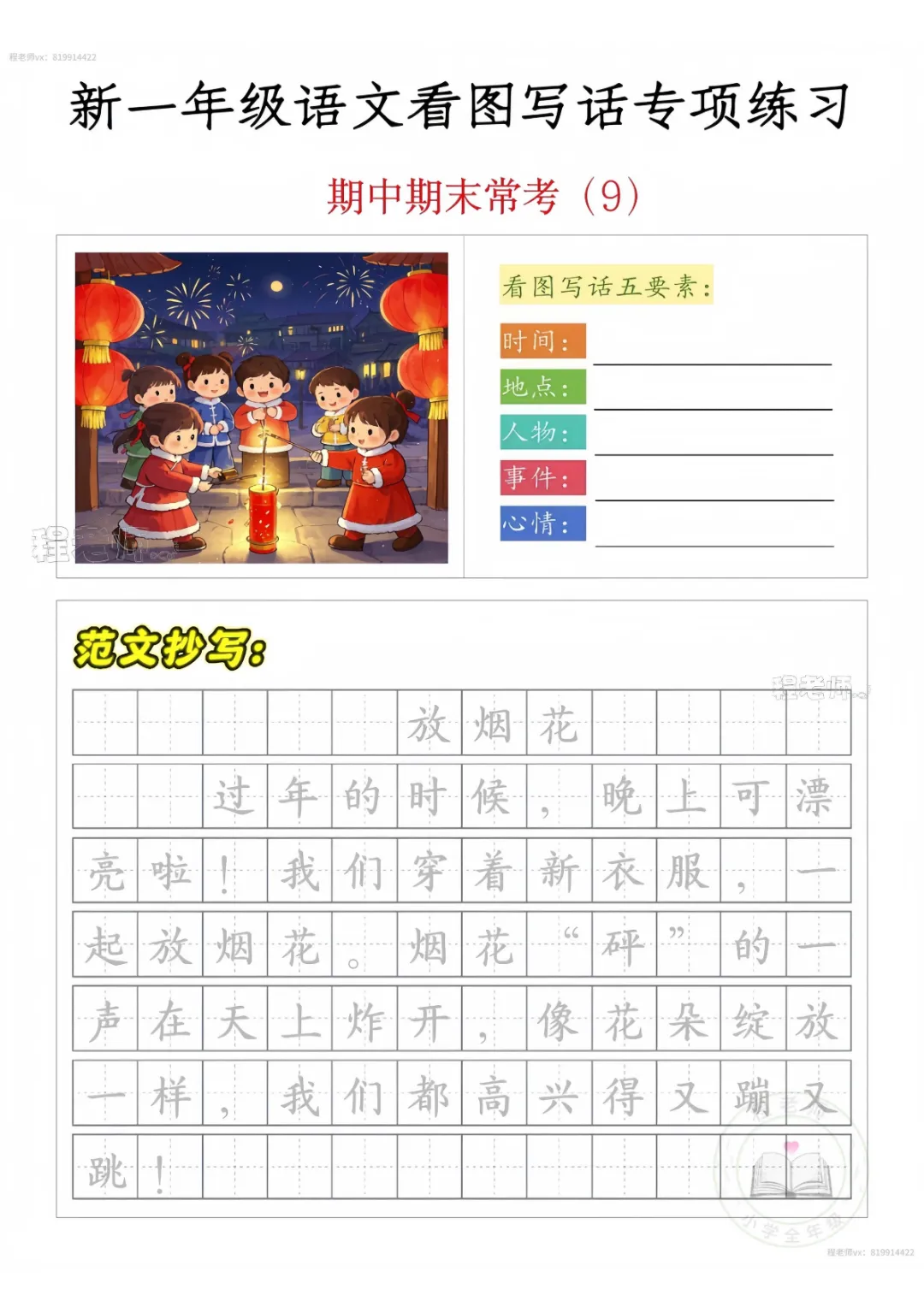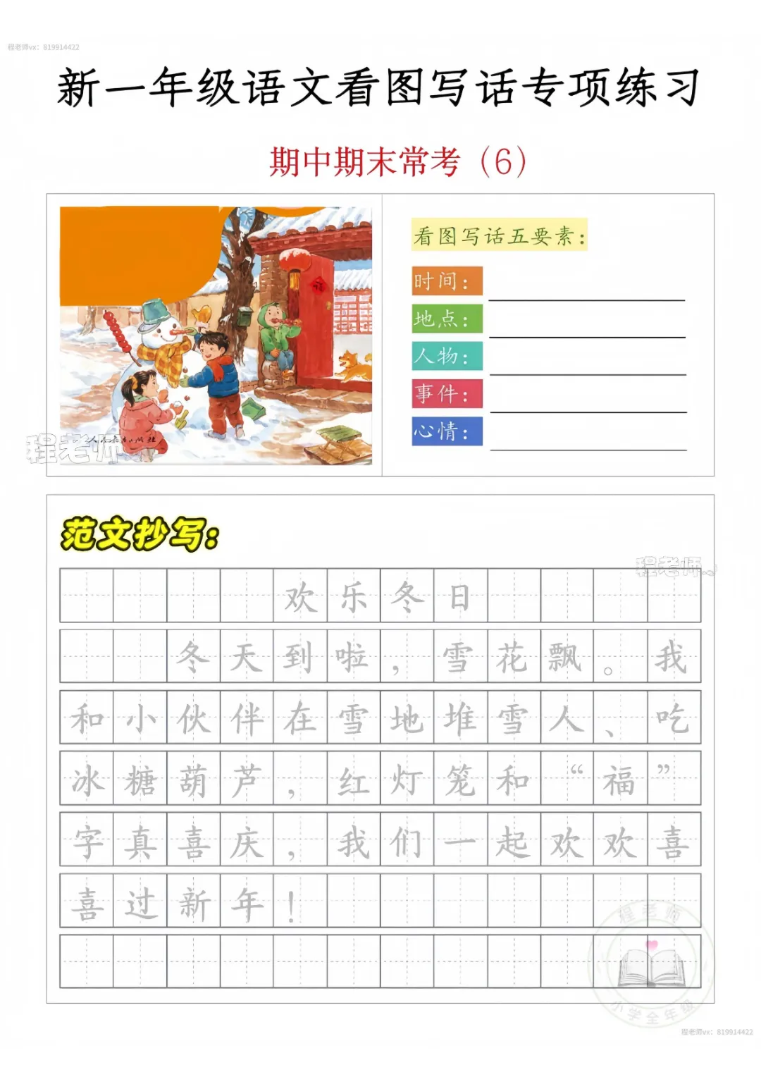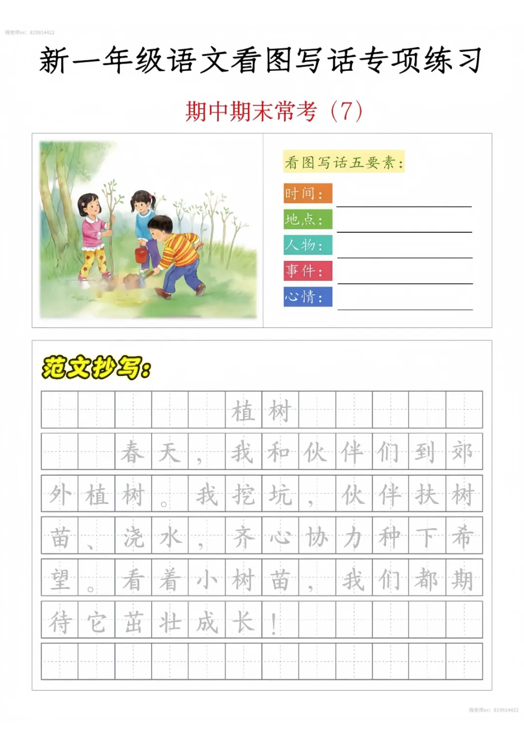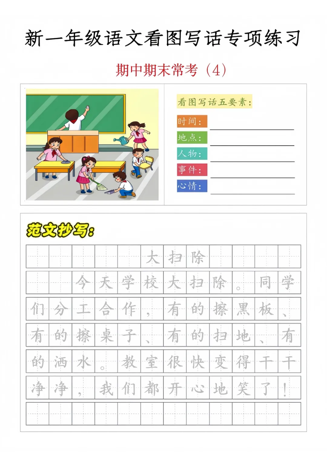 2026年一年级下册语文看图写话(抄写+空白)44页|电子版可打印