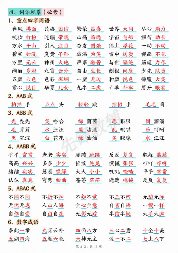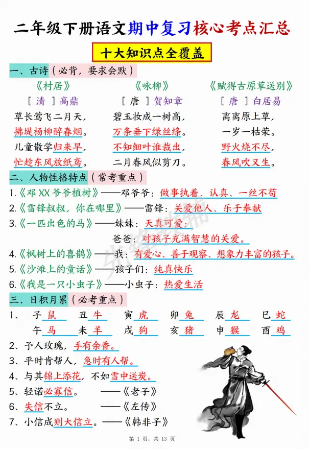 26(新版)二年级下册期中复习考点总结共13页完整版,电子版高清可下载可打印。因篇幅有限,仅展示部分内容。有需要的家长快给孩子领取一份,让孩子练习吧!