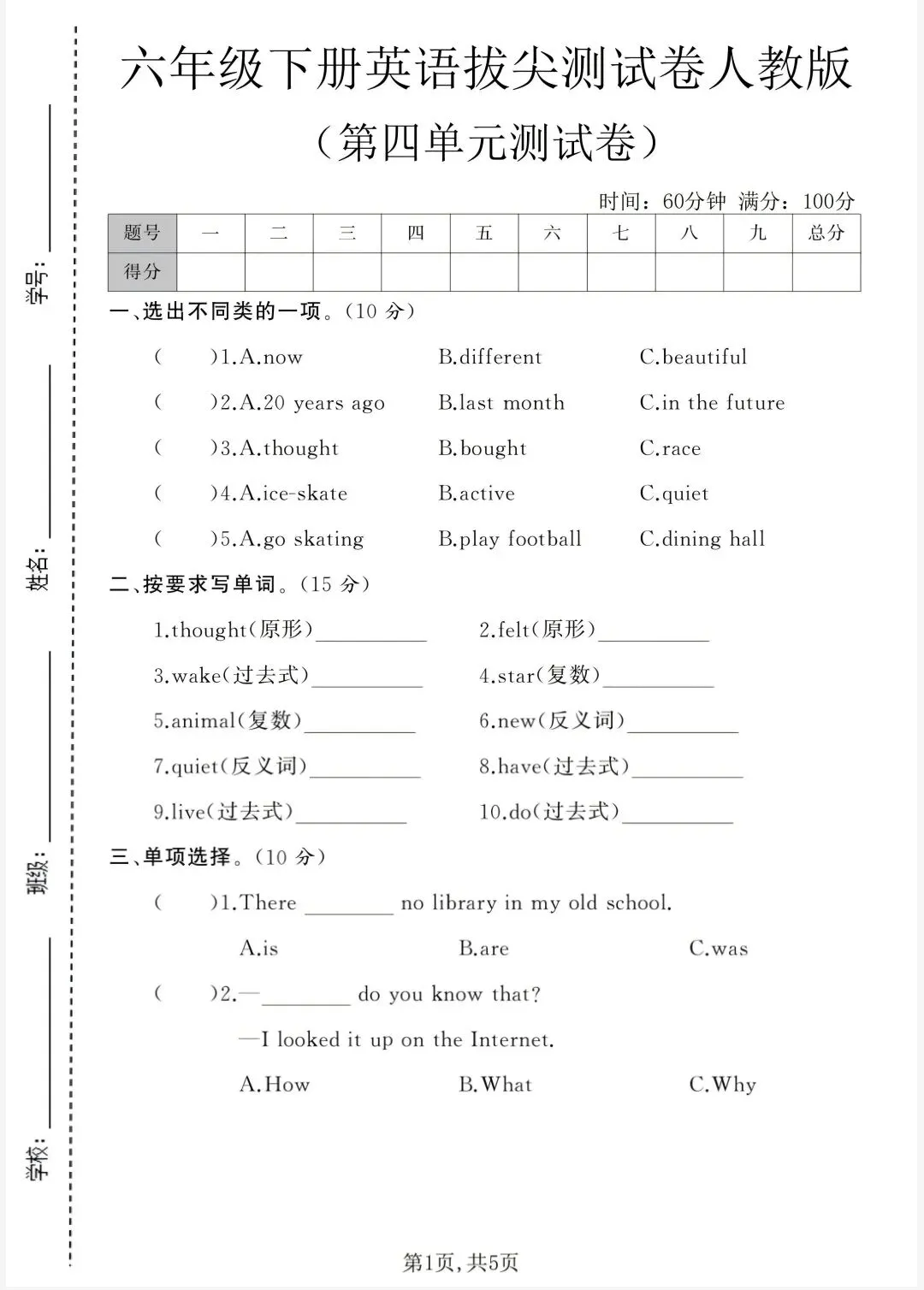 人教pep版 | 六年级下册 英语《 第四单元拔尖测试卷 》附答案 可下载打印