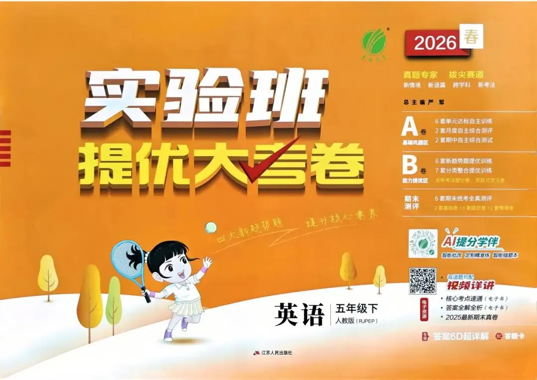 大家好,我是七宝妈,专注于1-9年级教育教学资源分享,今天给大家分享的是:专项练习|26春 小学英语 人教PEP版《实验班提优大考卷》五年级下册,PDF电子版资料可下载打印。文章末尾点击“阅读全文”可直接领取,欢迎收藏和下载。如果觉得这份资料不错,建议分享到班级群或年级群,让其他家长也打印出来,帮助孩子学习;如果觉得合适,请支持正版!