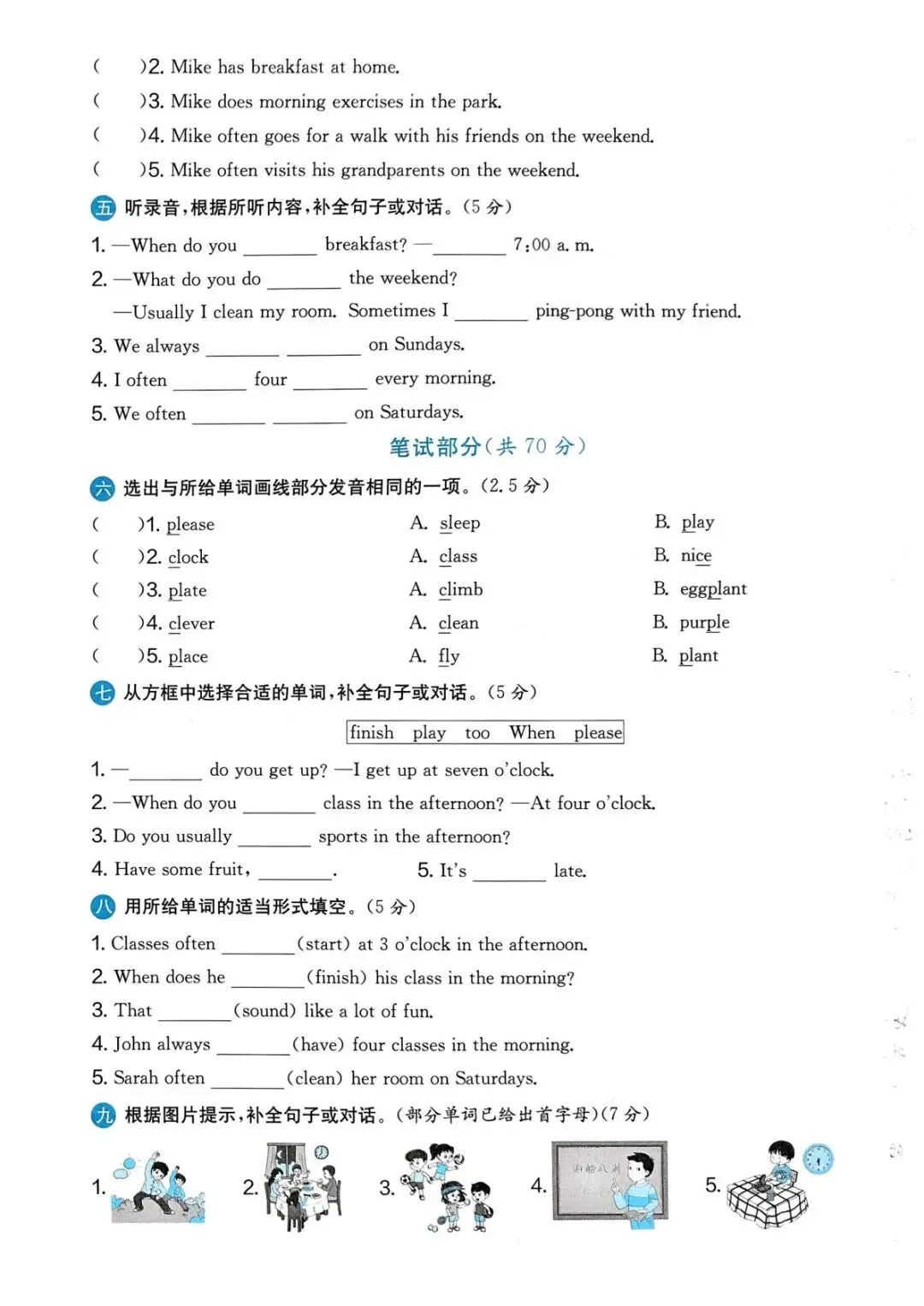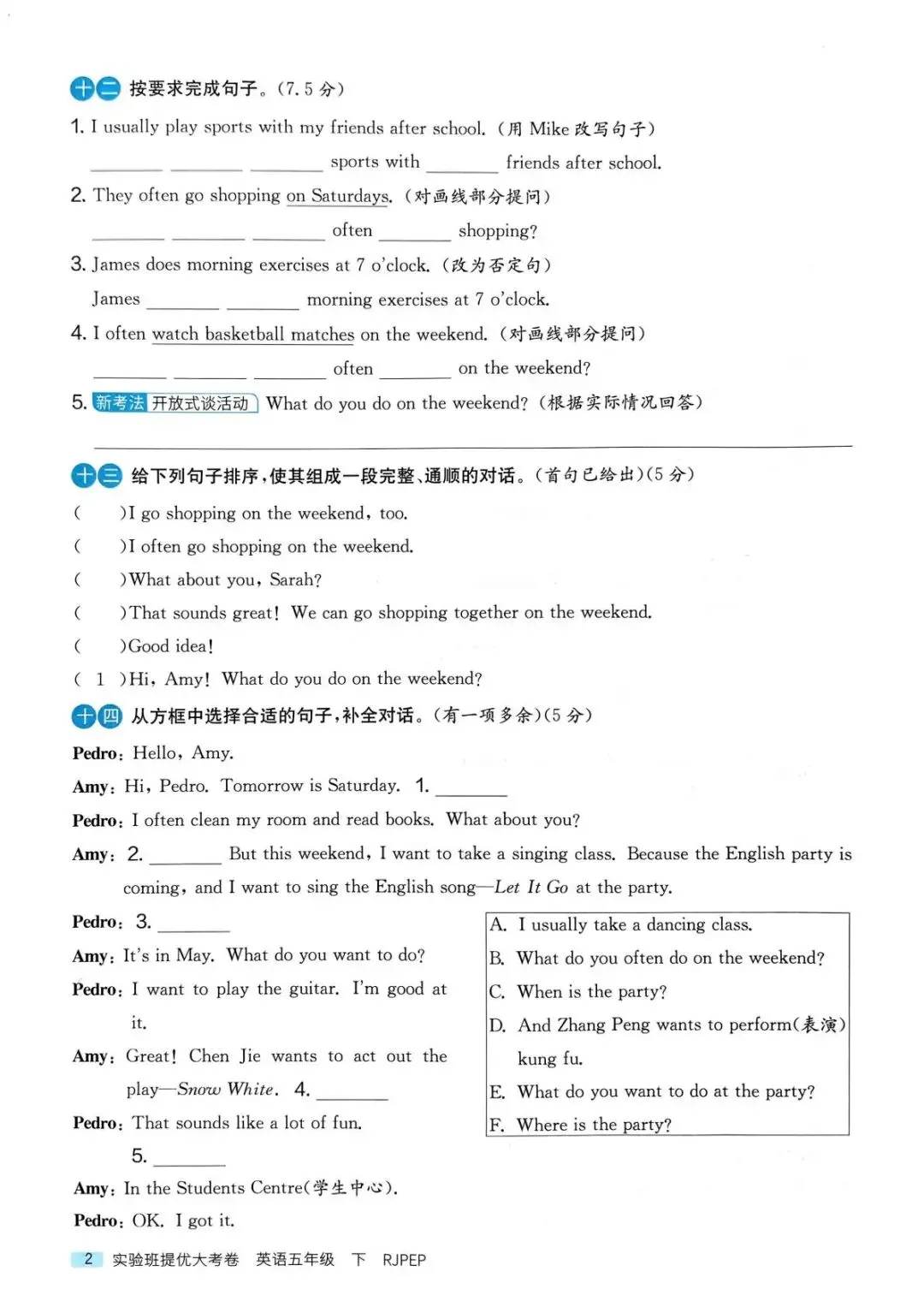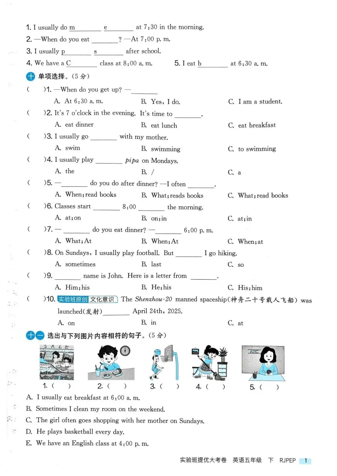 专项练习|26春 小学英语 人教PEP版《实验班提优大考卷》五年级下册 ,附链接可下载打印-拷贝