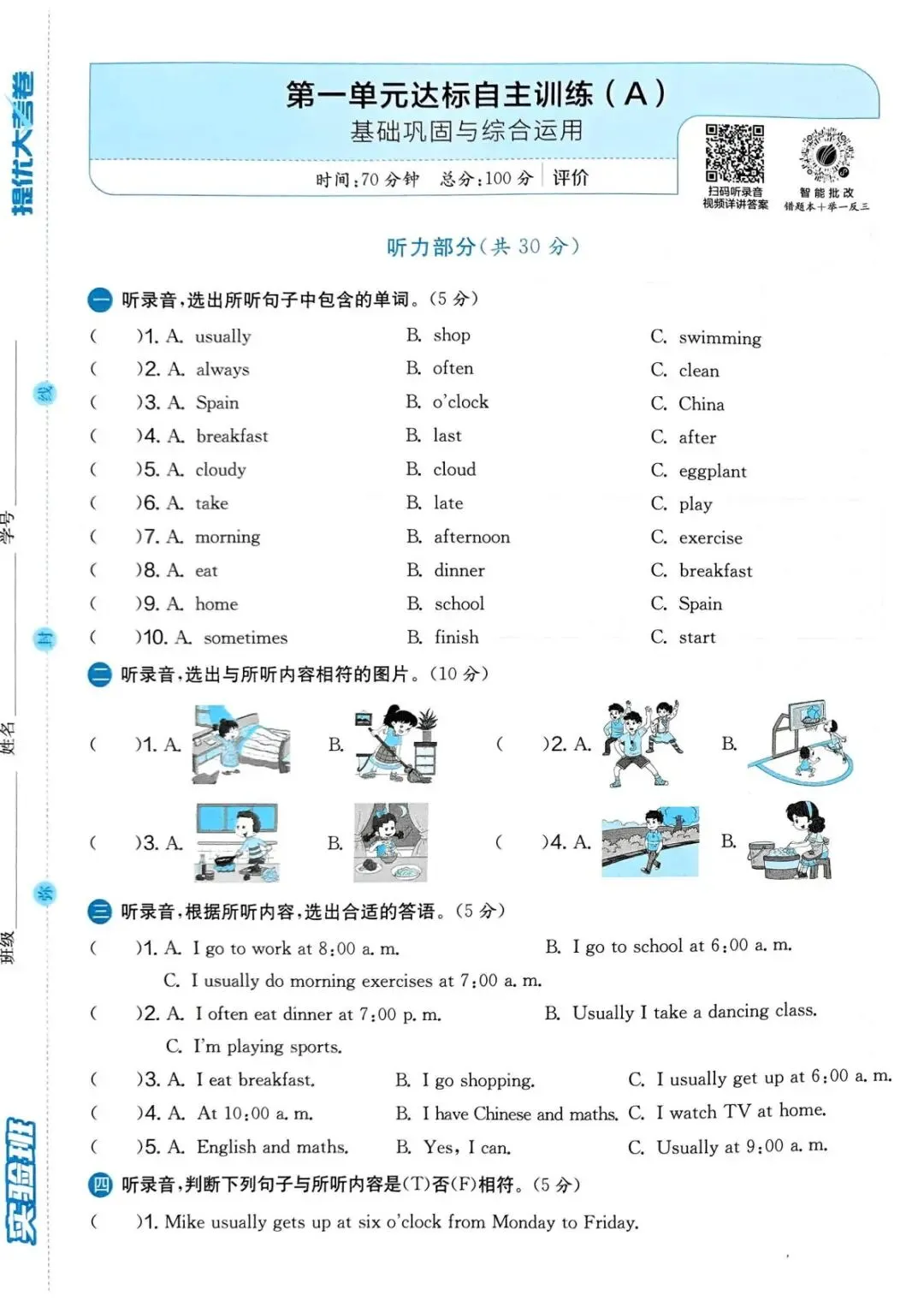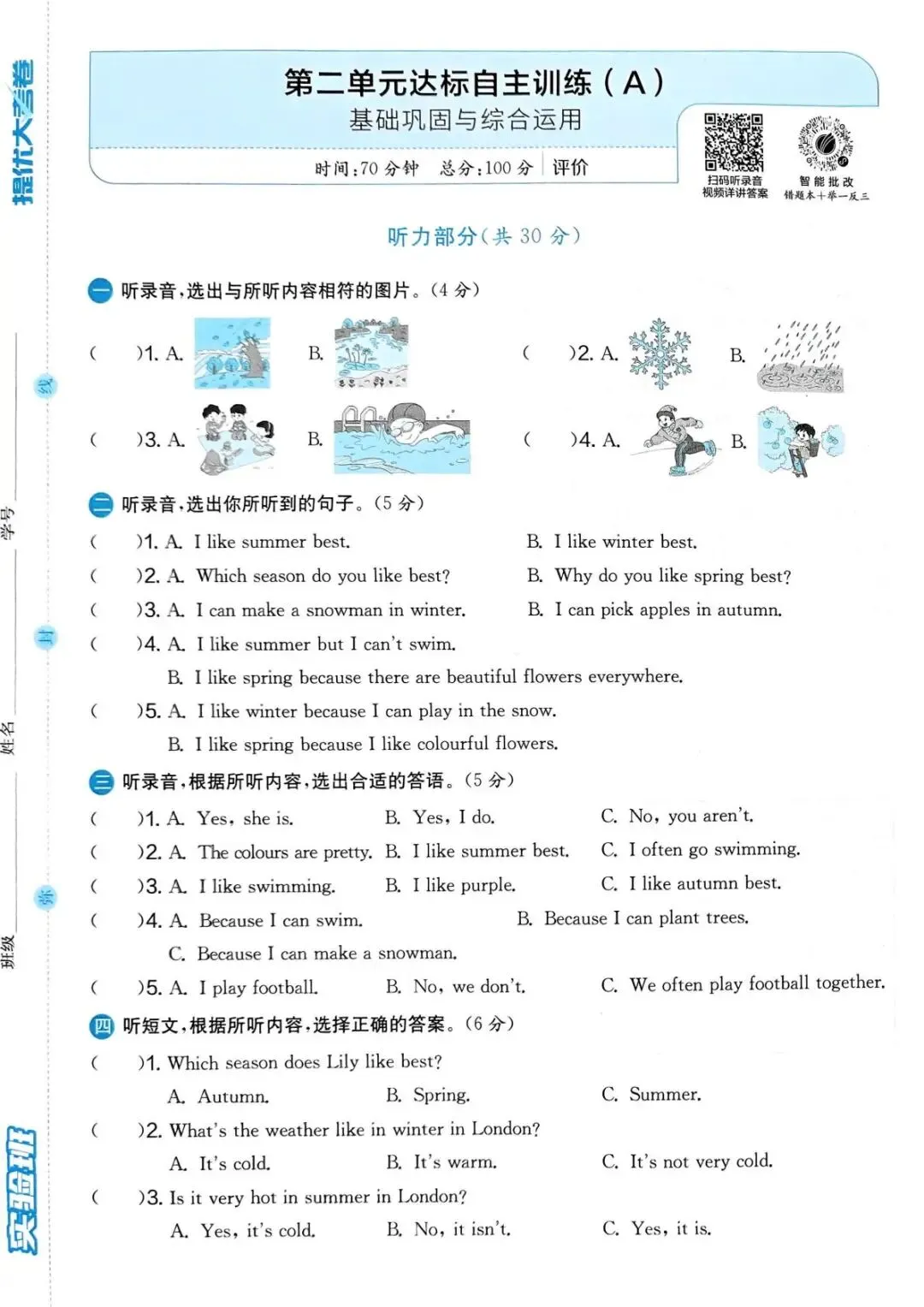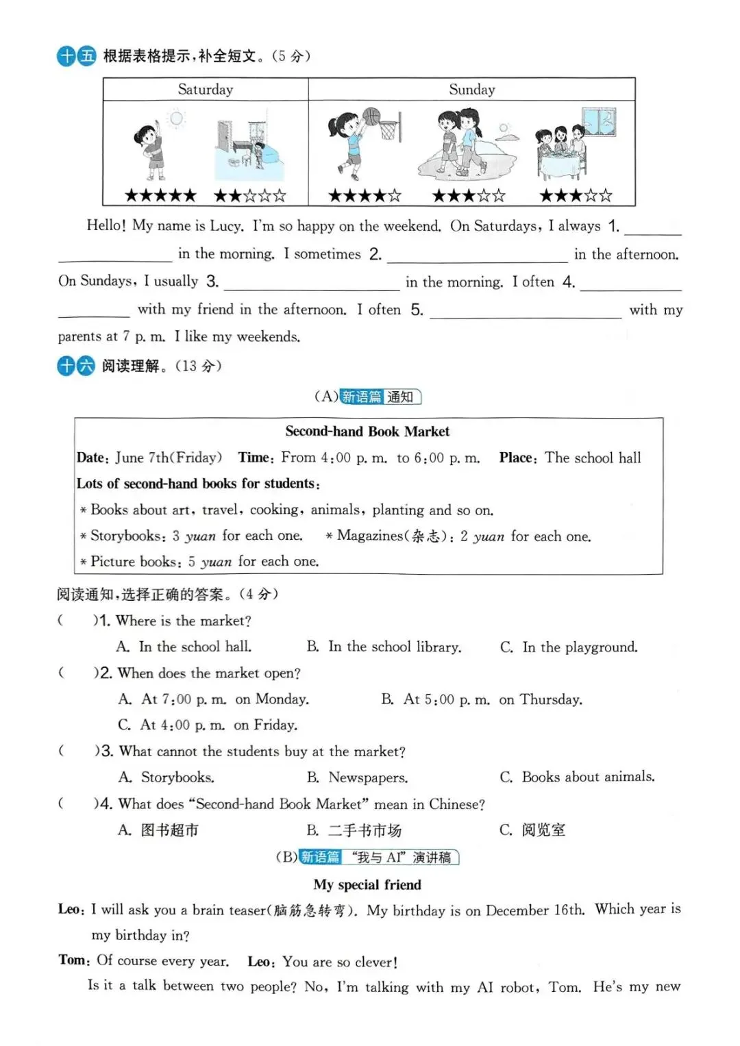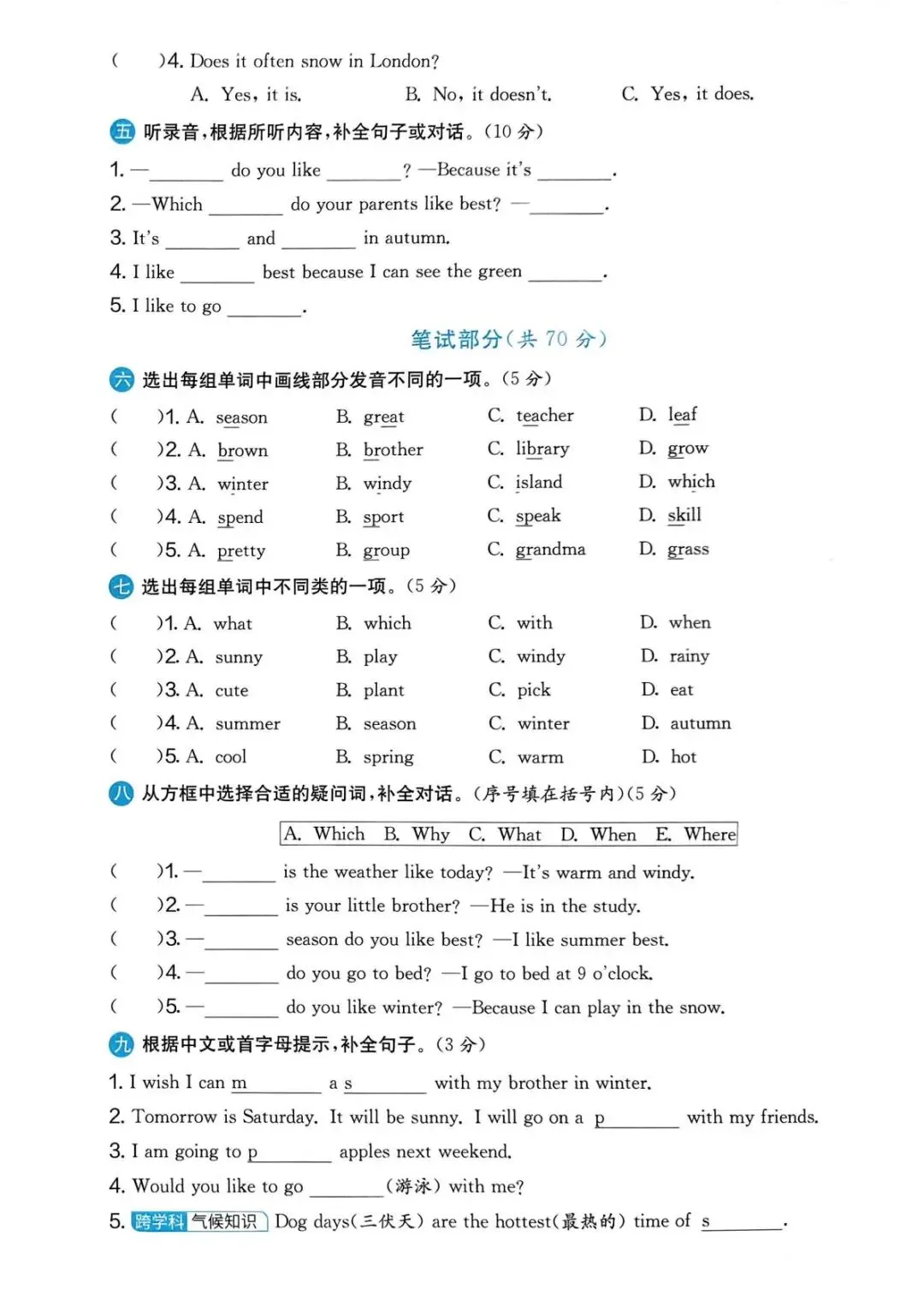 专项练习|26春 小学英语 人教PEP版《实验班提优大考卷》五年级下册 ,附链接可下载打印-拷贝