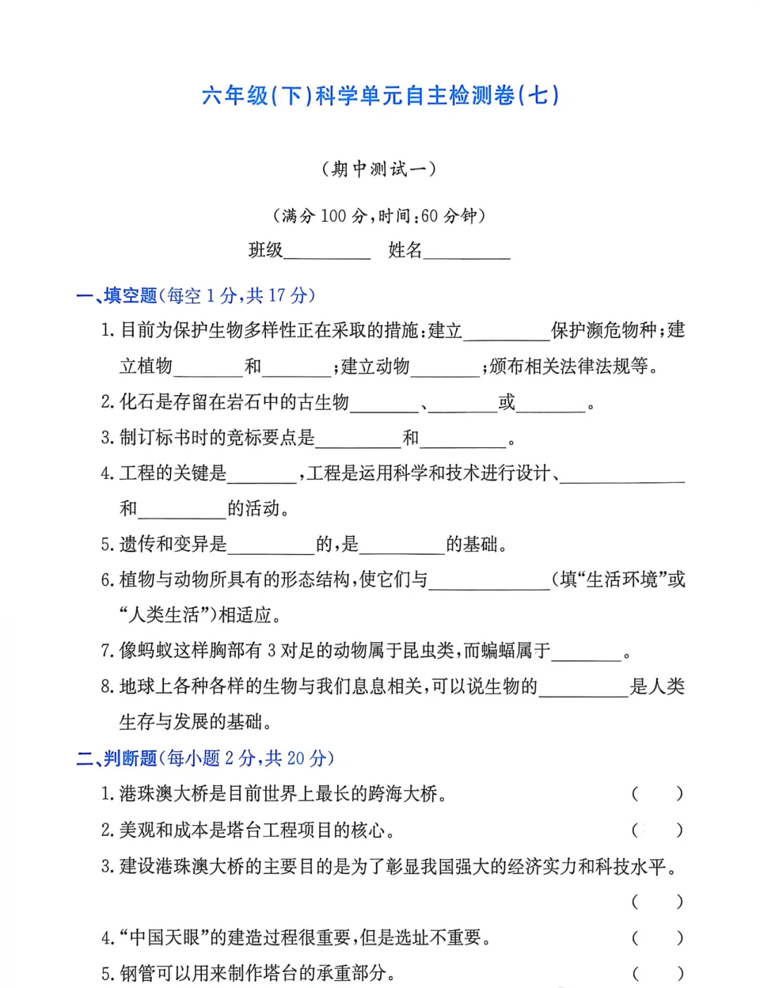 26春(教科版)六年级下册 科学《单元基础卷、培优卷、提升卷+期中卷+期末卷(共20套)》附答案 可打印下载