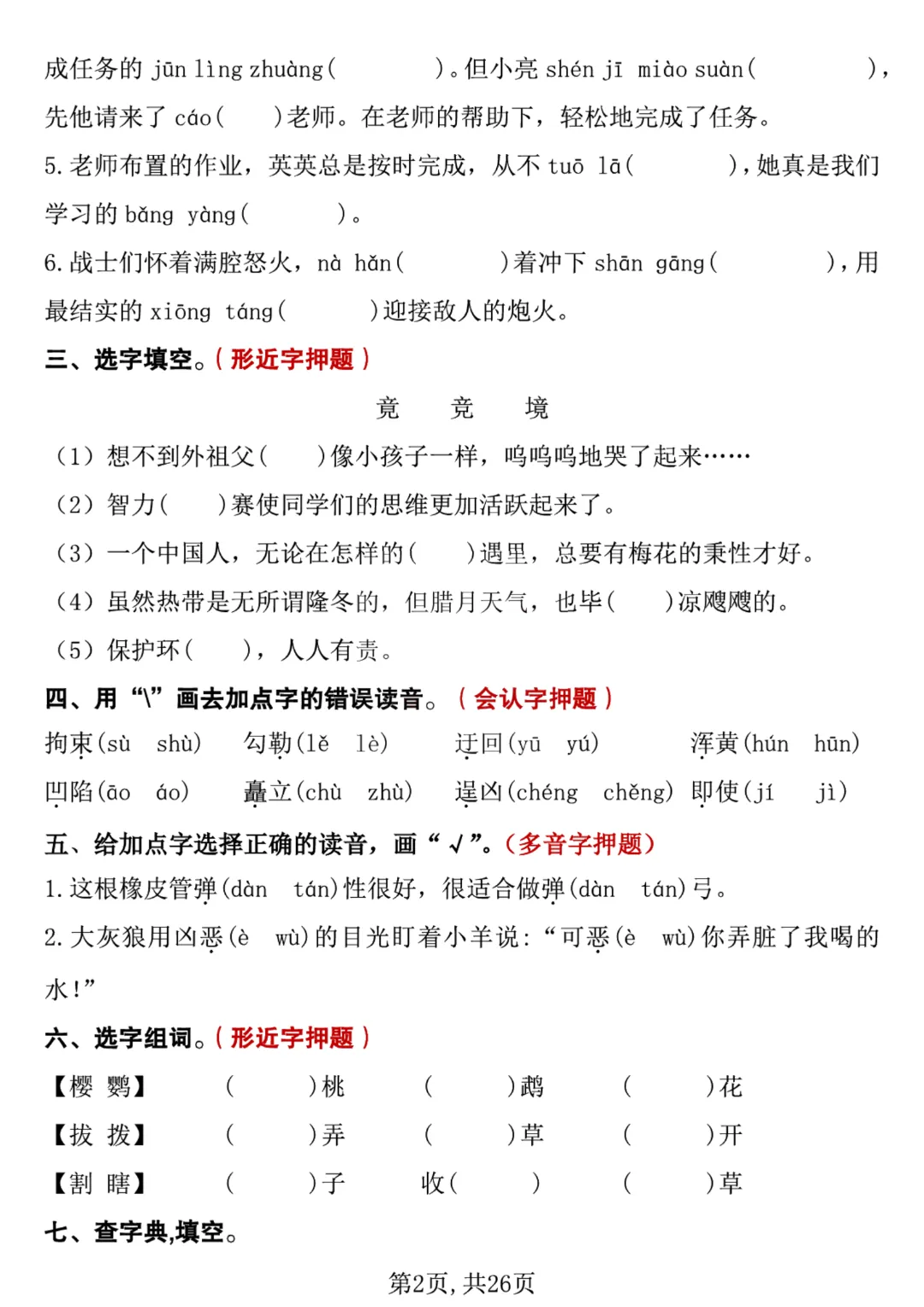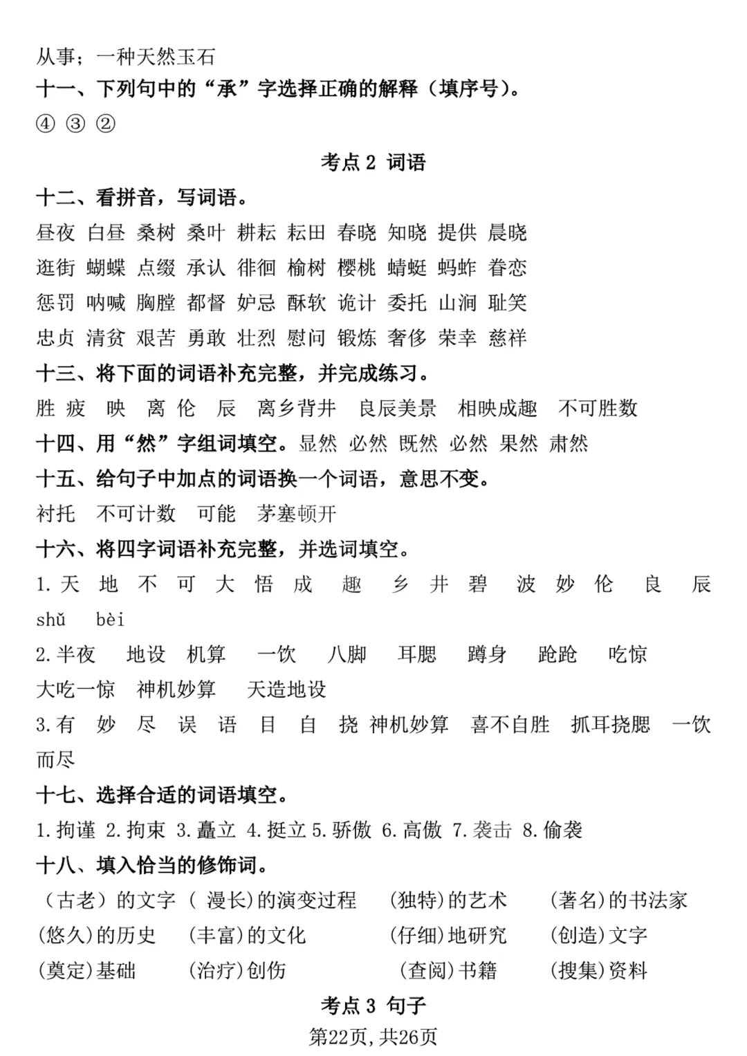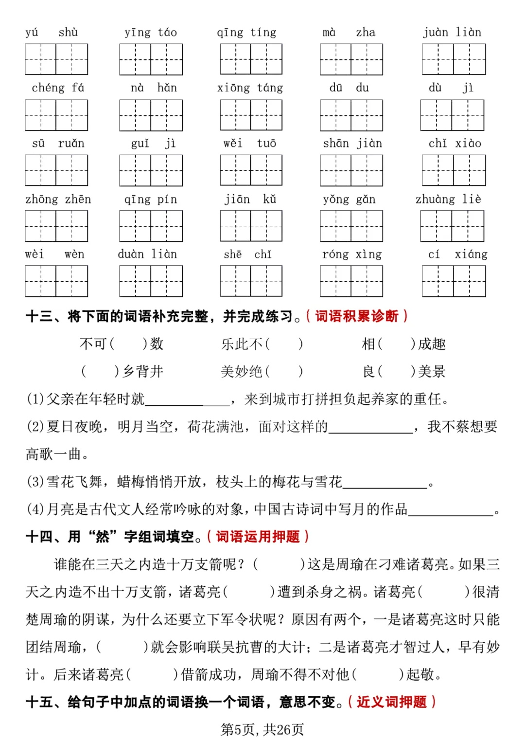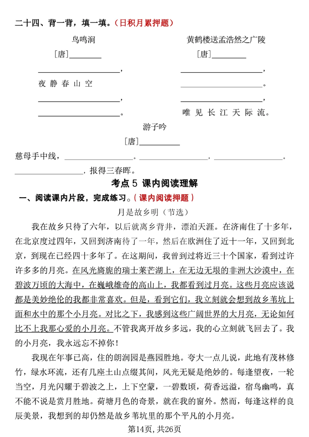 26年五年级下册语文《期中复习押题版》有答案,共26页,电子版可下载打印。