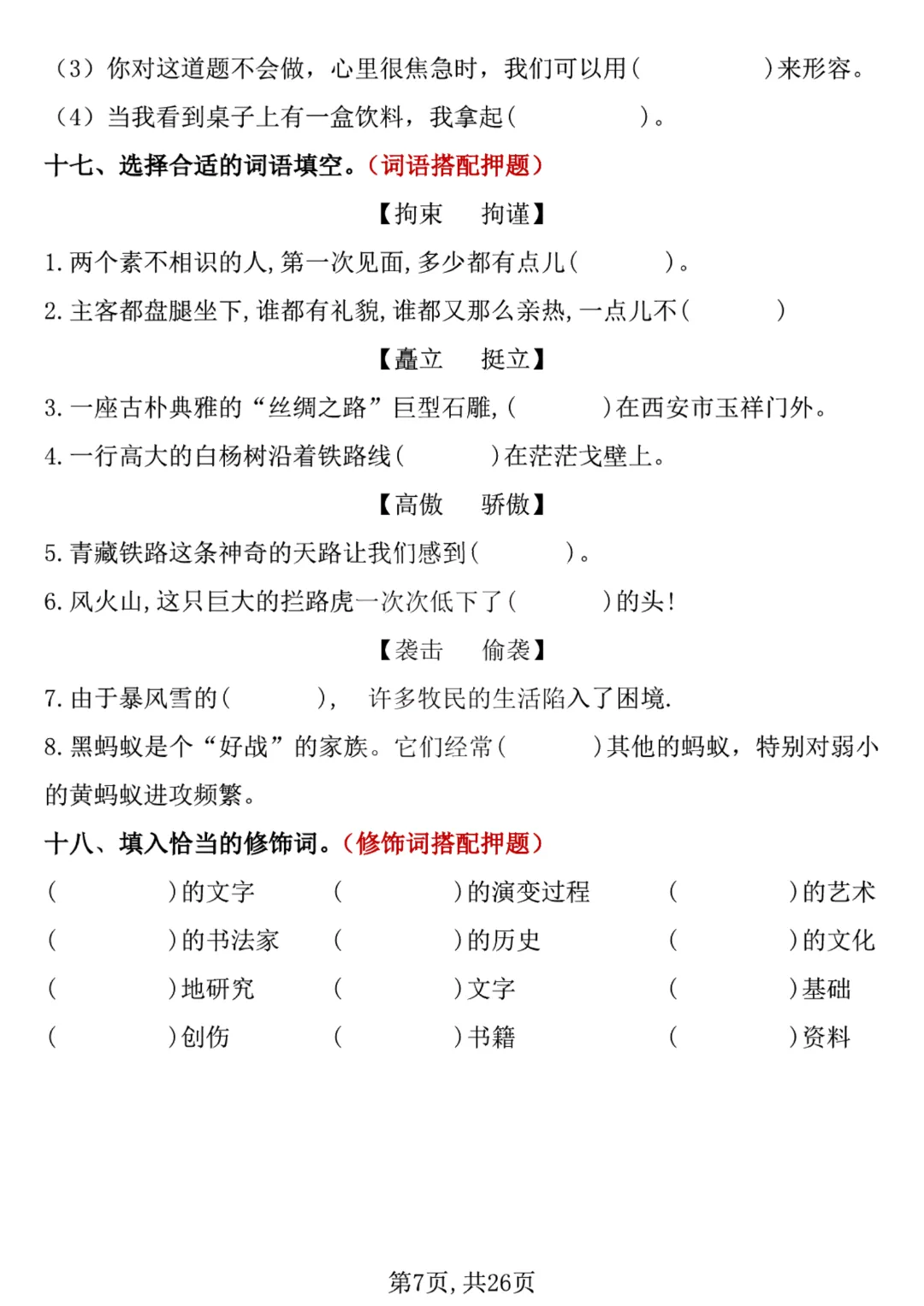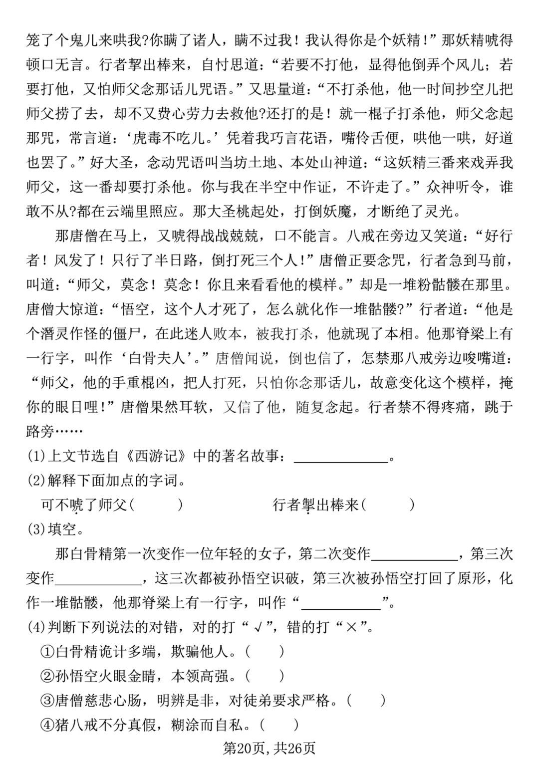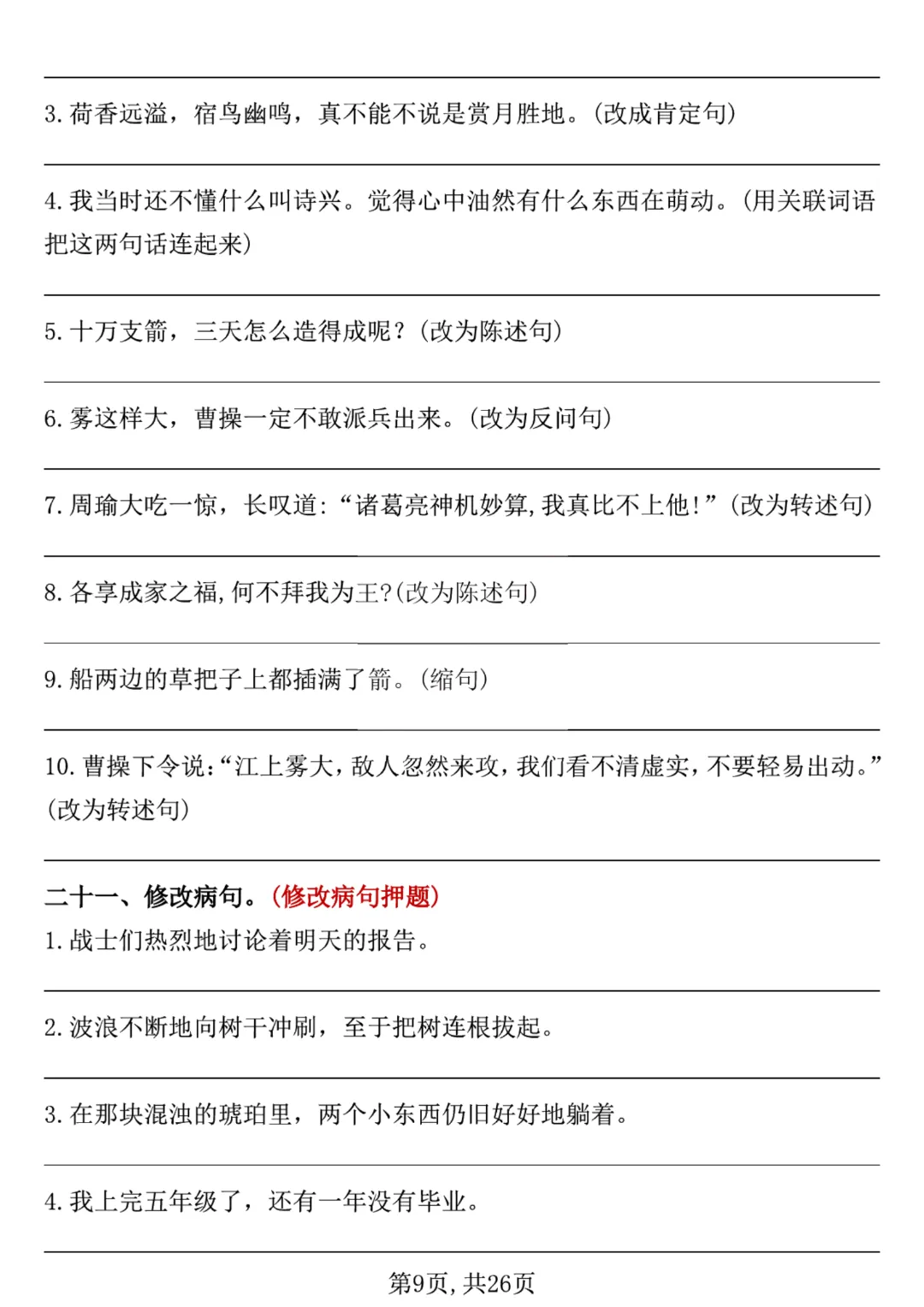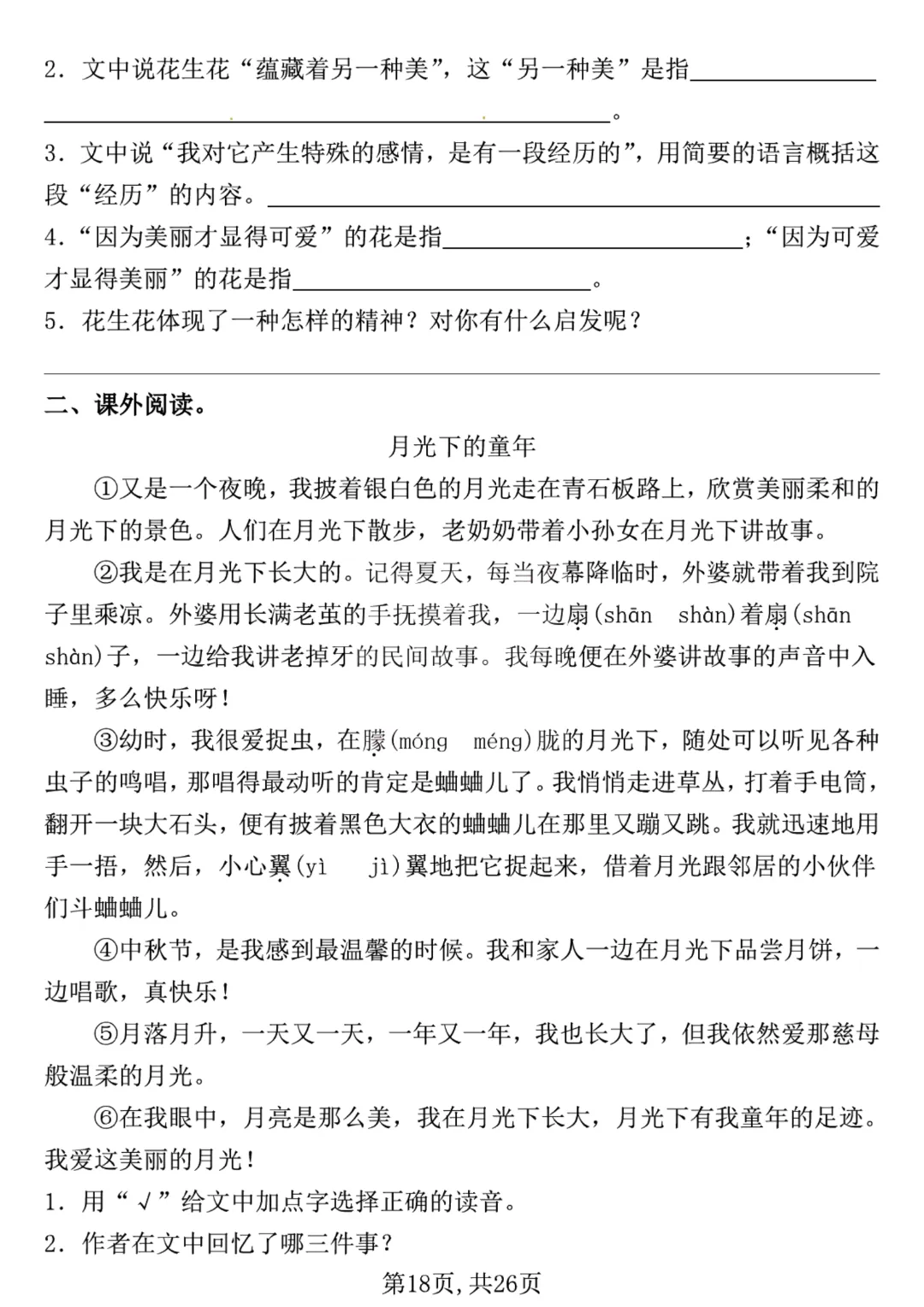26年五年级下册语文《期中复习押题版》有答案,共26页,电子版可下载打印。