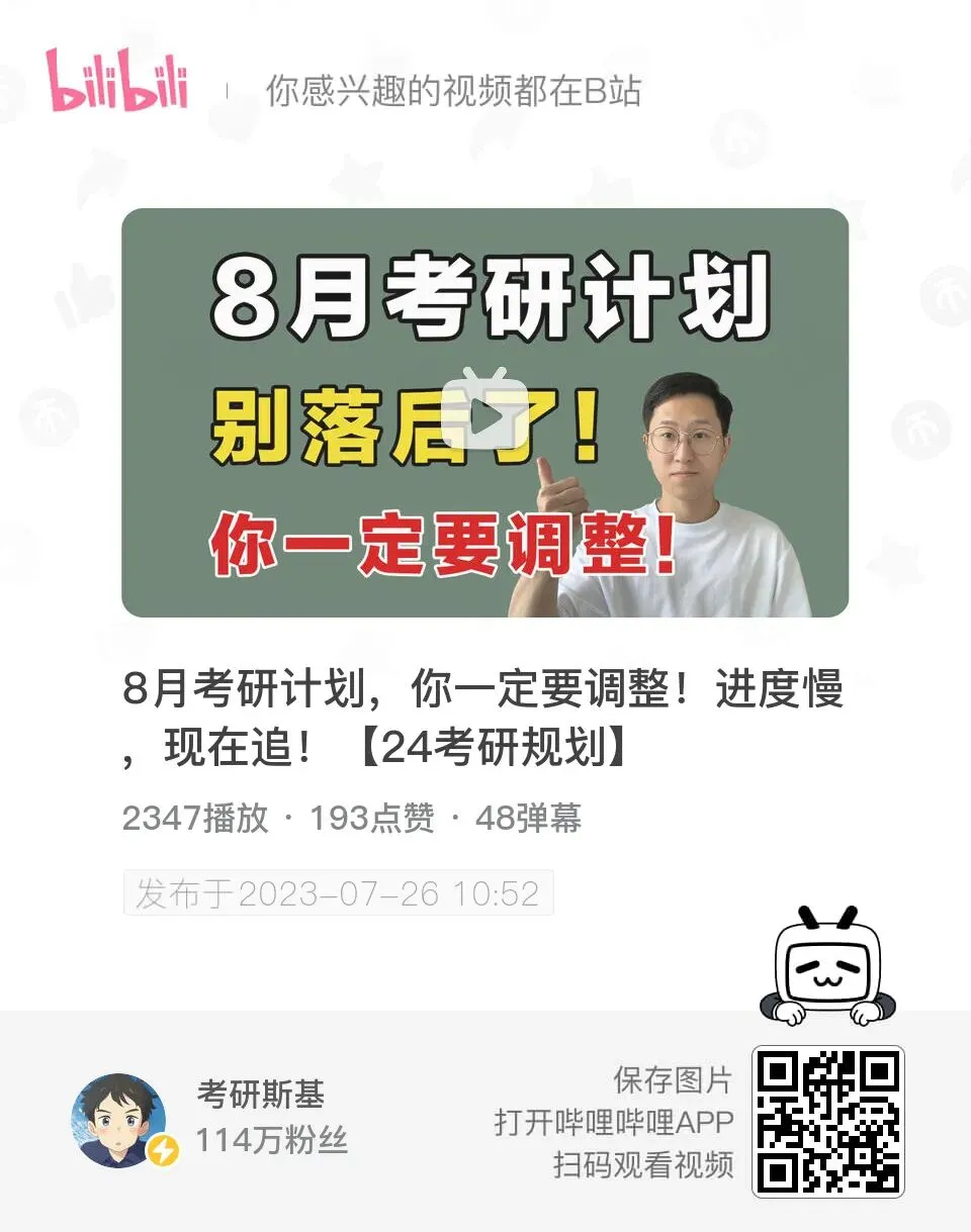 今天,学长接着上月的任务安排,继续来制定详细的8月复习规划,希望大家能够以此为参考,复盘当前的进度,合理做好之后的学习规划,稳住心态、坚持到底!