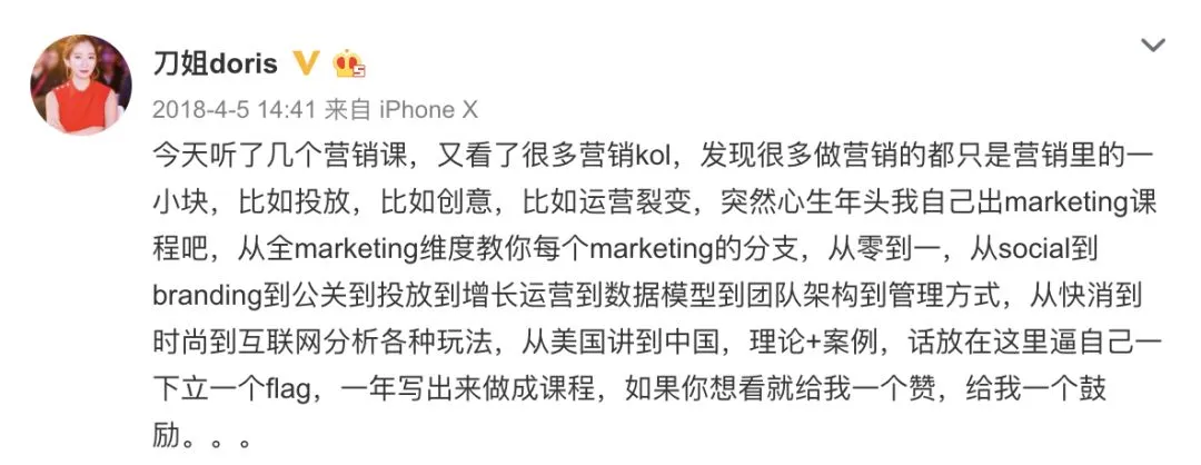 于是去年4月我曾在微博立下一个flag,1年内做出一个营销课程。