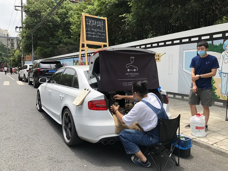 开车下班后备箱直接变摊位