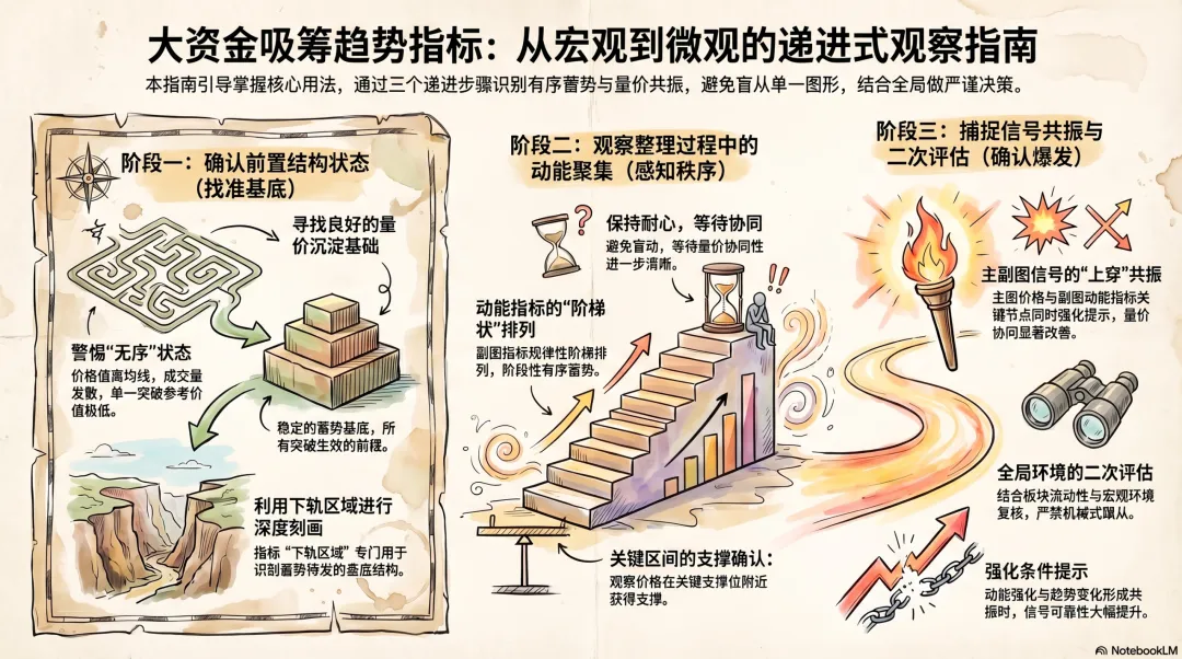 实际运用该模型时,建议采取由宏观整理结构到微观动能共振的递进式观察法则。
