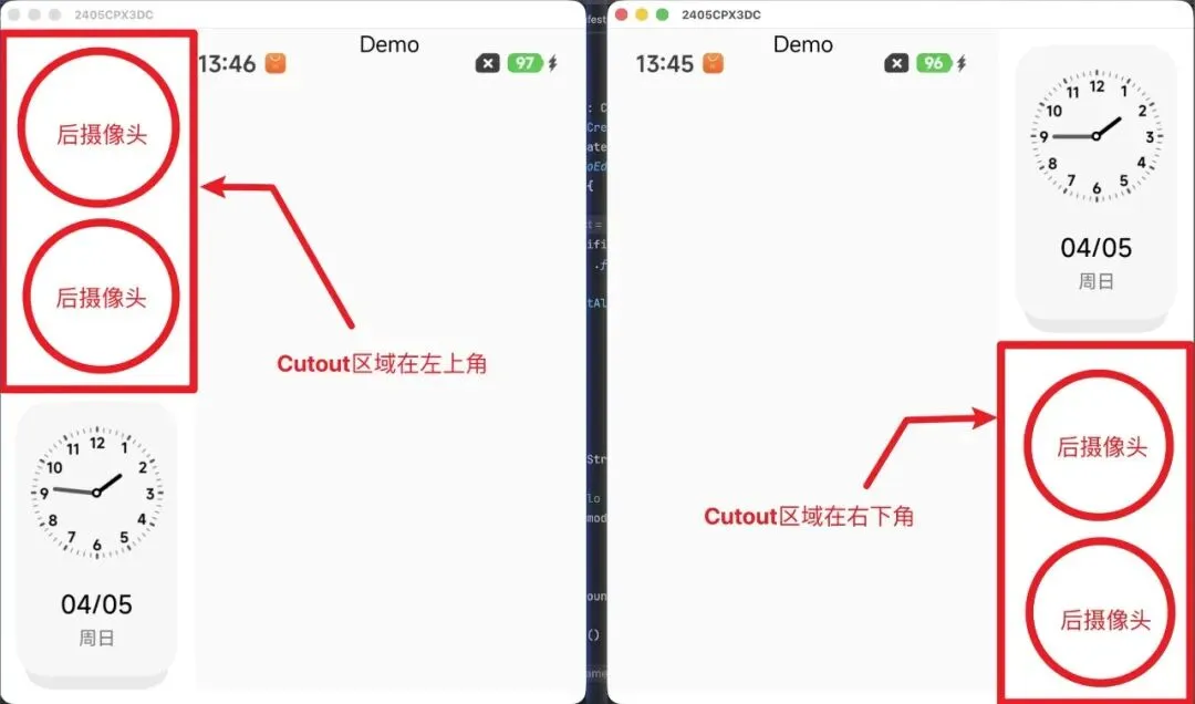 但是在 Mix Flip 的外屏中,因为有摄像头的存在,我们可以读取到 Cutout,我们只需要判断 Cutout 在左上角还是右下角就能够识别旋转状态。