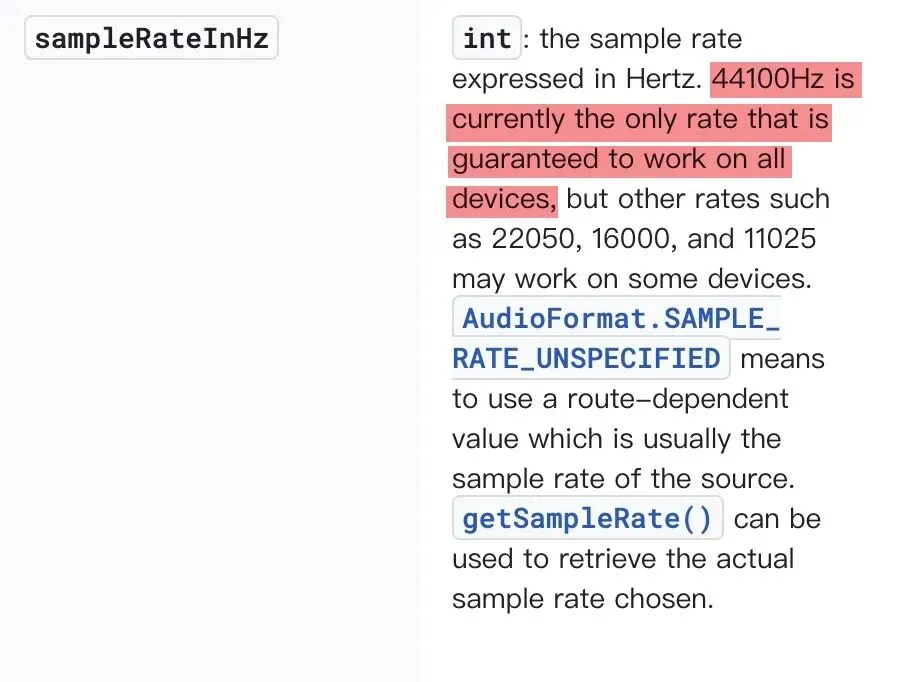 查阅 Android 文档,我们发现即使文档中指出采样率并不能随便指定,需要硬件支持,但实测 Mix Flip 中直接传 16K(16000) 是可以的。