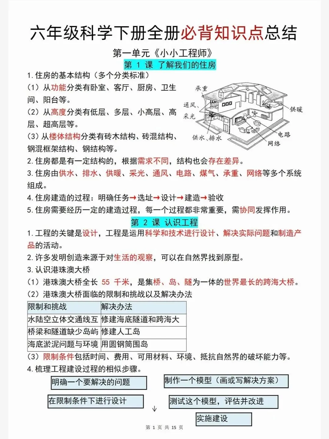 【六下科学】26春教科版六年级下册科学全册知识点(电子版可打印)