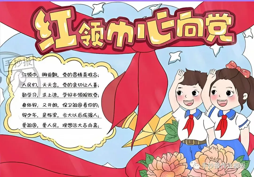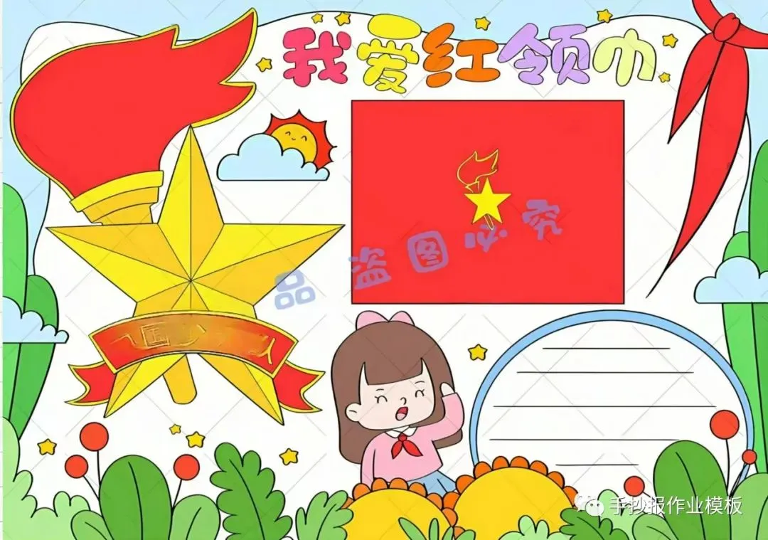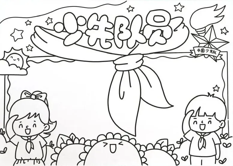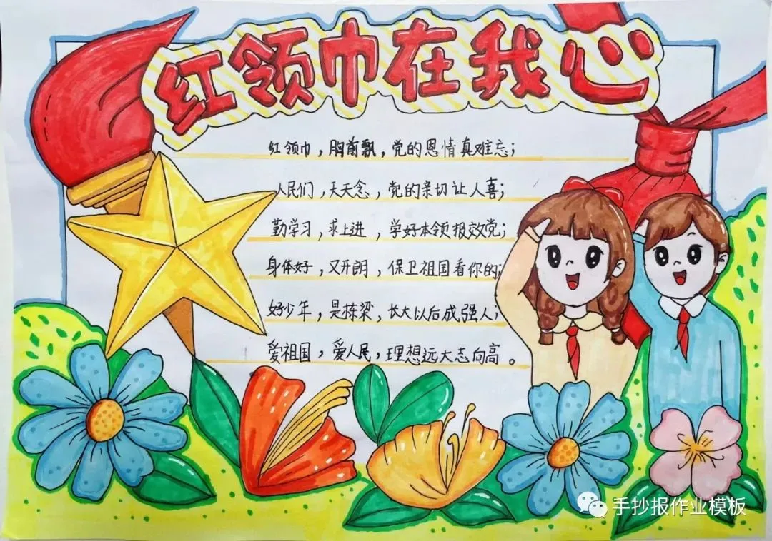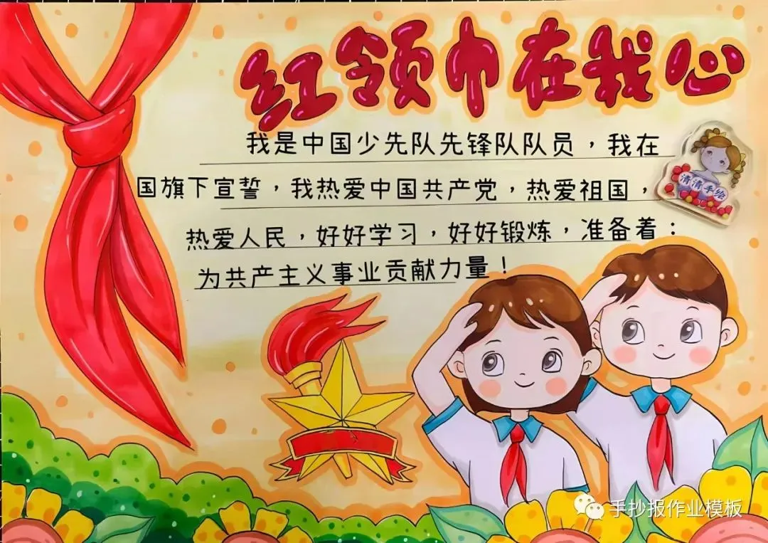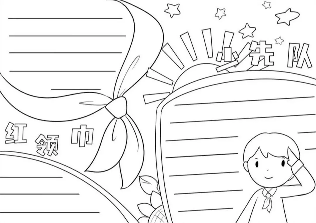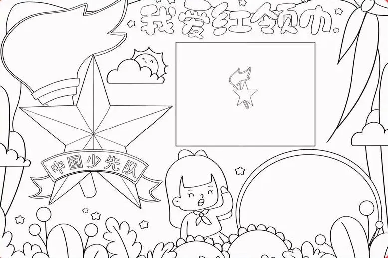 红领巾在我心,红领巾手抄报,高清线稿可打印!