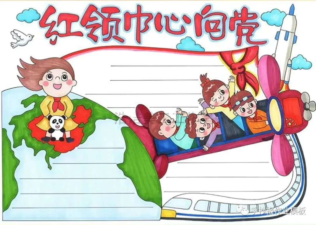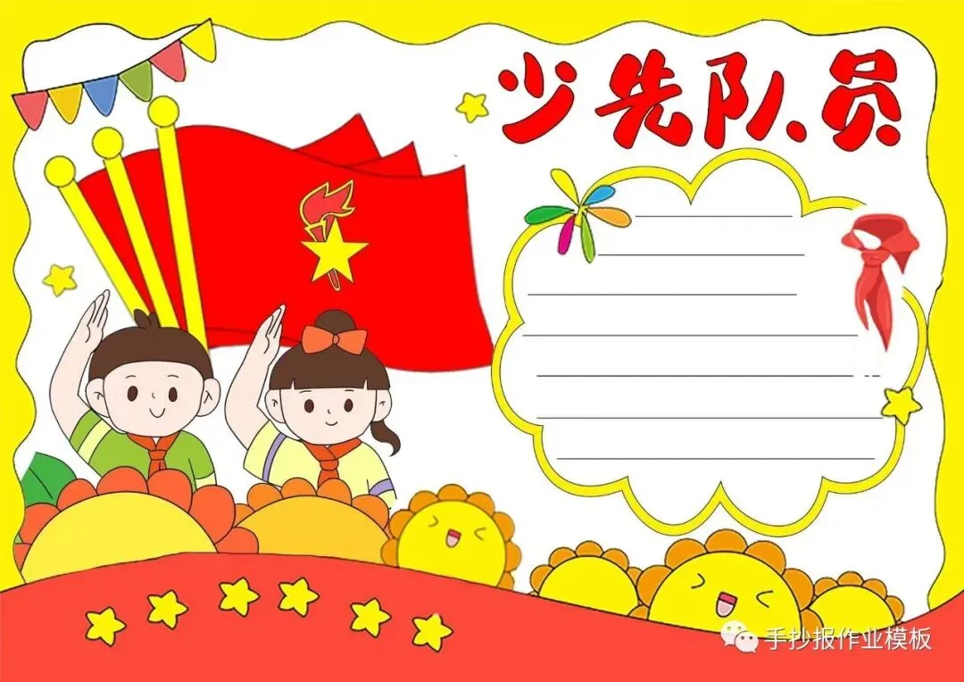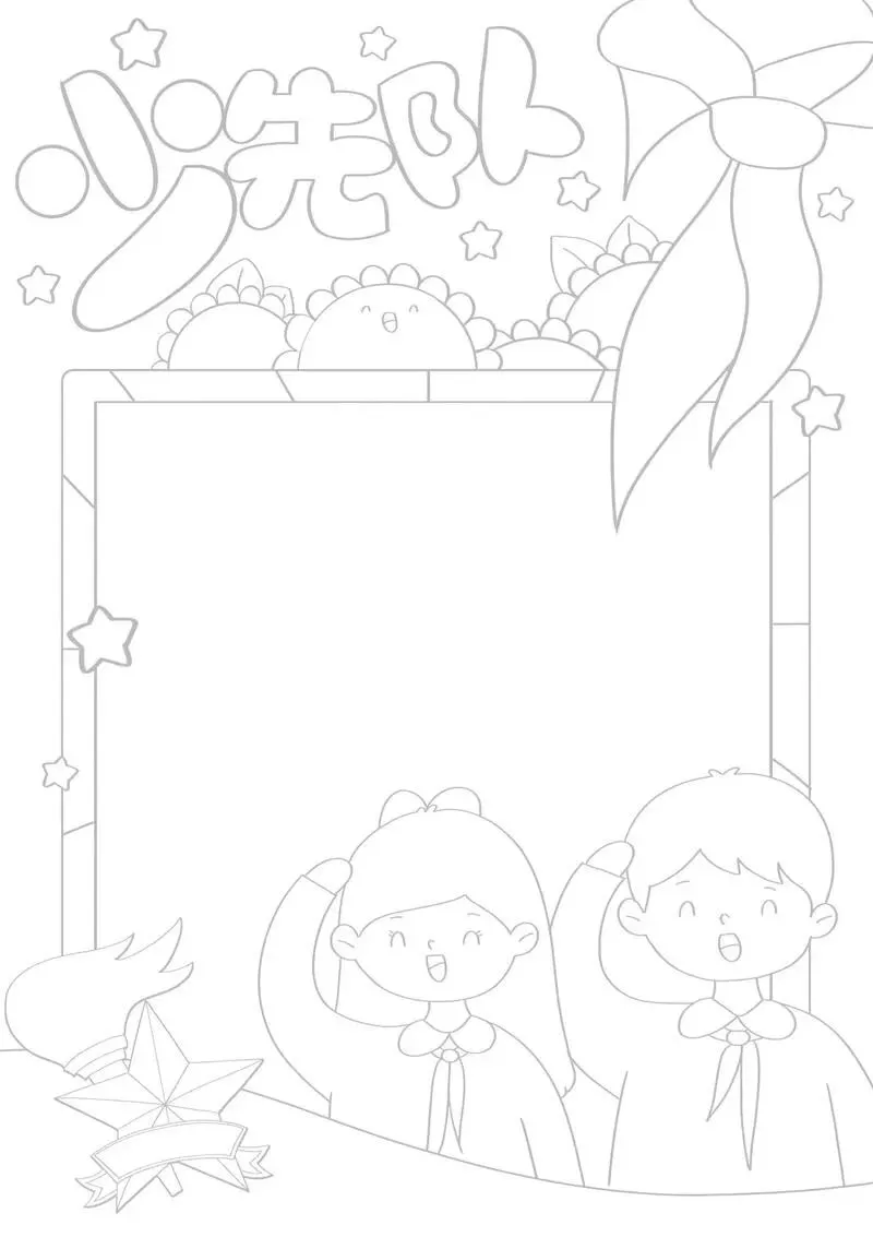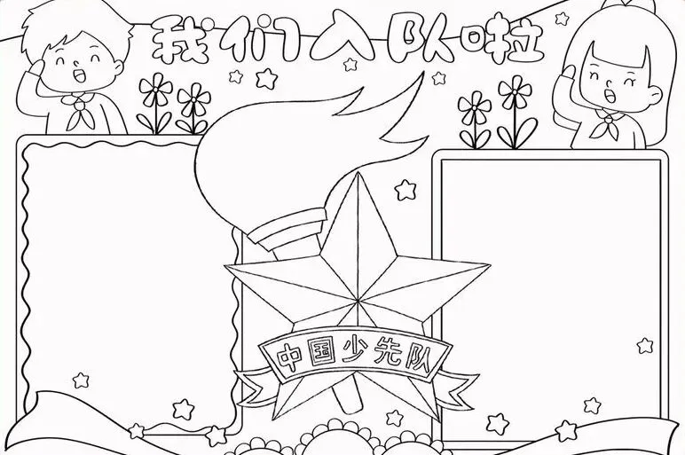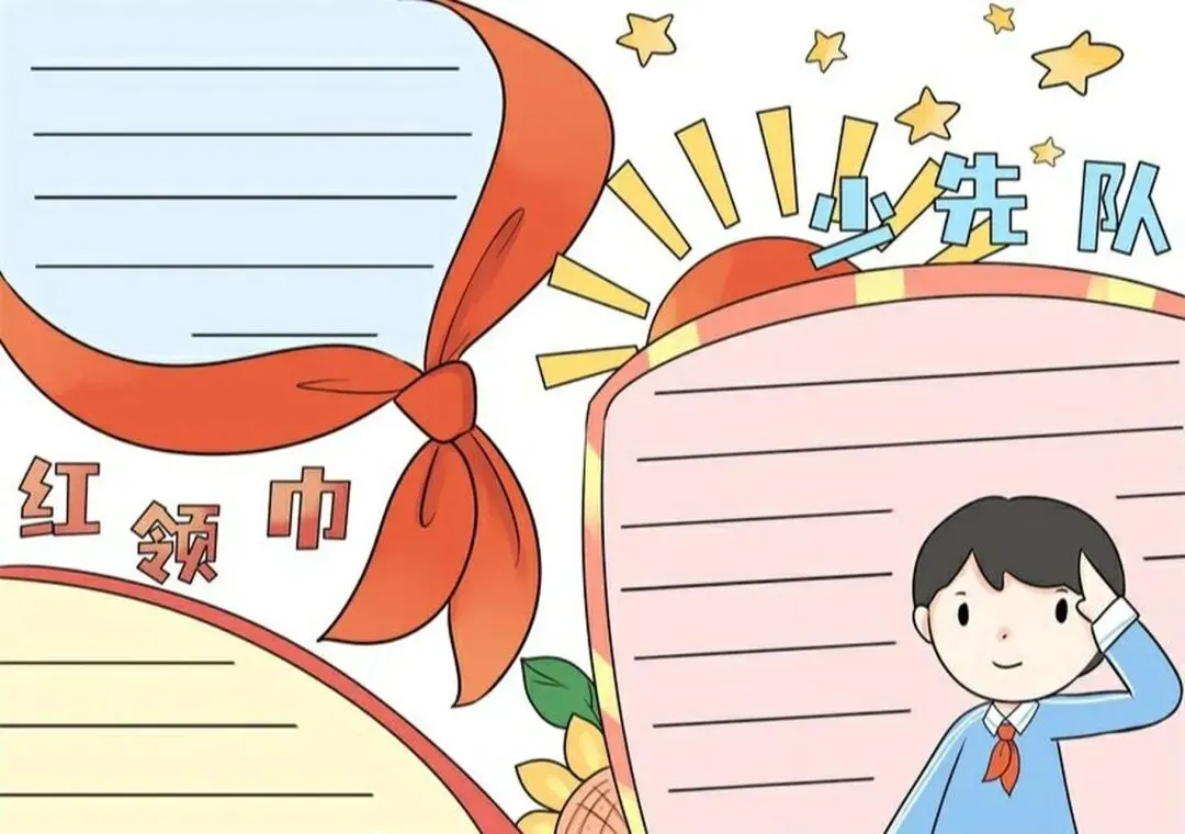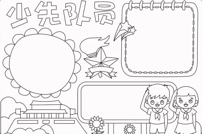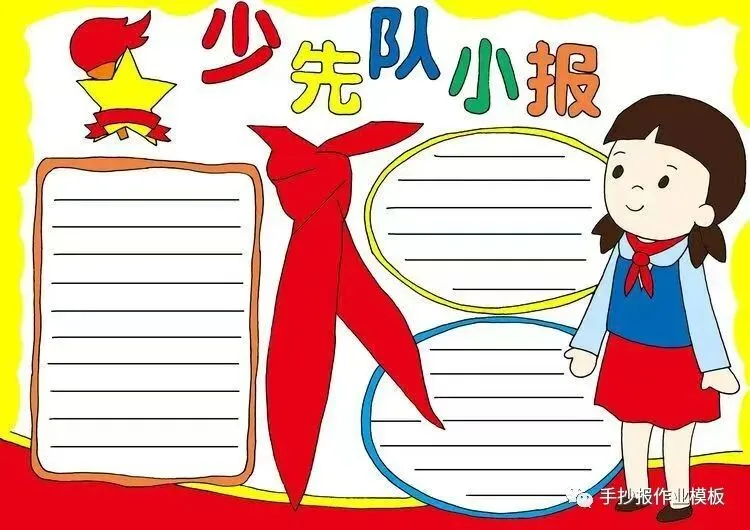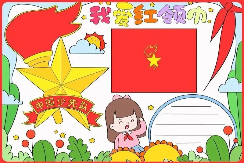 红领巾在我心,红领巾手抄报,高清线稿可打印!