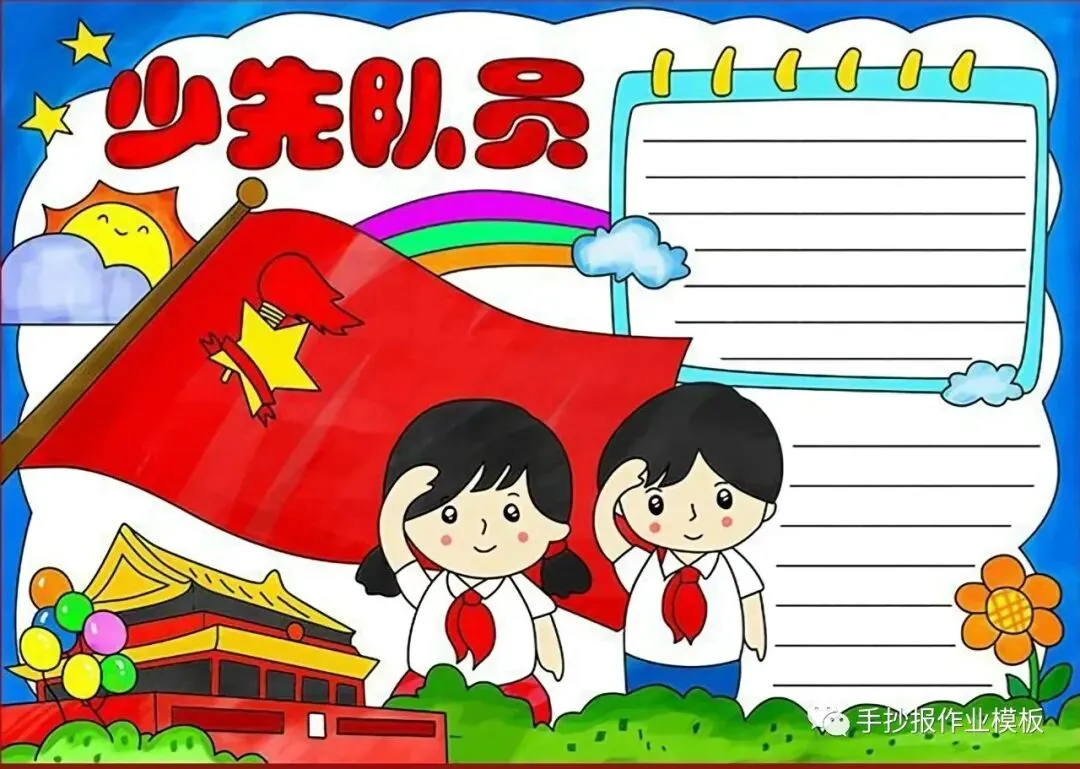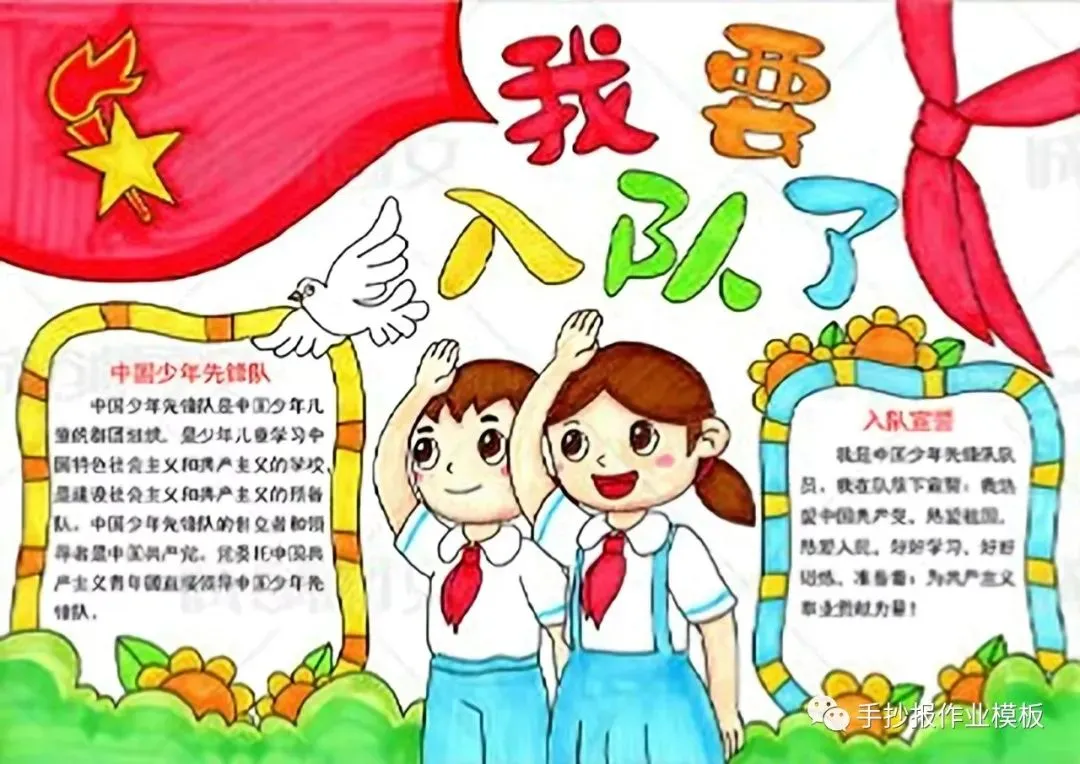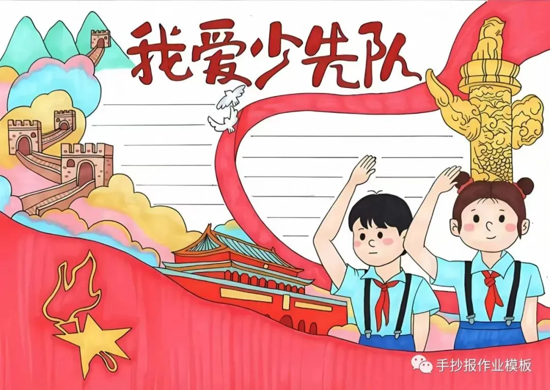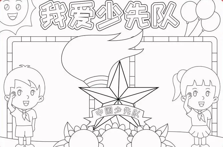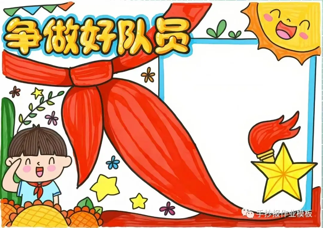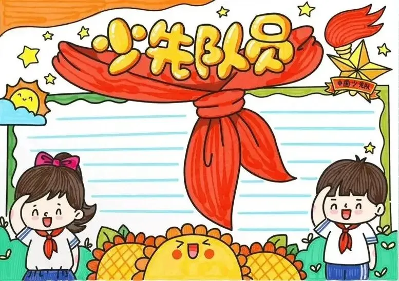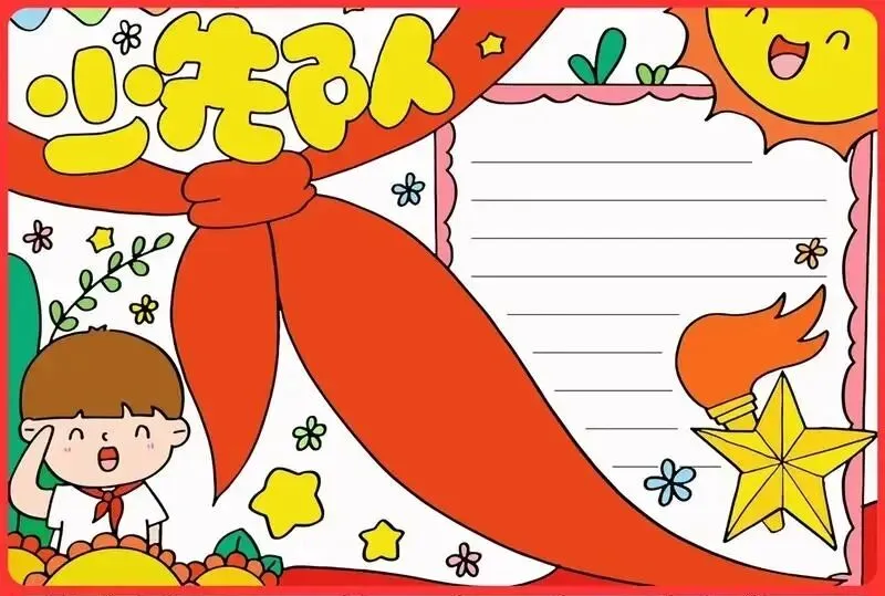 红领巾在我心,红领巾手抄报,高清线稿可打印!