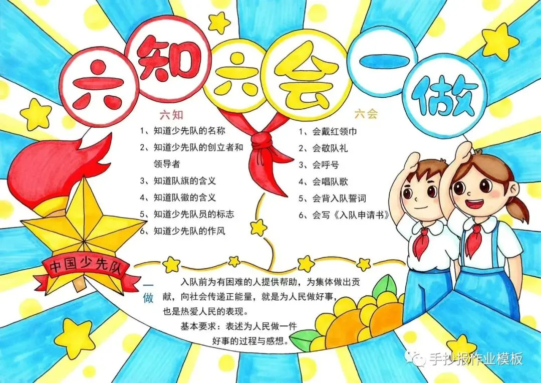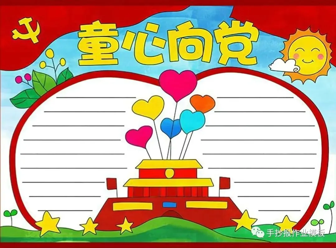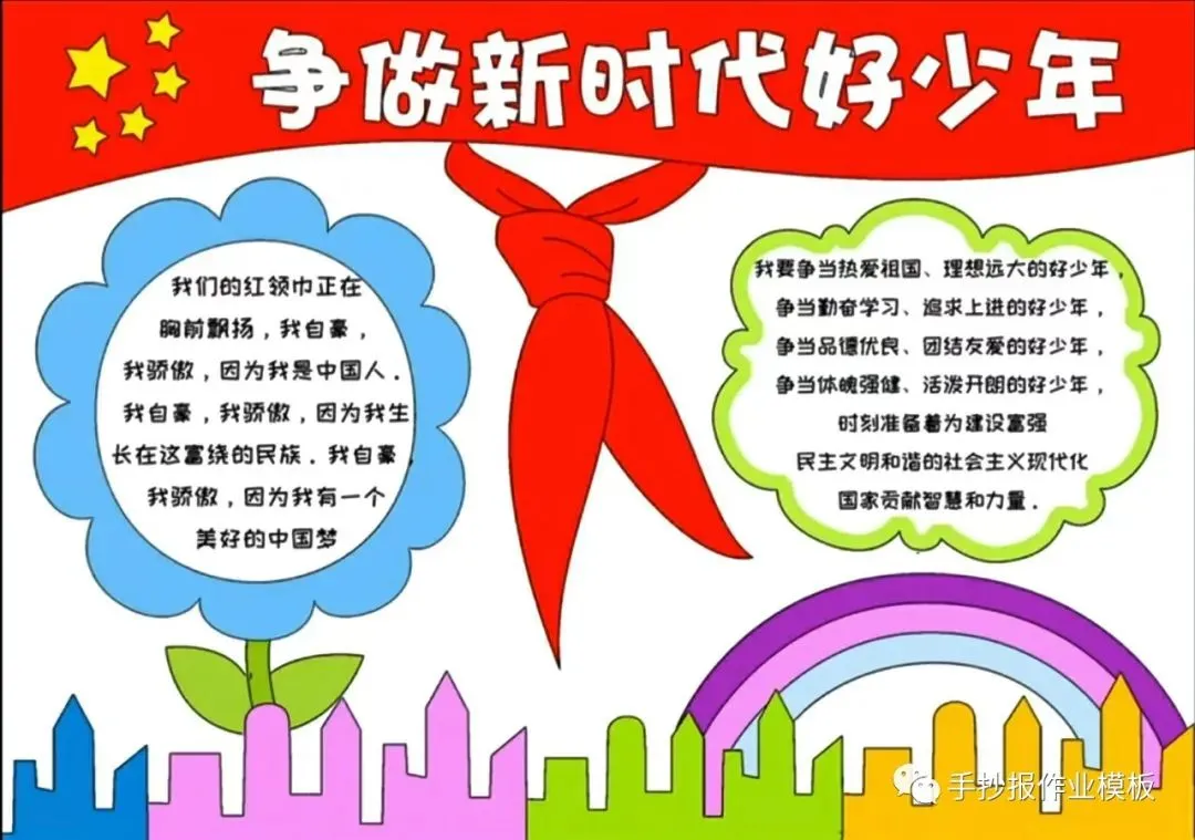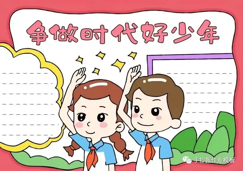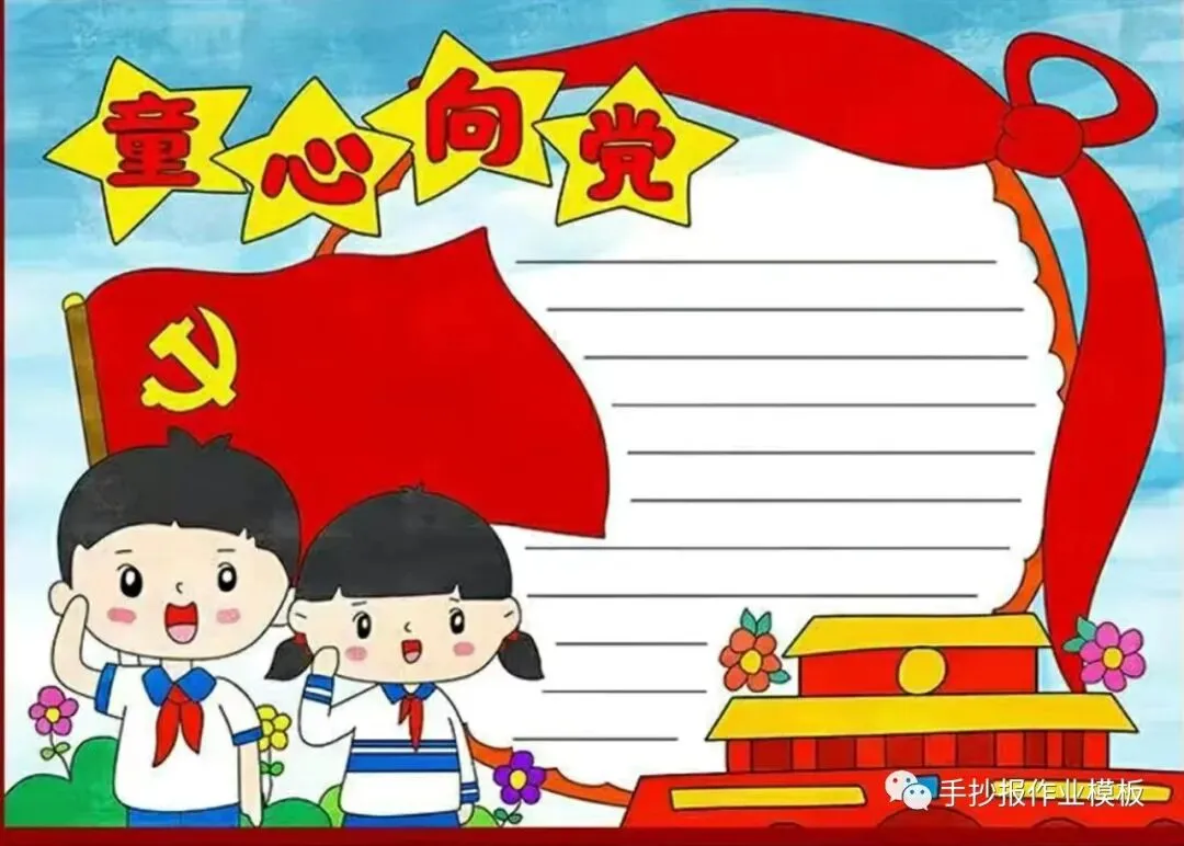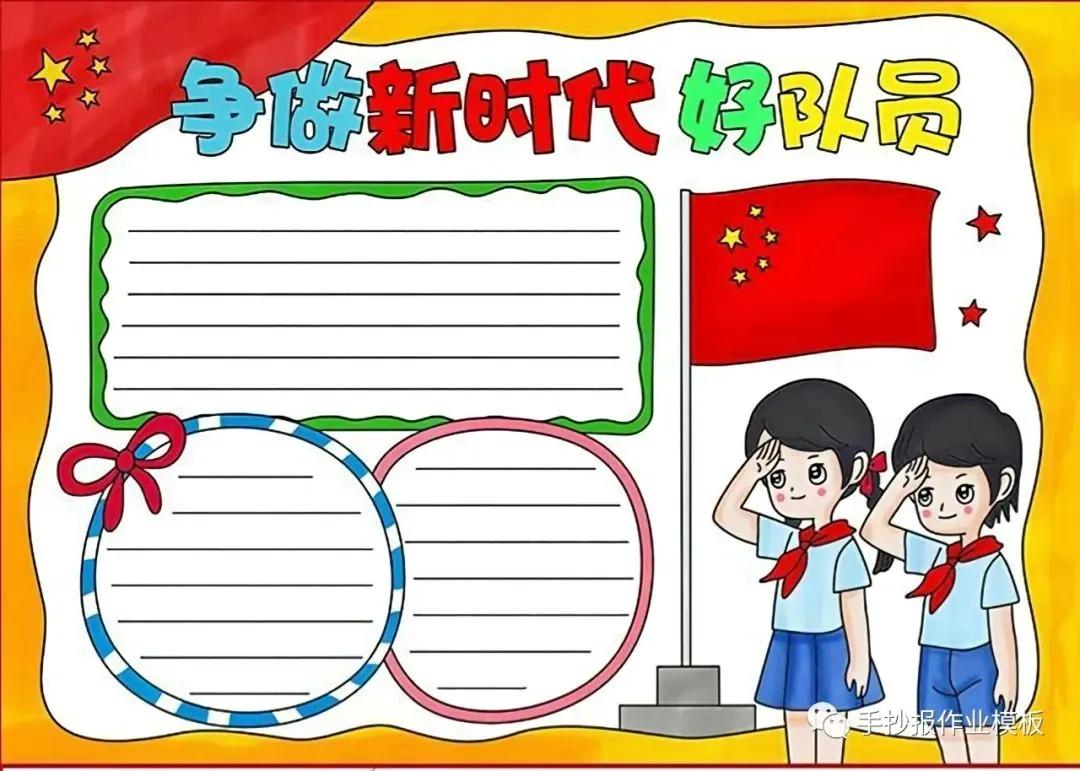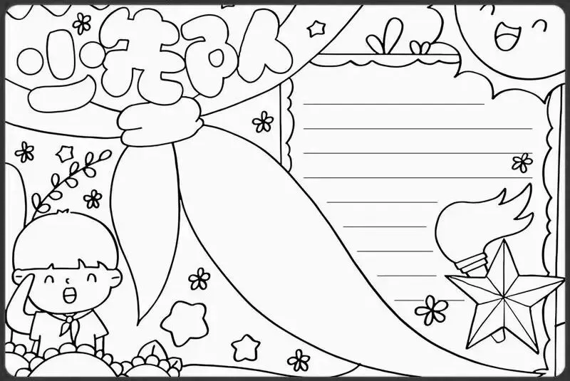 红领巾在我心,红领巾手抄报,高清线稿可打印!