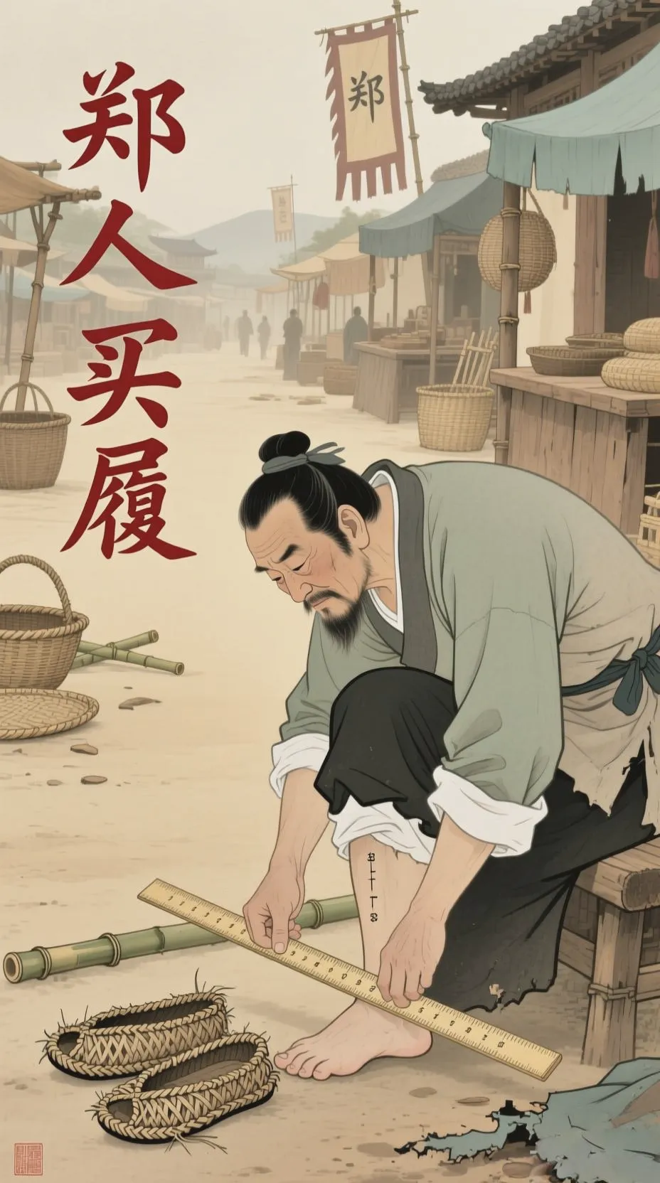 等他再次返回集市时,集市已经散了,最终他没有买到鞋子。
