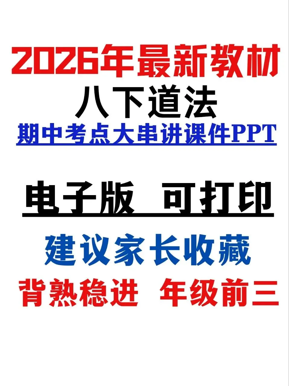 帮我好好利用老师整理好2026年最新教材八下道法期中考点大串讲课件PPT,预习冲刺好帮手,考试直接拿满分,背熟考试稳拿年级第一,考试轻松拿满分!