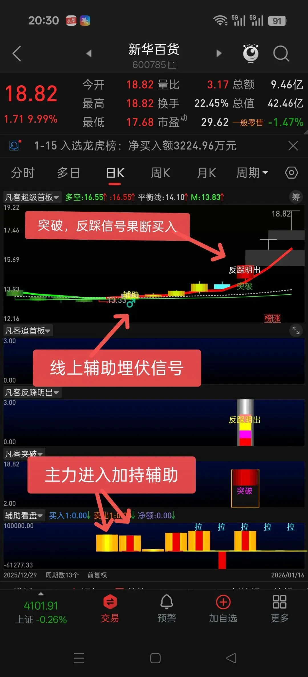 DRAWTEXT((K111,REF(0,K111-1),REF(0,K111-1),10,0),LOW,’平台’),COLORRED;
