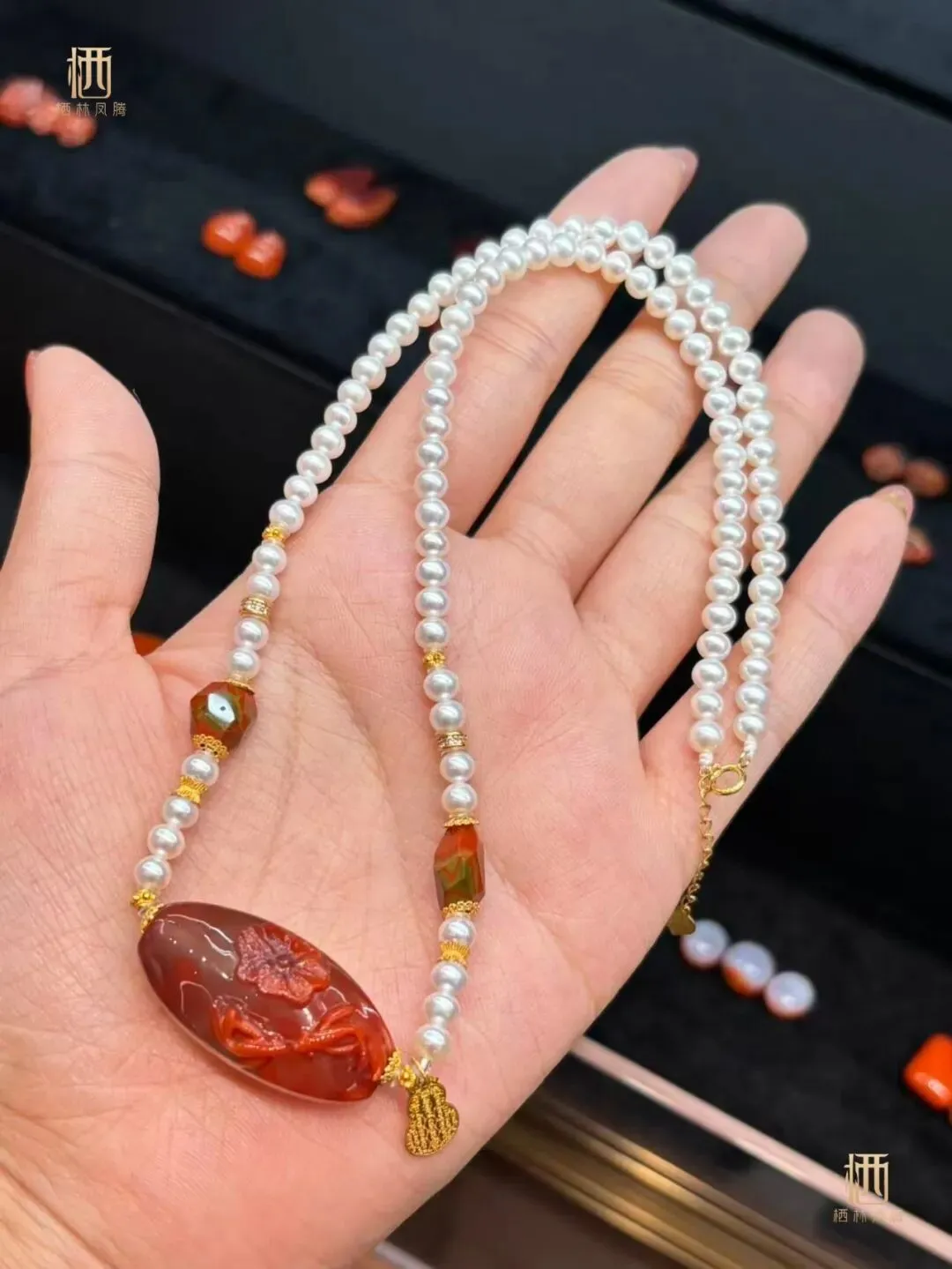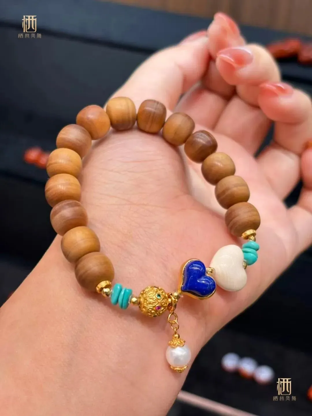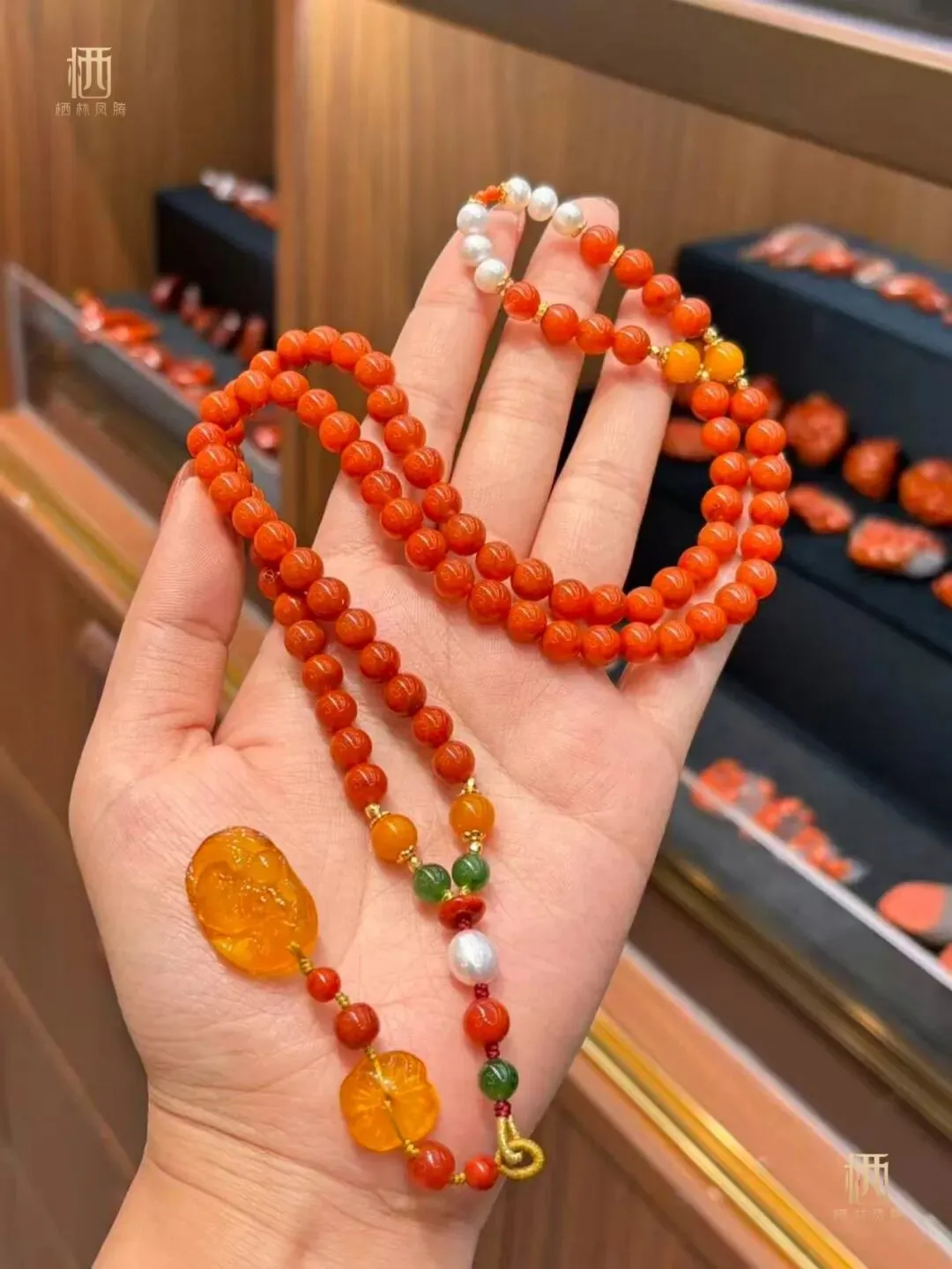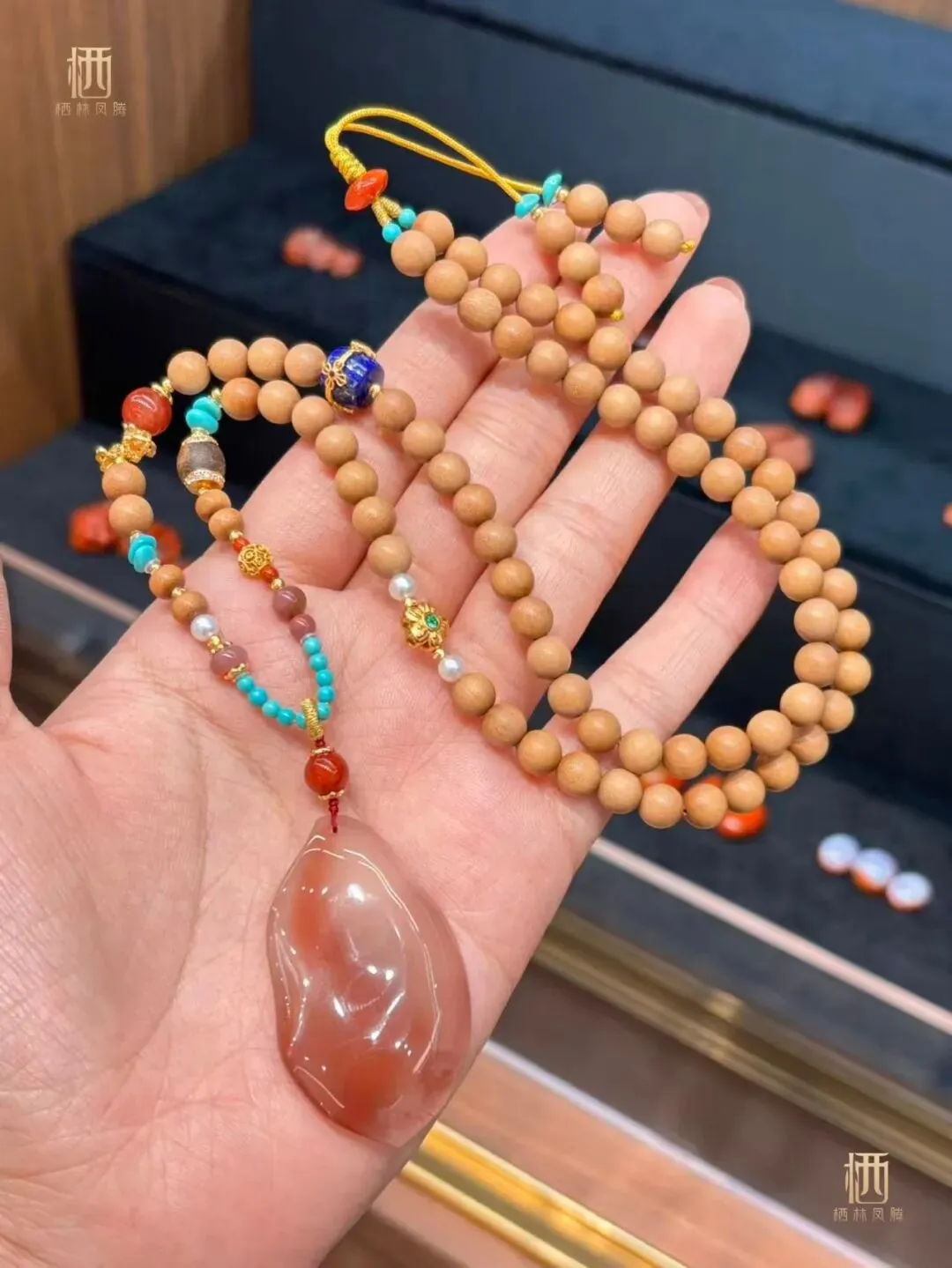 尺寸:南红吊坠45*26*7 老山檀6mm+