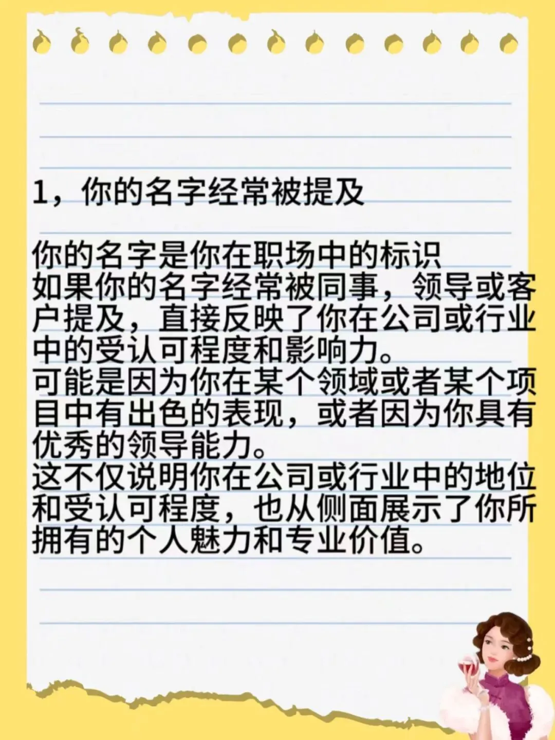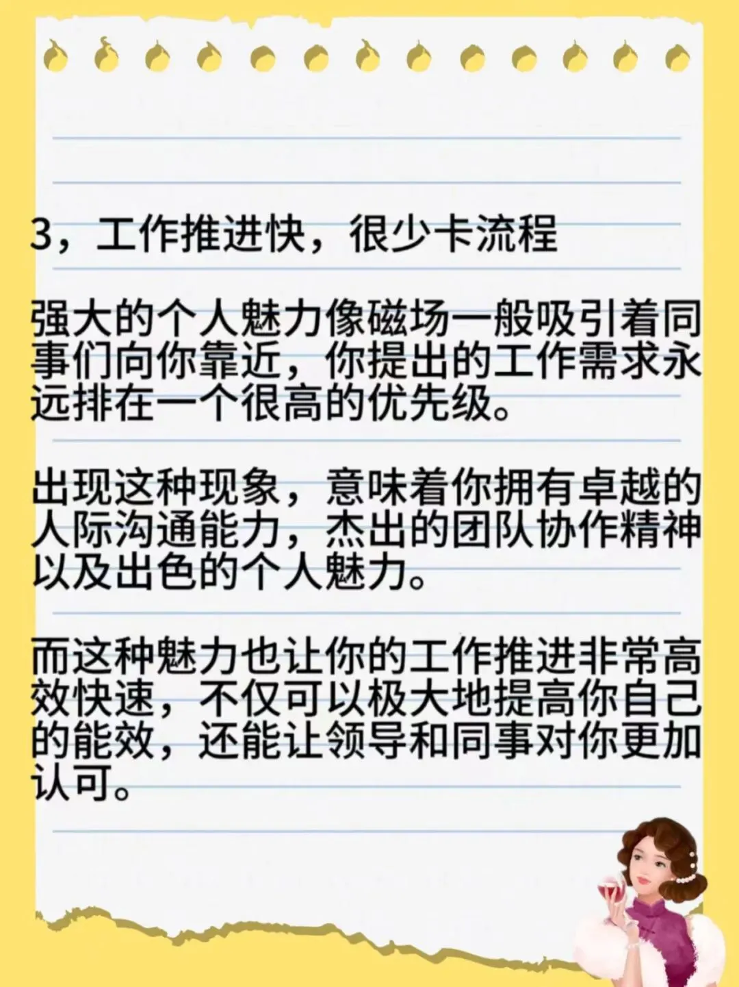 如果你已经中了3条以上,恭喜你,早就已经是单位里吃得开的实力派,继续走下去,只会越来越顺;如果你暂时只中了一两条也没关系,受欢迎从来不是天生的,把自己的工作做好,对人多一份真诚,你的认可度自然会慢慢涨起来。