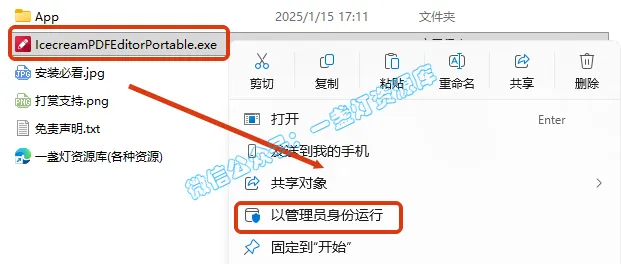 2.双击打开解压的文件夹,右键【IcecreamPDFEditorPortable】运行程序