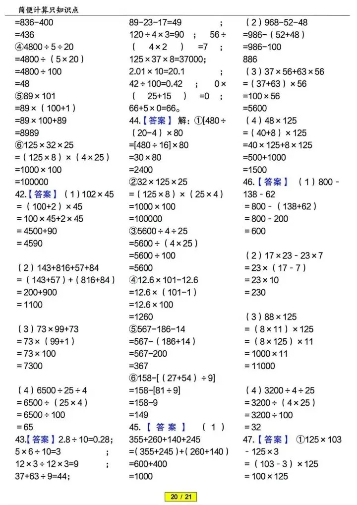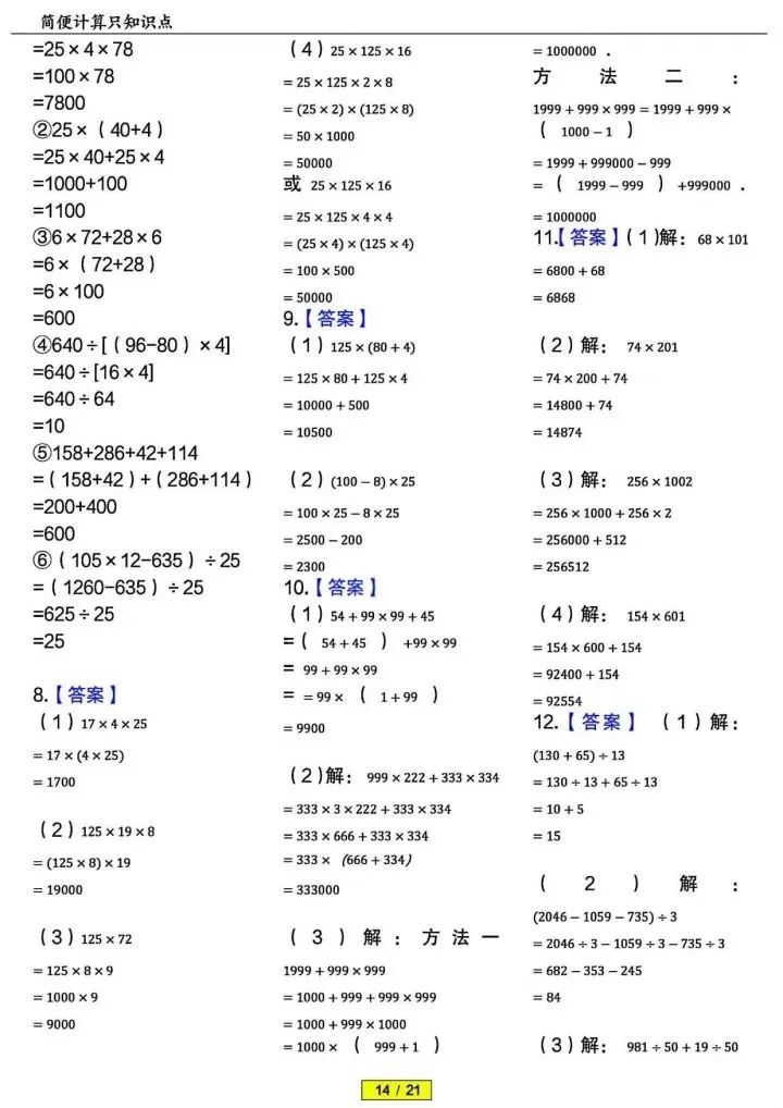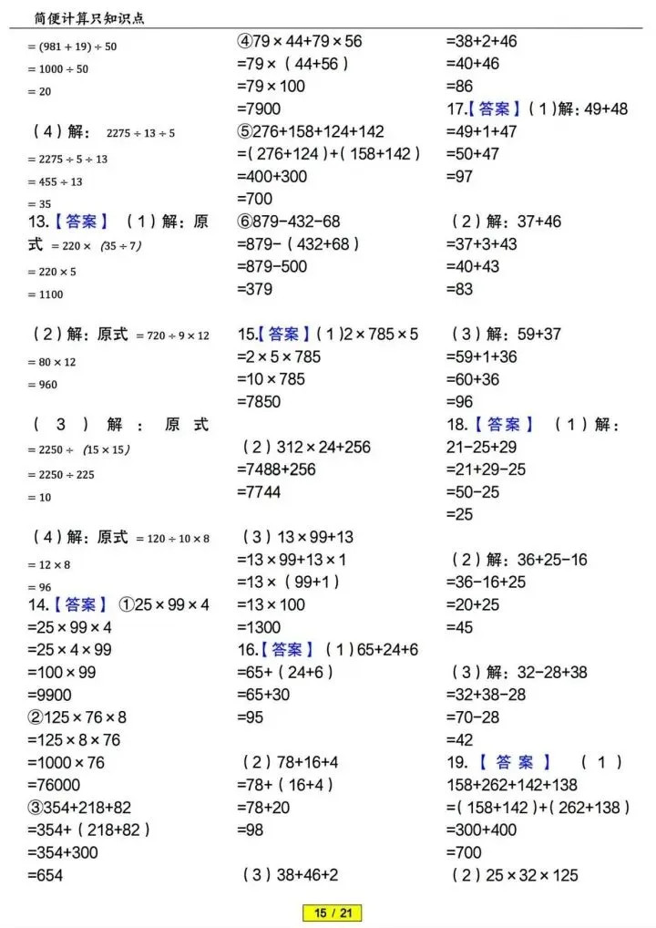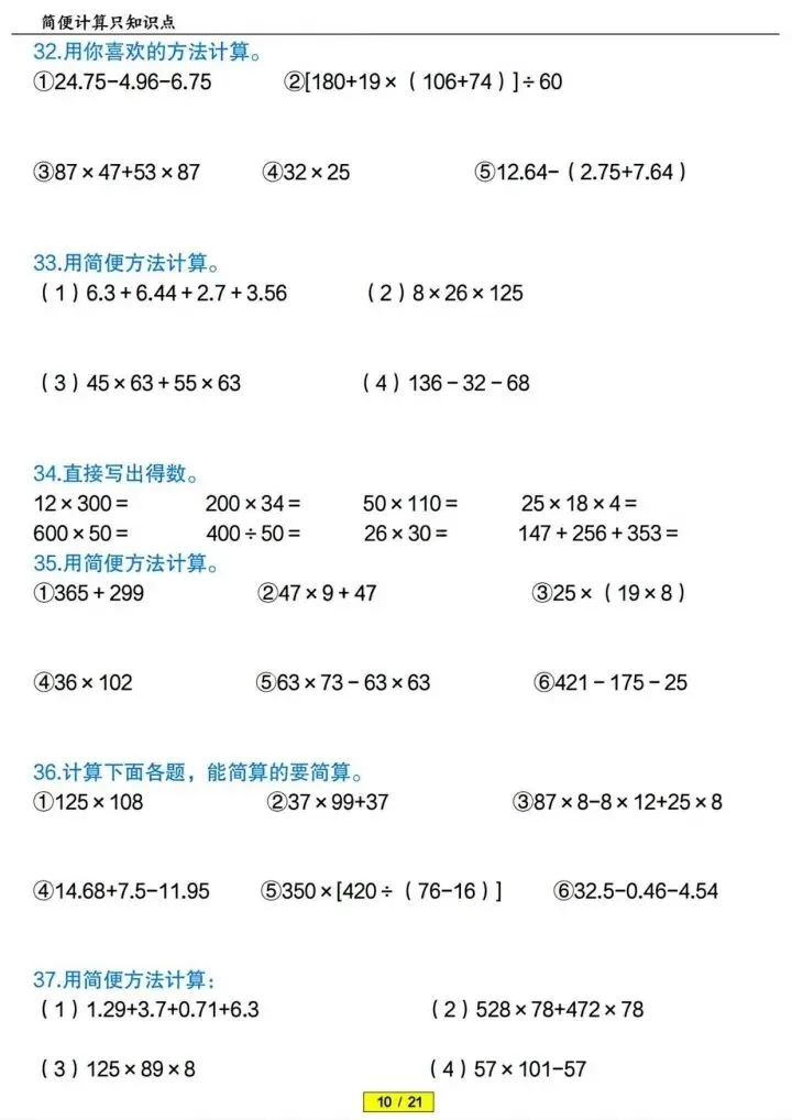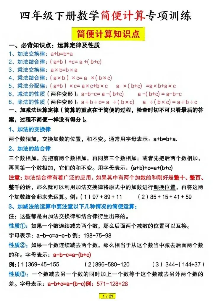 今日份分享四下数学简便计算专项练习(含答案)完整电子版可打印!这份资料已经整理成可打印版本,方便孩子随时翻看学习,建议家长先收藏,再转发给身边有需要的家庭,一起帮助孩子高效学习~