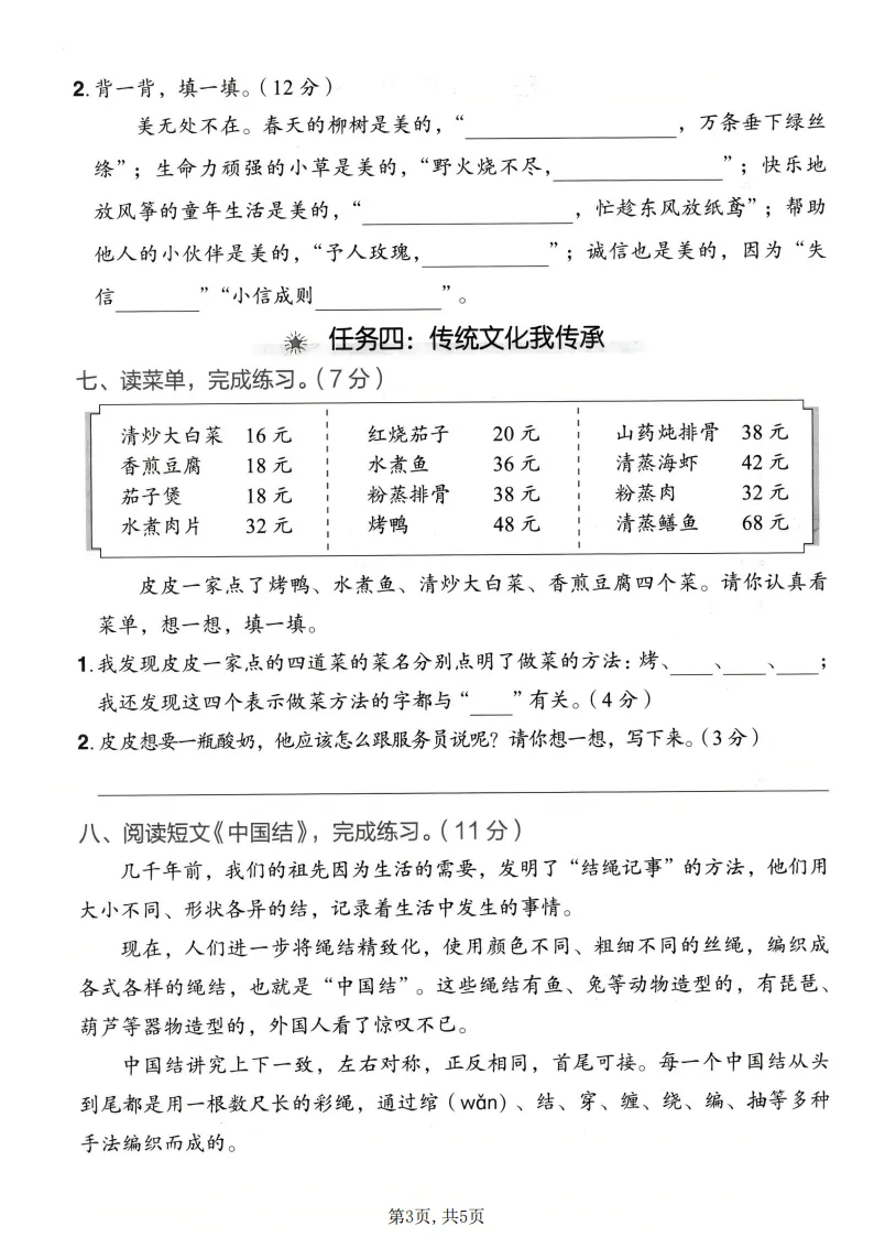 2026春二年级(下)语文期中情景测试卷电子版可打印