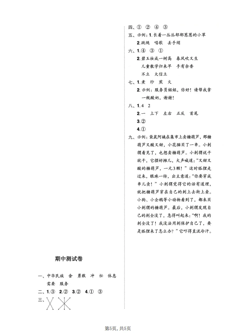 2026春二年级(下)语文期中情景测试卷完整版可打印!