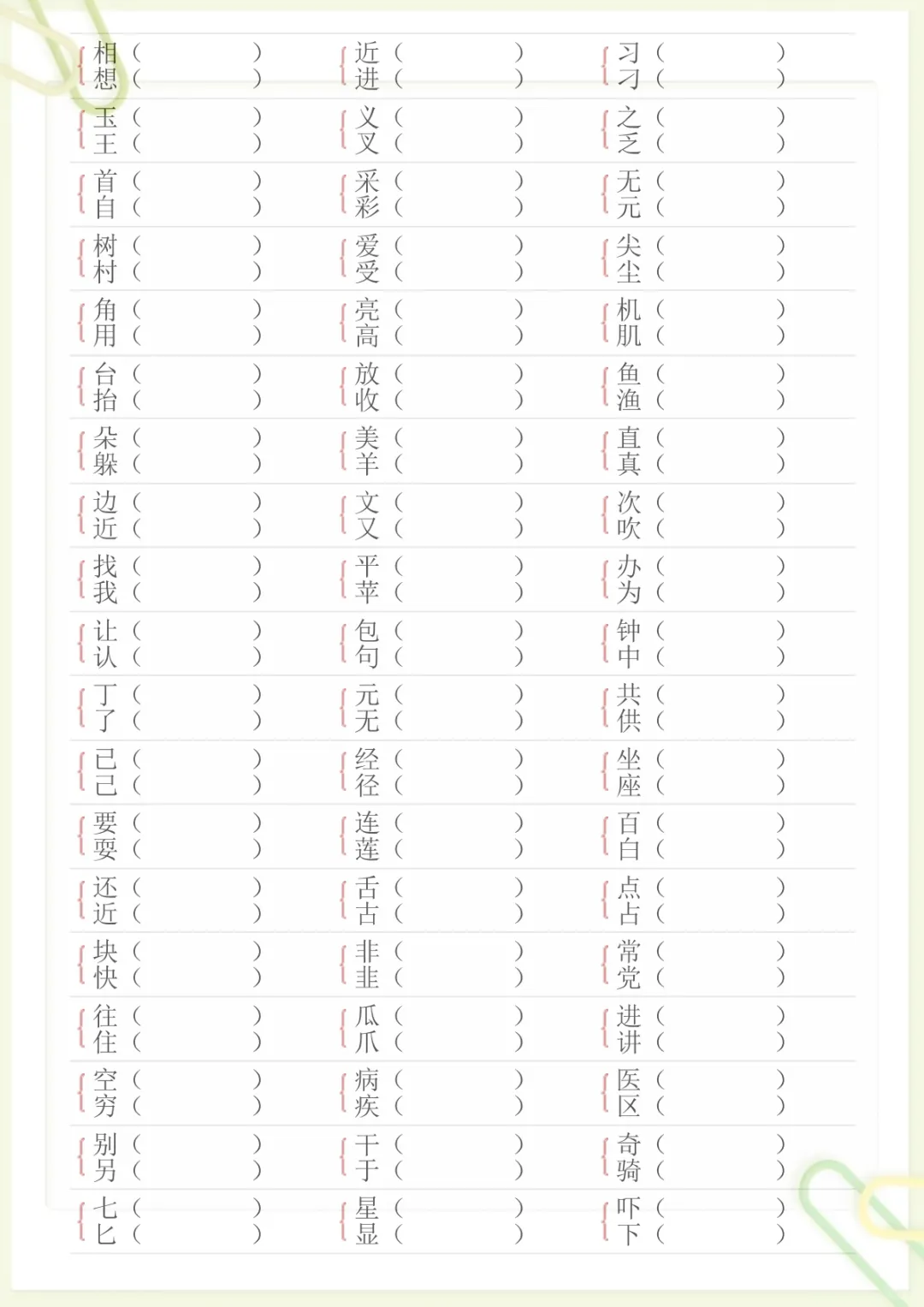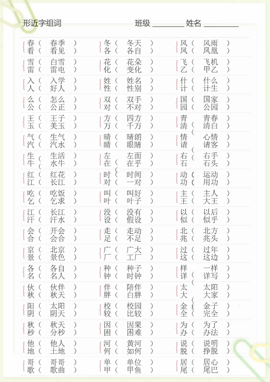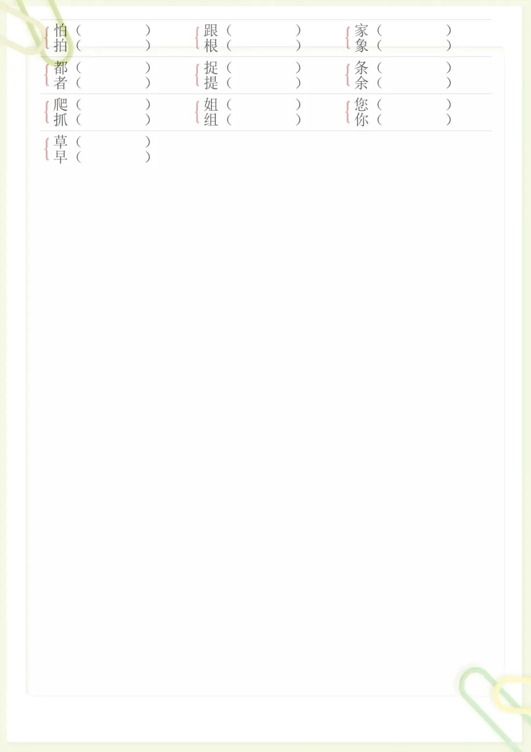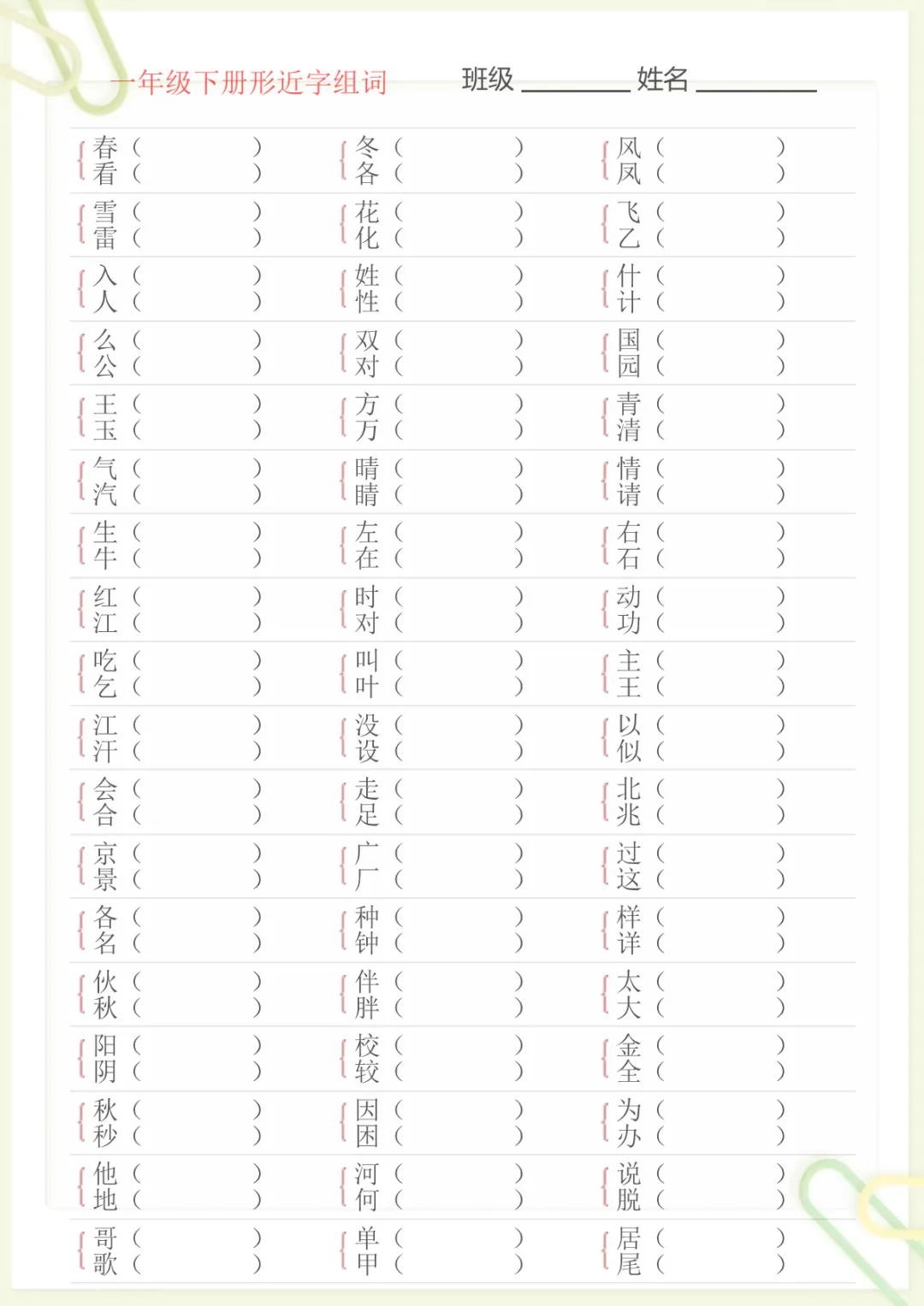【形近字专项练习】一下语文,电子版可打印