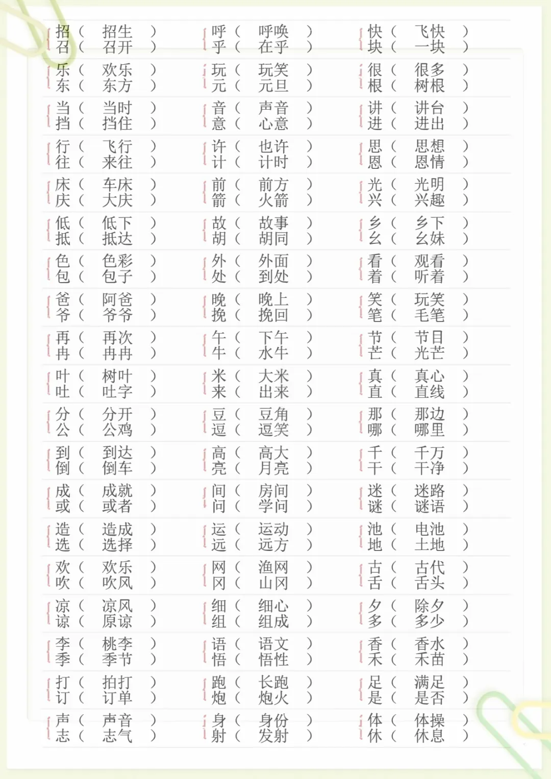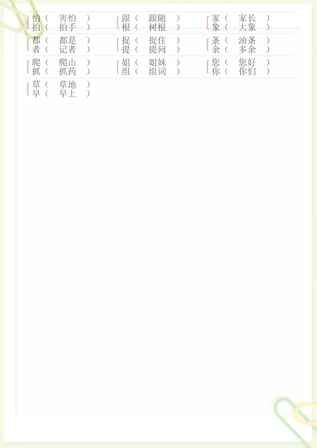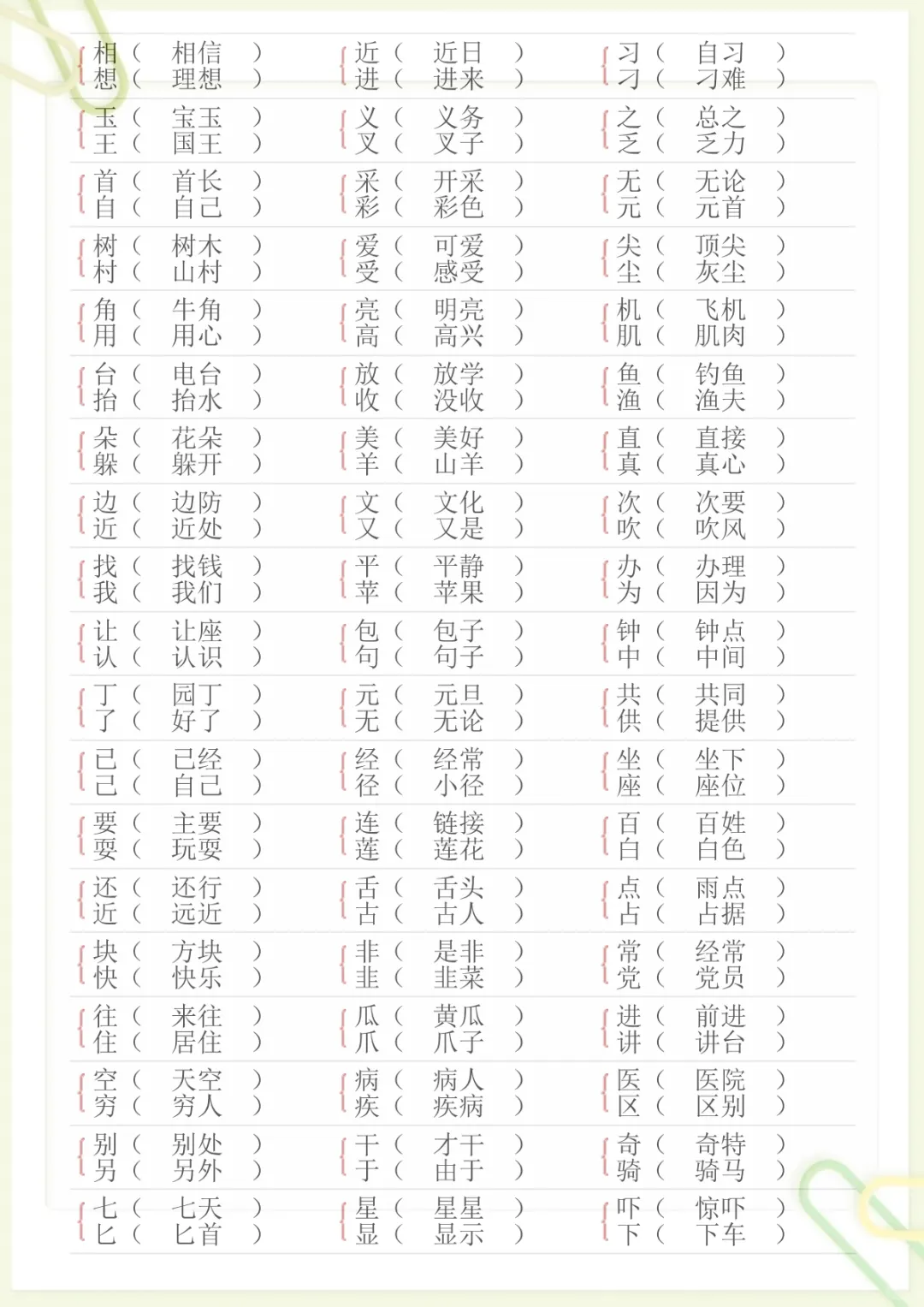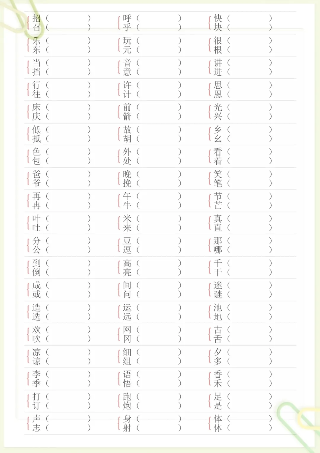 【形近字专项练习】一下语文,电子版可打印