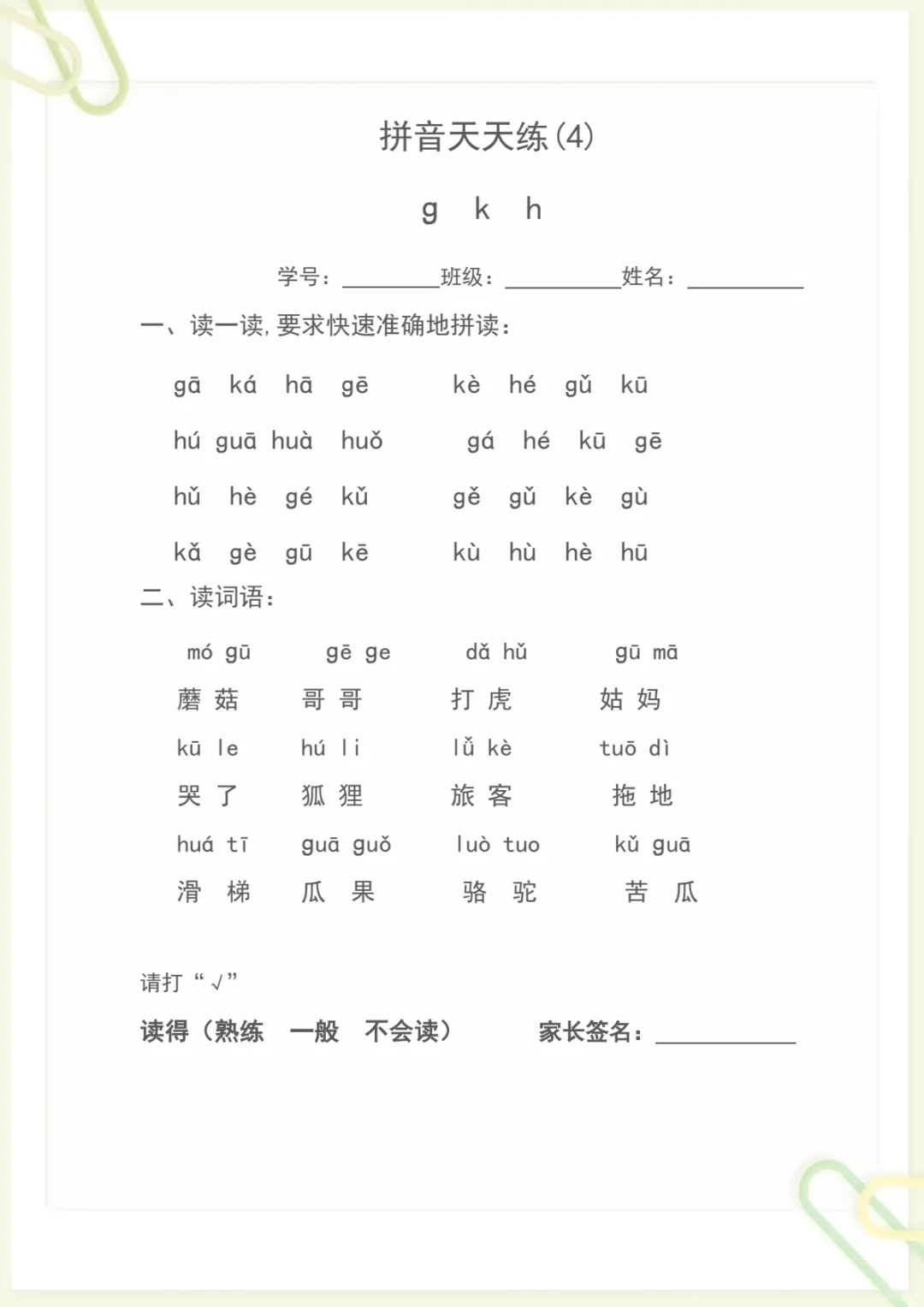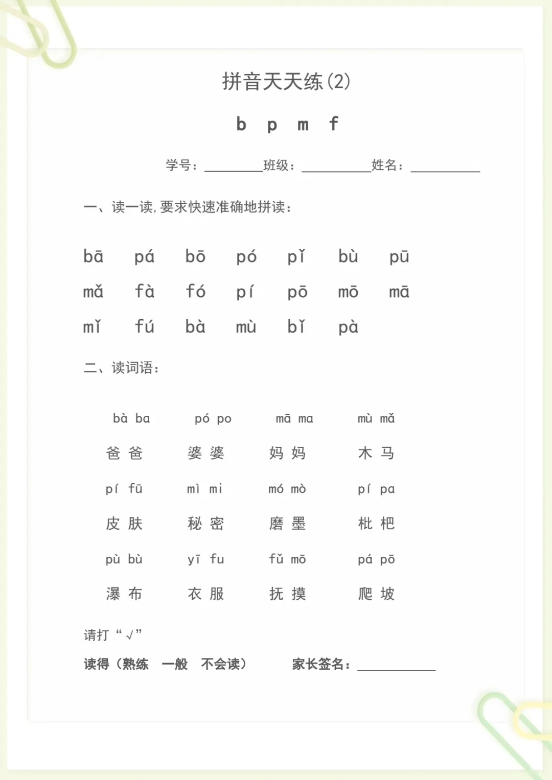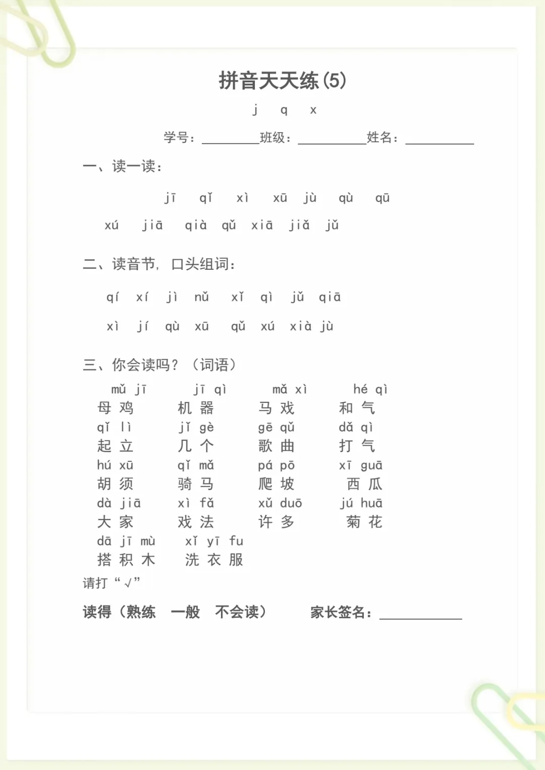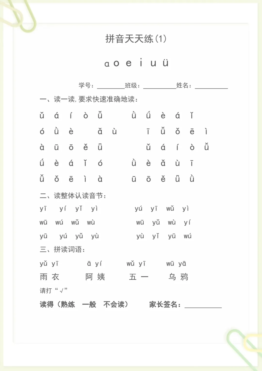 PY 021 幼小衔接拼音天天练,电子版可打印