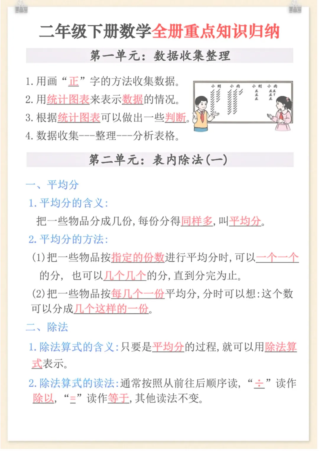 二年级下数学全册重点知识归纳,共6页,电子版可下载可打印,这份资料围绕二年级下册数学学习内容整理编排,涵盖多个核心知识点与专项训练内容,方便孩子梳理课内重点、查漏补缺,也更适合家长日常辅导和考前复习使用。内容精炼实用,打印出来就能学、就能练,帮助孩子更系统地掌握本册数学知识,有需要的家长可以及时保存给孩子用起来。