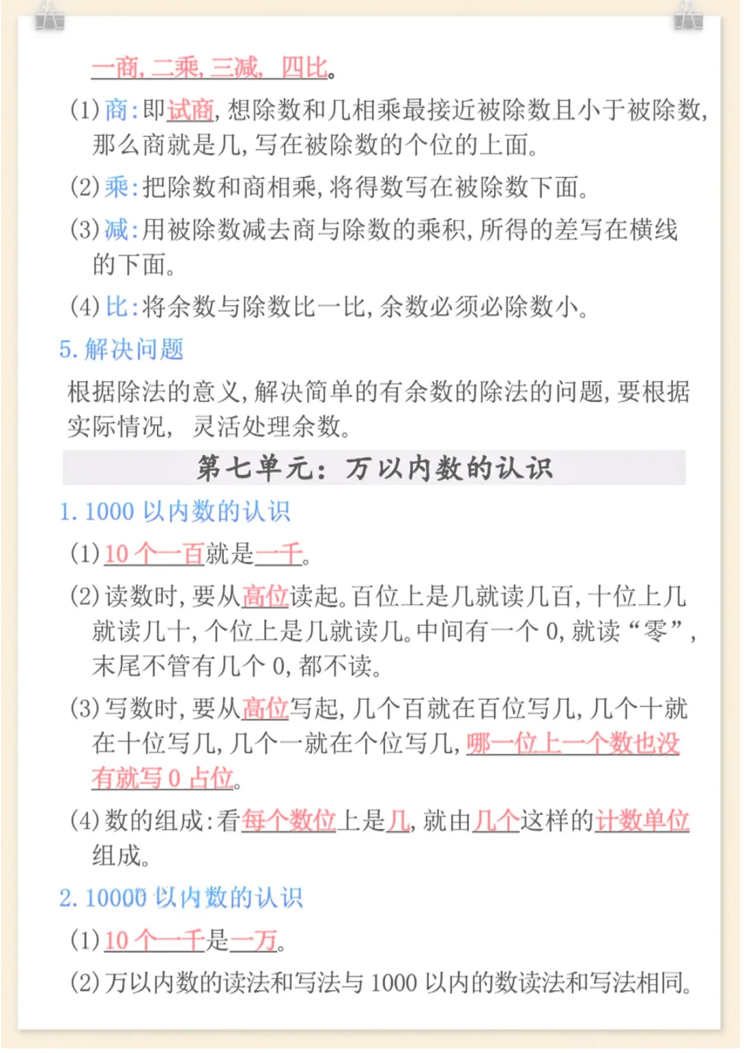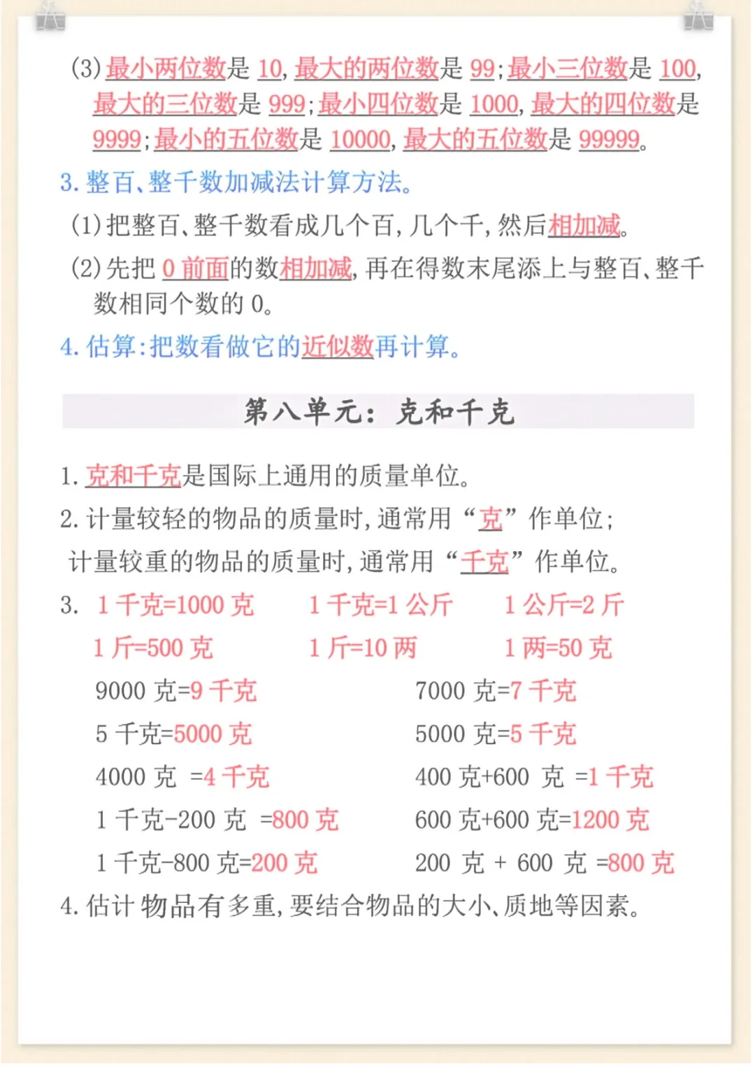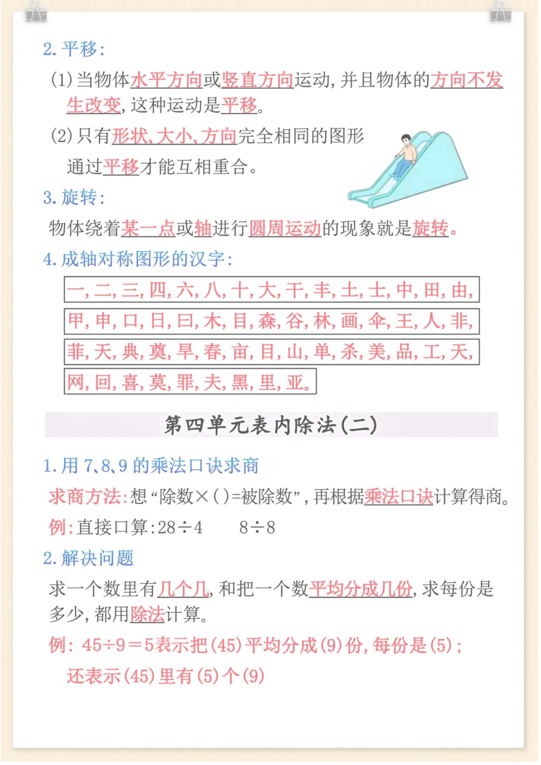 二年级下数学全册重点知识归纳,电子版可打印
