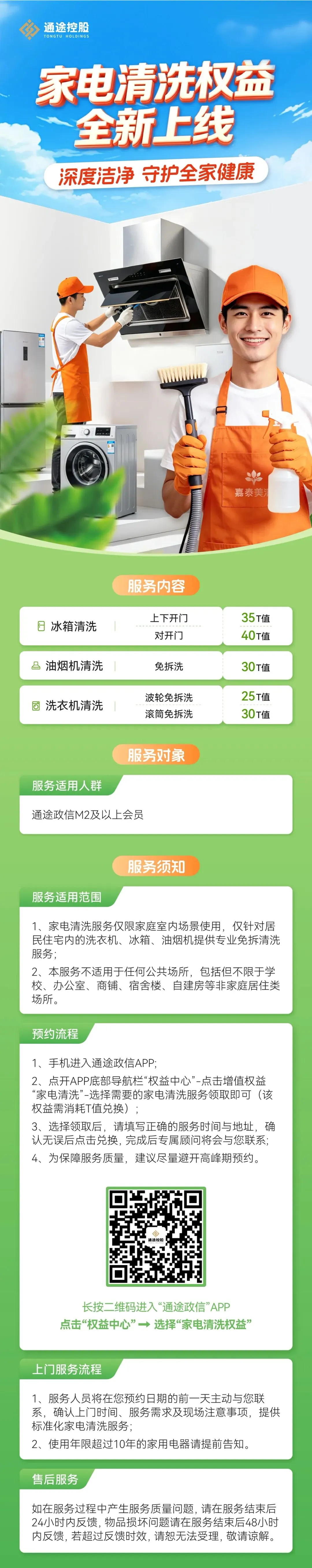 会员福利|深度洁净守护全家!通途政信APP家电清洗权益全新上线