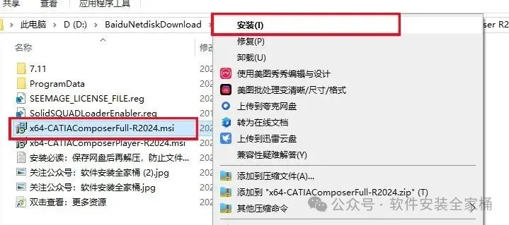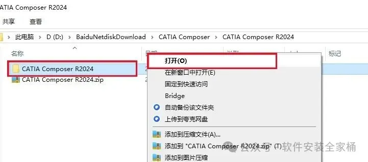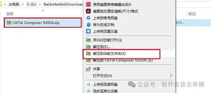 1、下载CATIA Composer R2024软件安装包,右键选择【解压到当前文件夹】