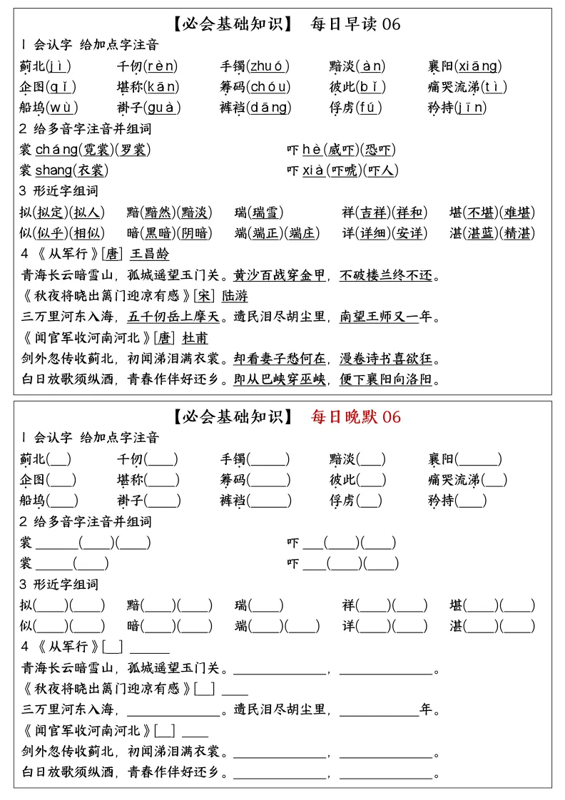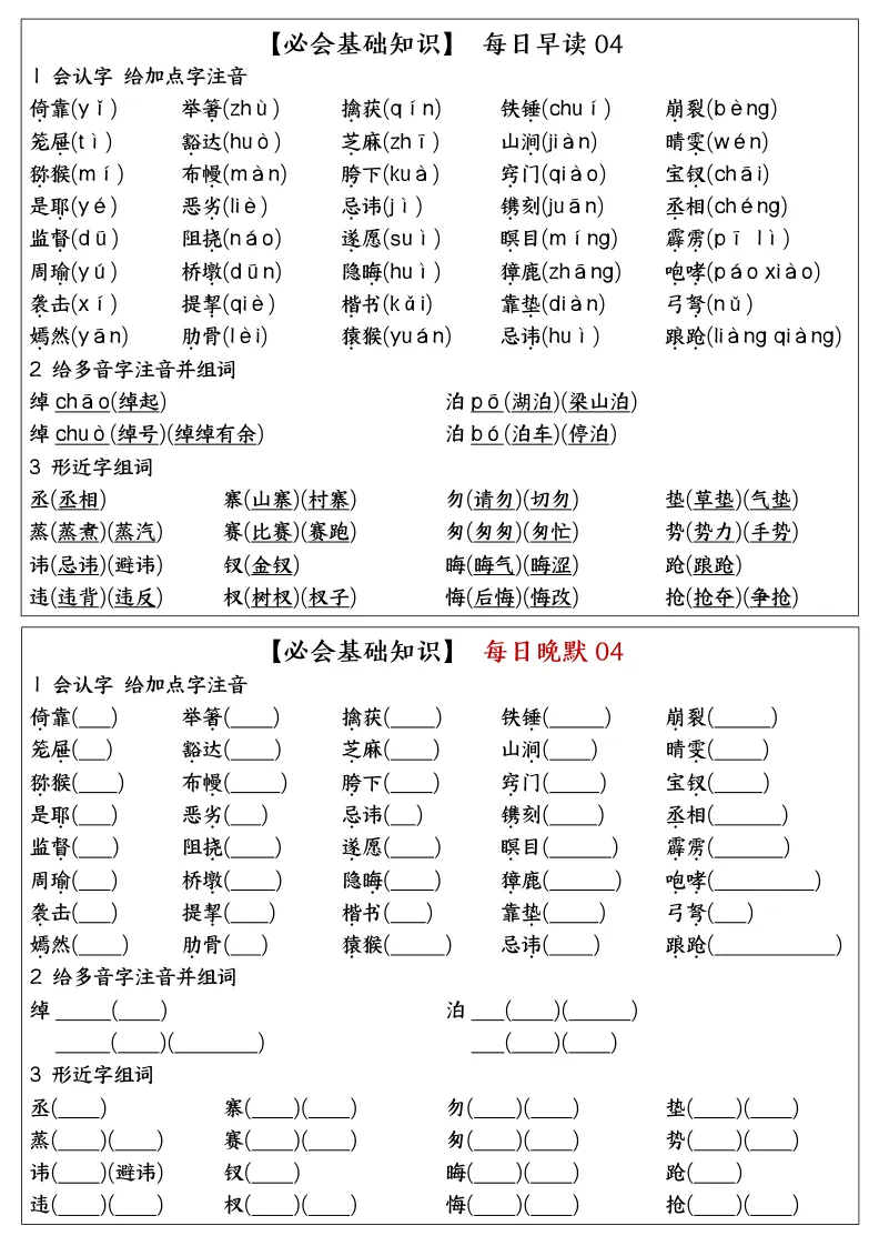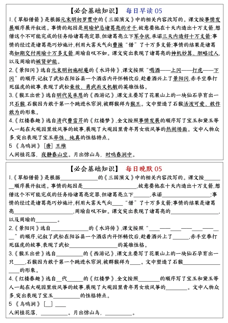 2026五年级下册人教版语文(部编版)《语文基础知识小纸条》,有答案;可下载打印(可下载打印)