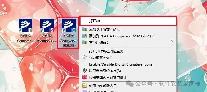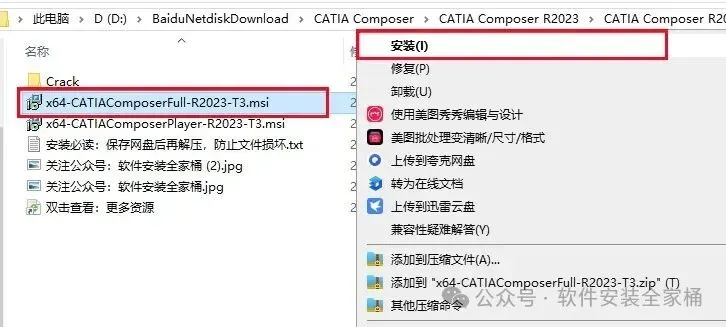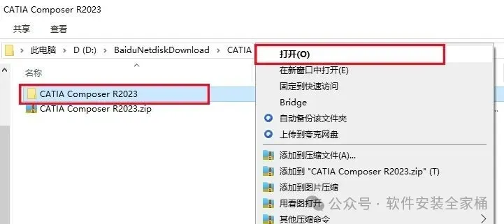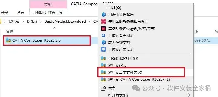 1、下载CATIA Composer R2023软件安装包,右键选择【解压到当前文件夹】