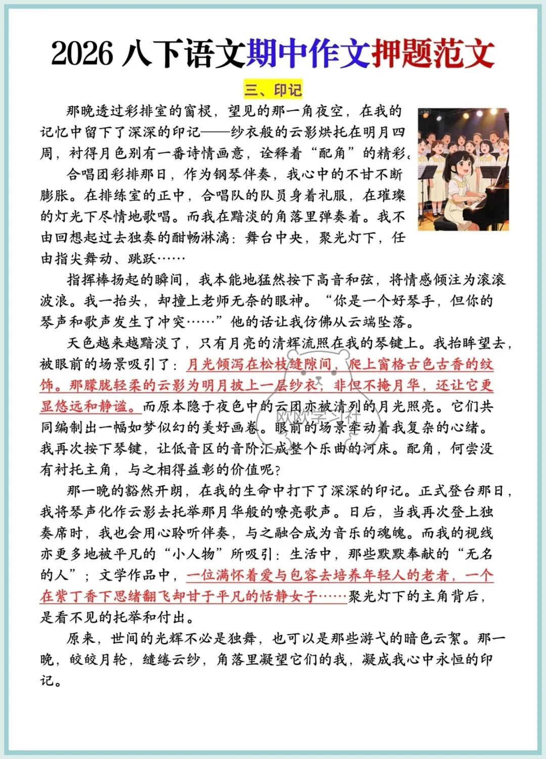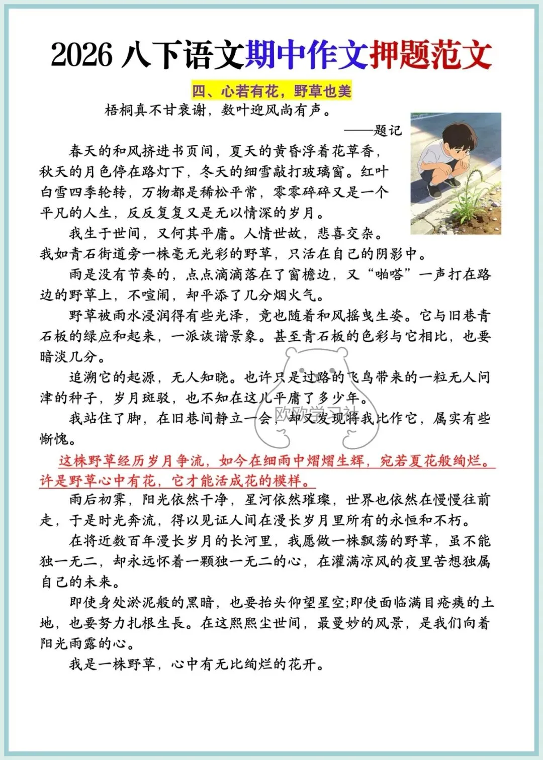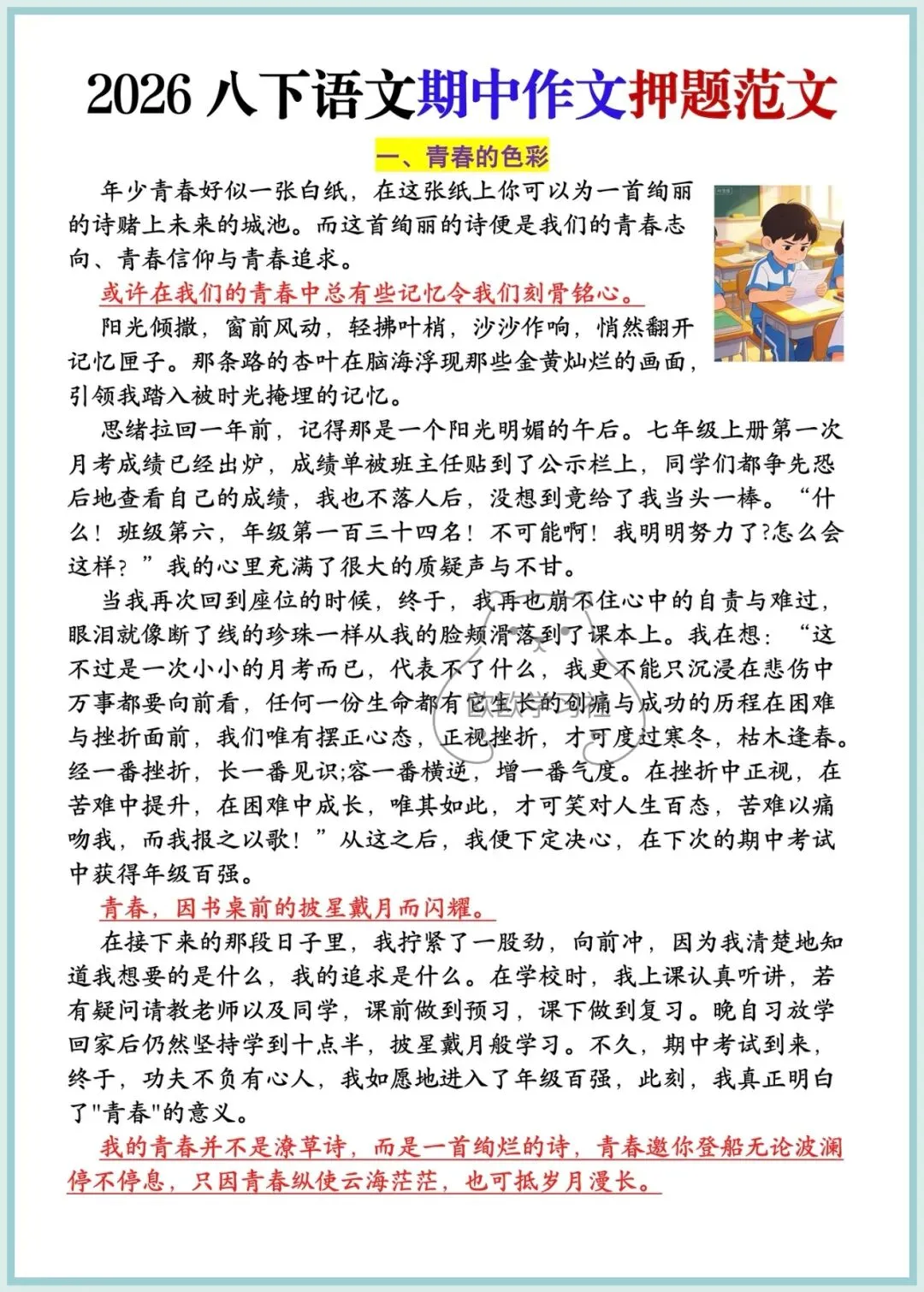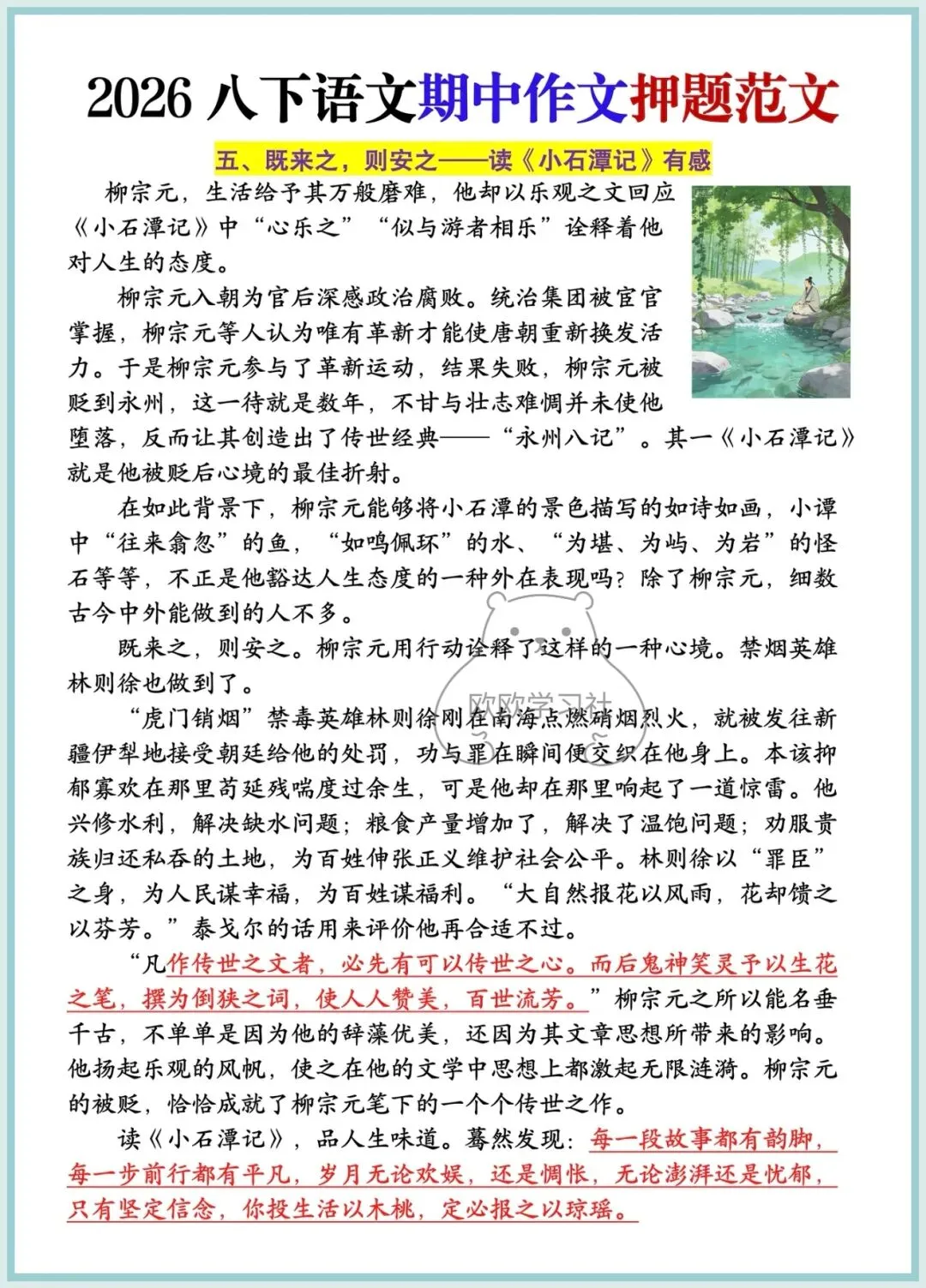 八年级下册语文期中作文押题范文5篇,可保存打印!