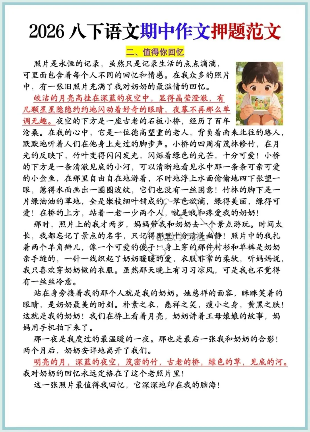 八年级下册语文期中作文押题范文5篇,电子版可打印可下载!