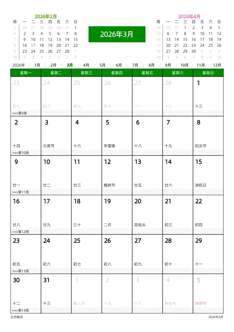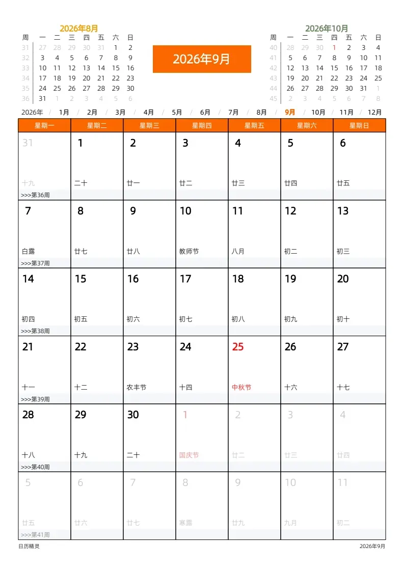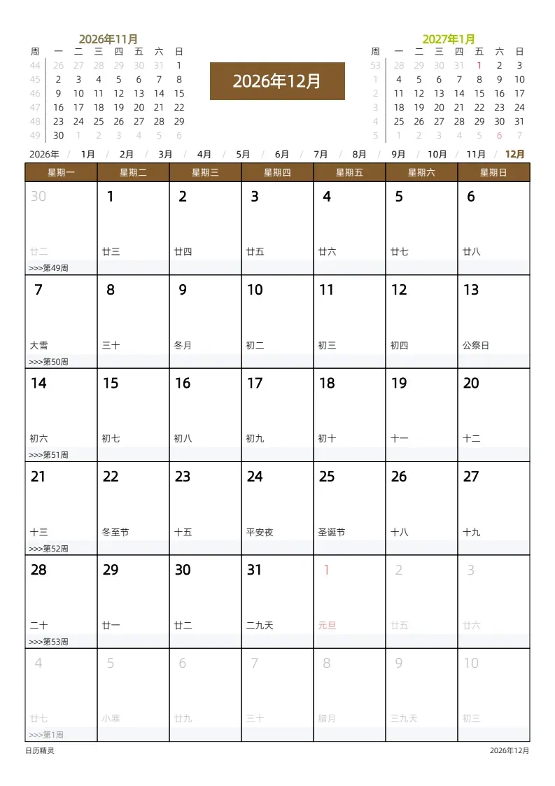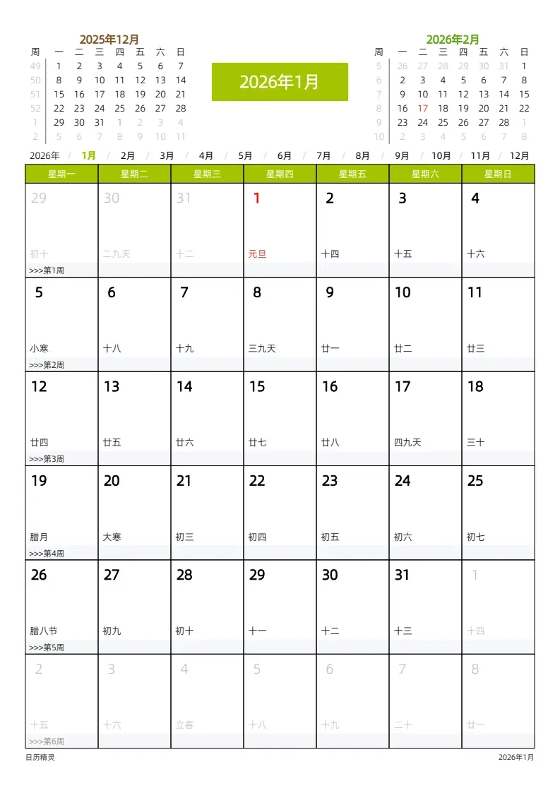 2026日历/月历/年历 +50套手机壁纸 (网盘链接详见文末)