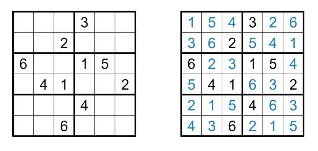 将数字1-6 填入空格内, 使每行、每列及每宫内数字均不重复。