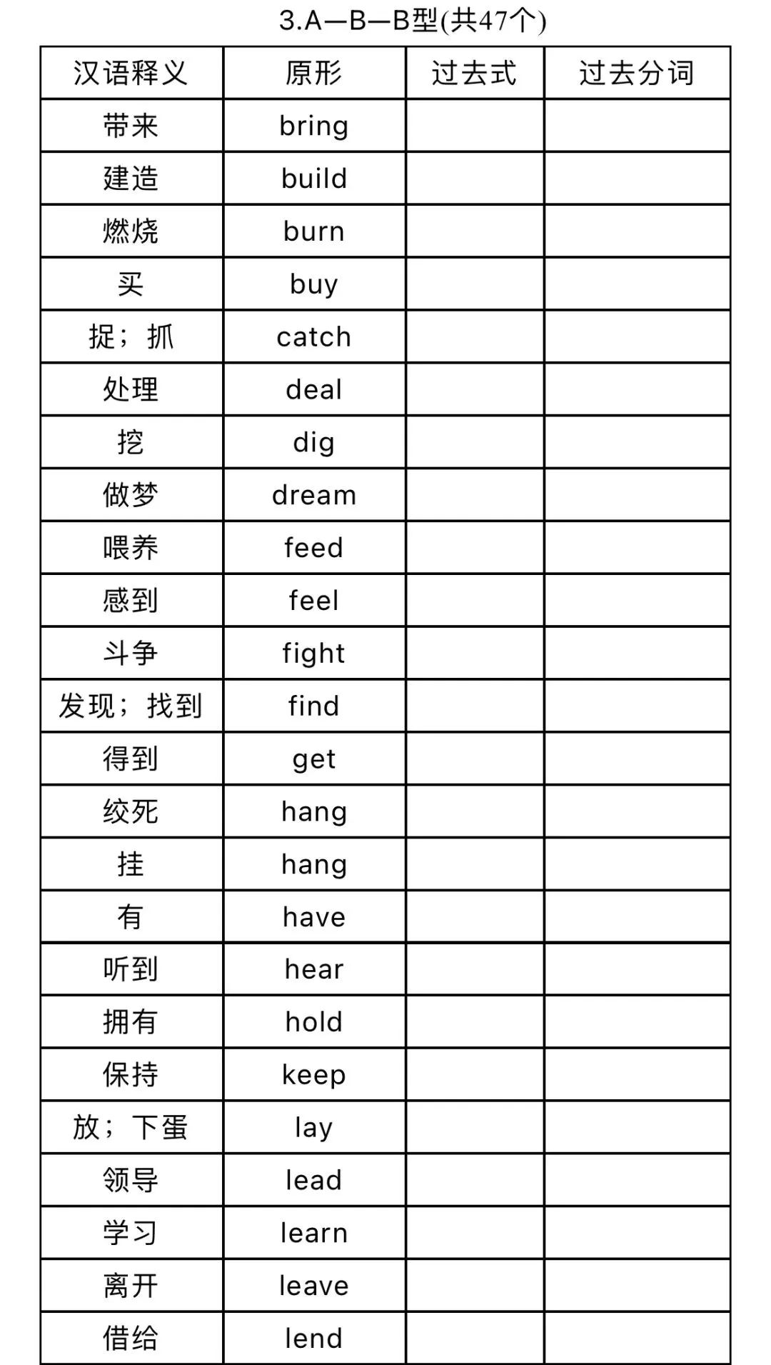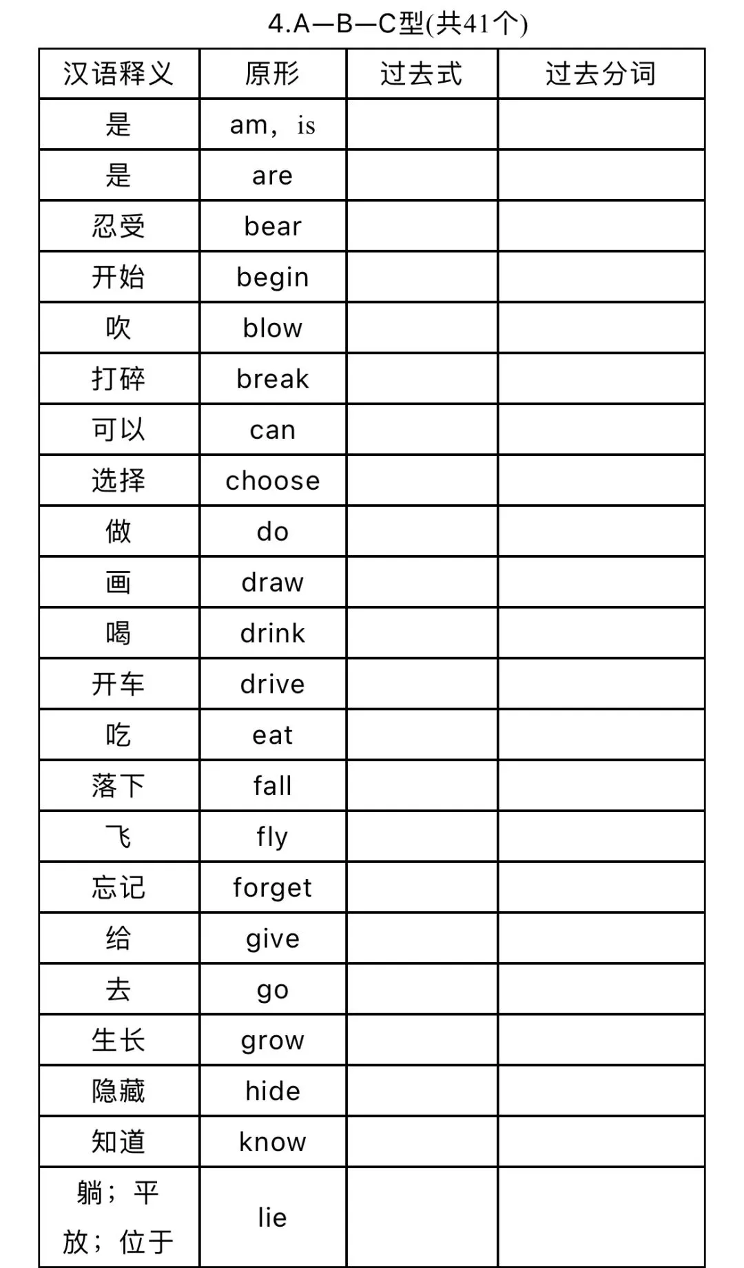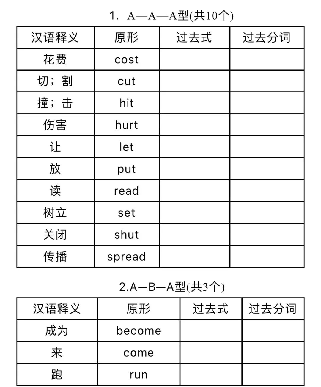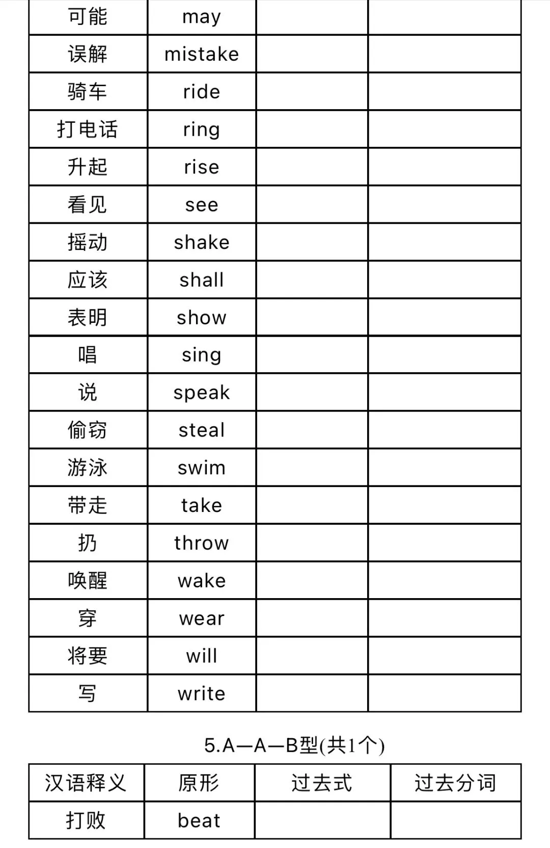 英语不规则动词默写+背诵版本(附电子版),打印出来,贴在墙上天天背!