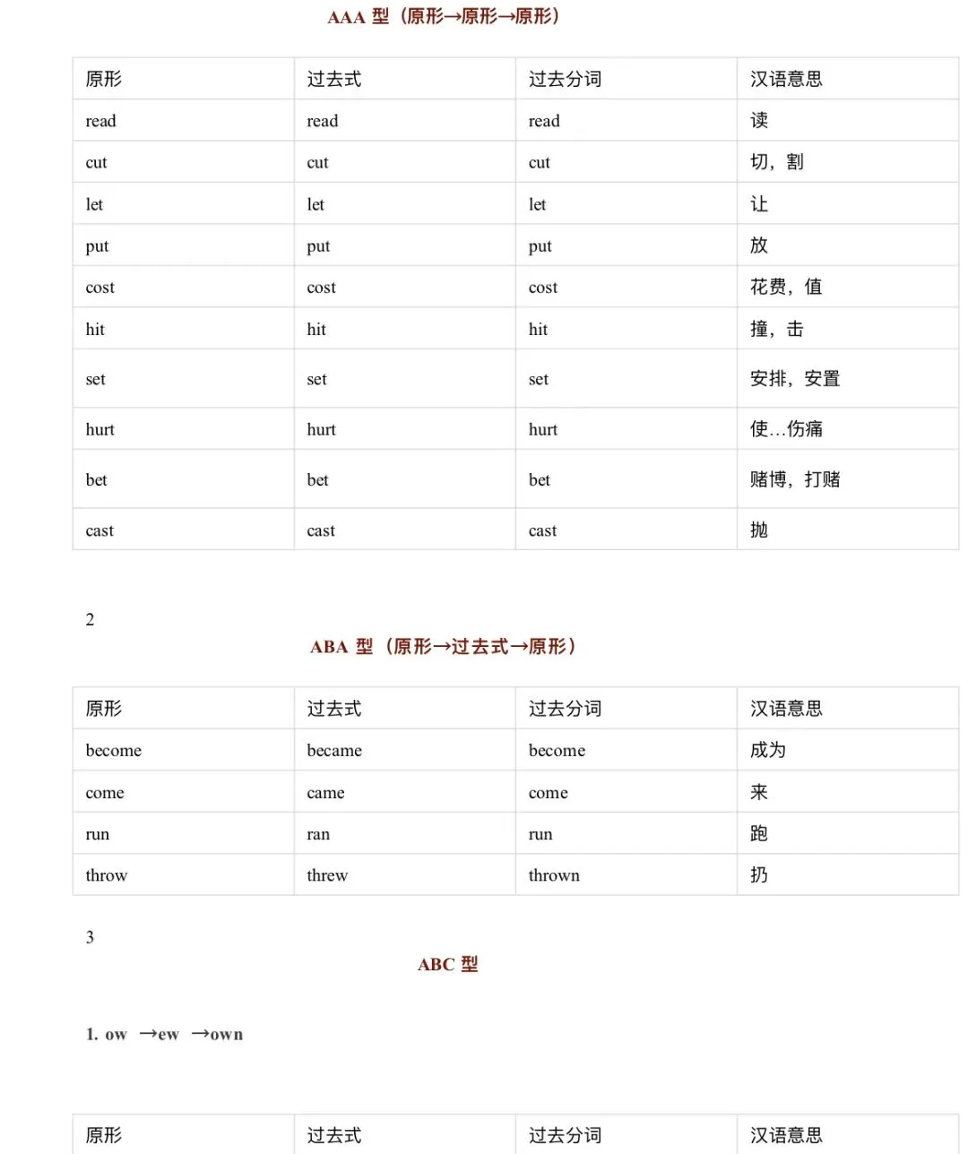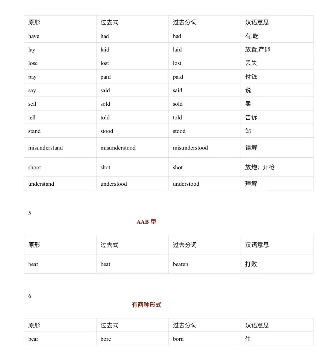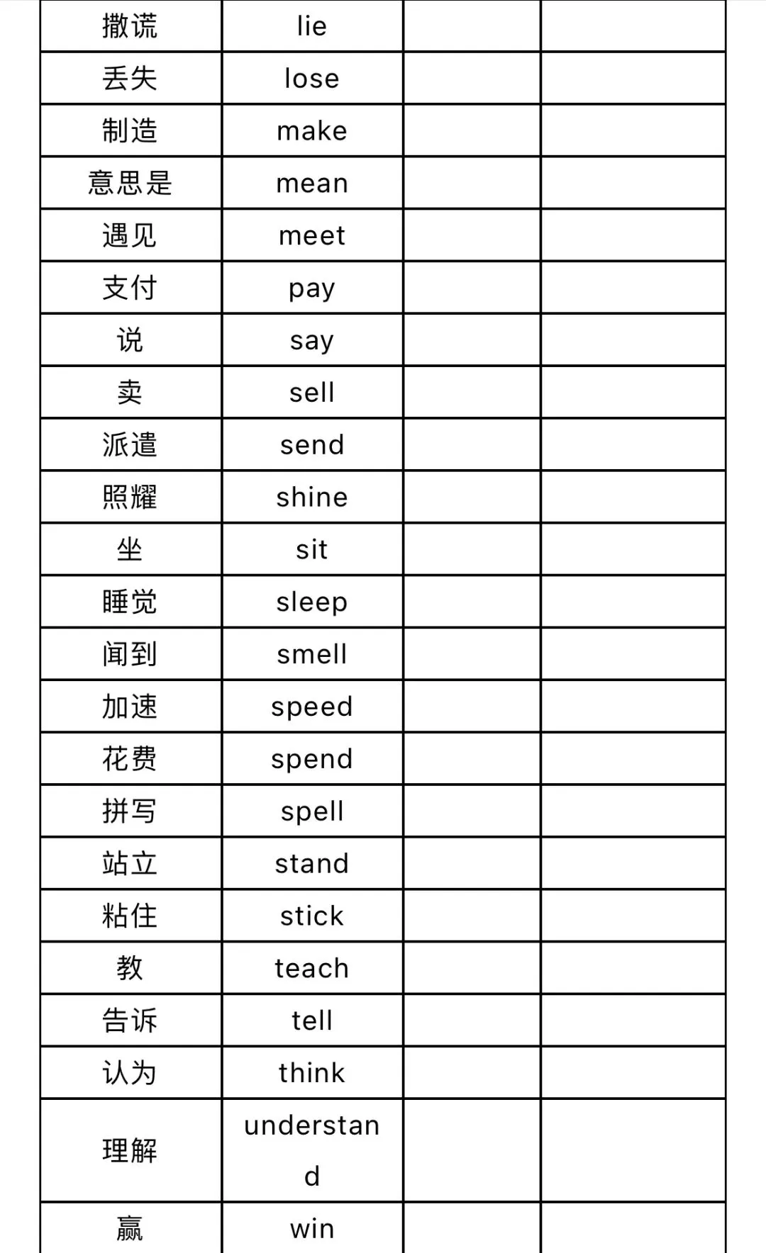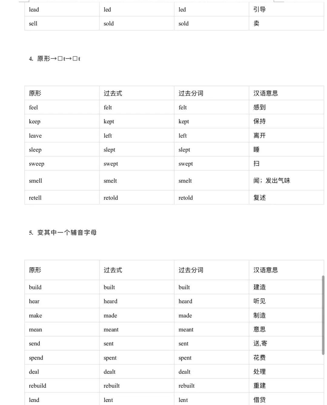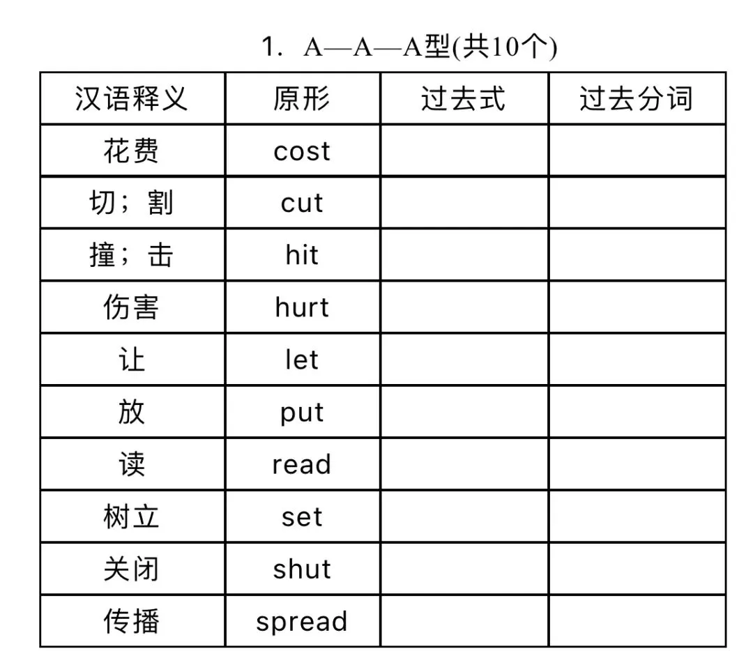 英语不规则动词默写+背诵版本(附电子版),打印出来,贴在墙上天天背!