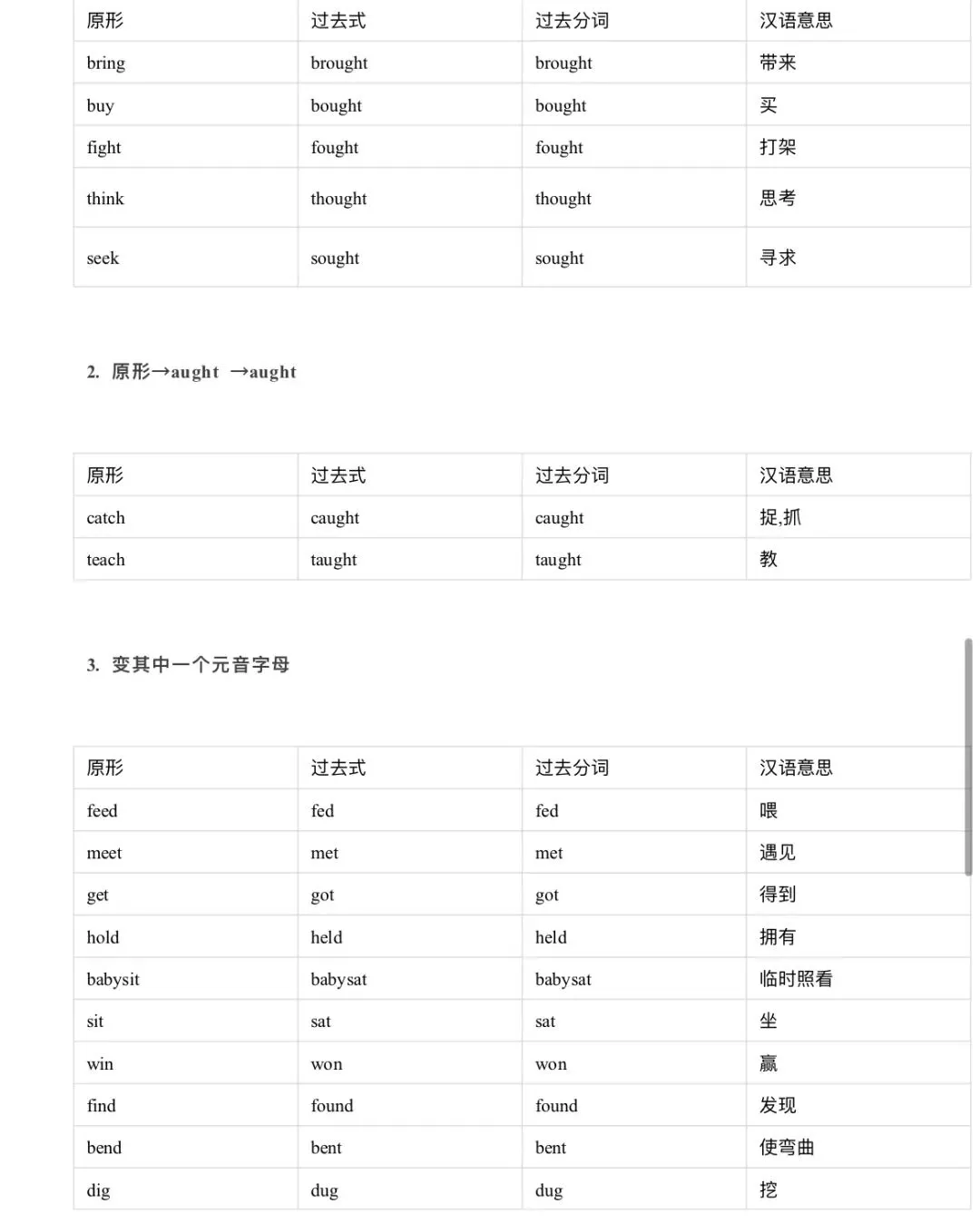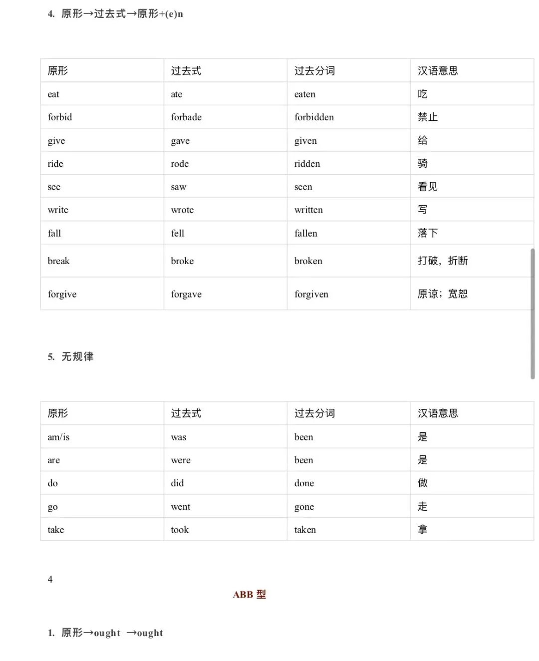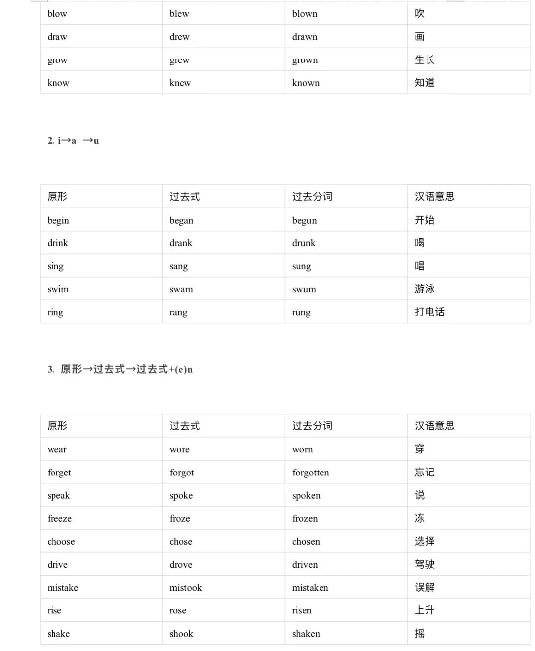 动词不规则变化是英语学习中非常基础的知识内容,涉及的的语法点包括时态、语态、非谓语动词等,是历次大小考必考知识点。