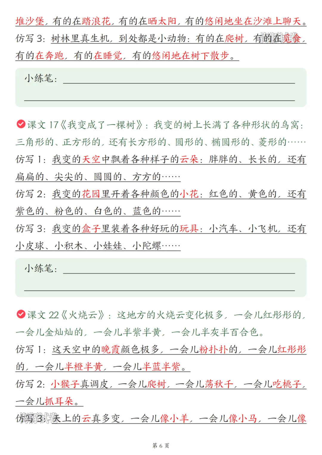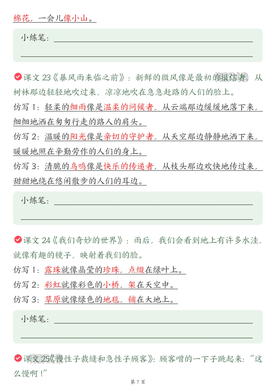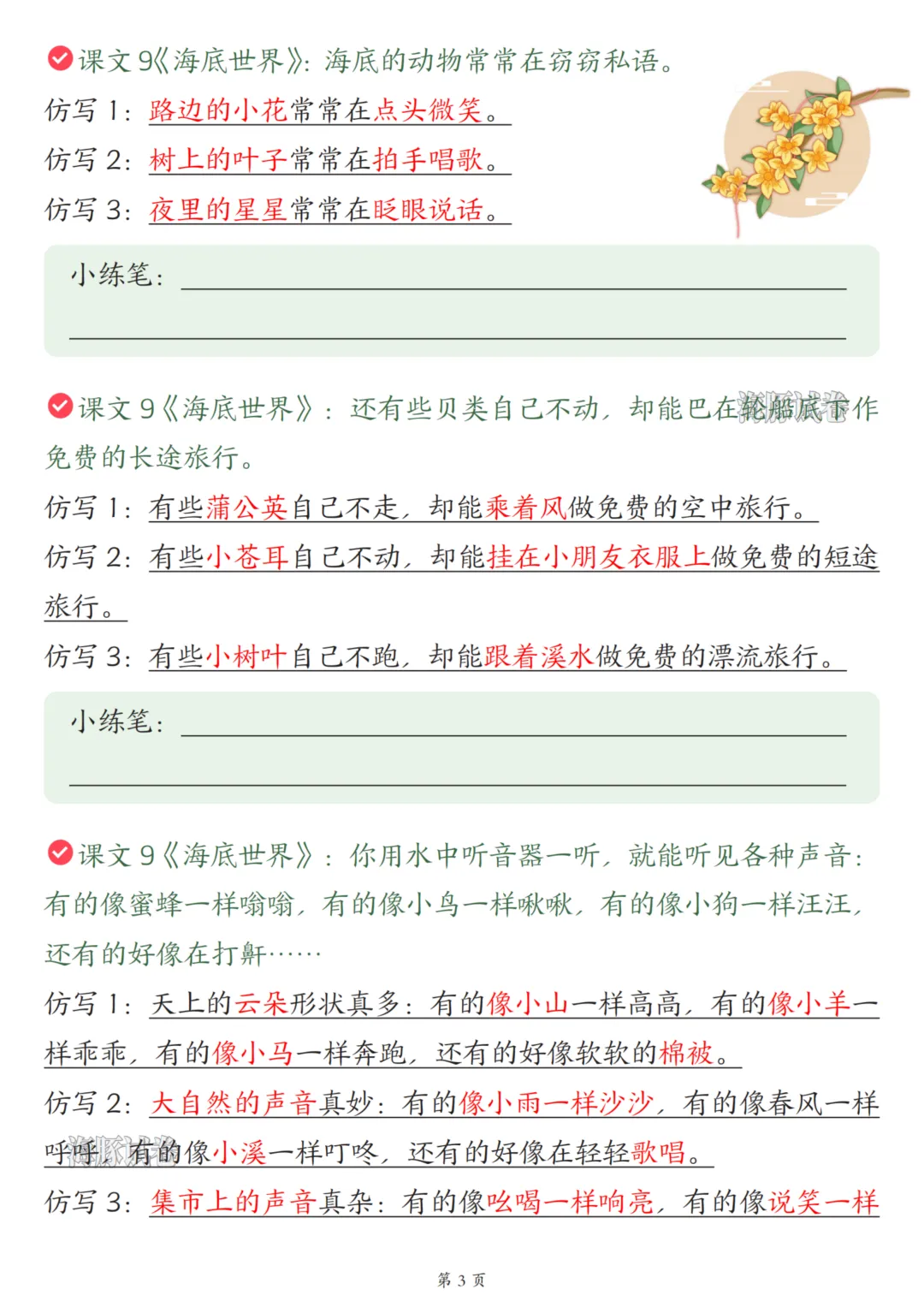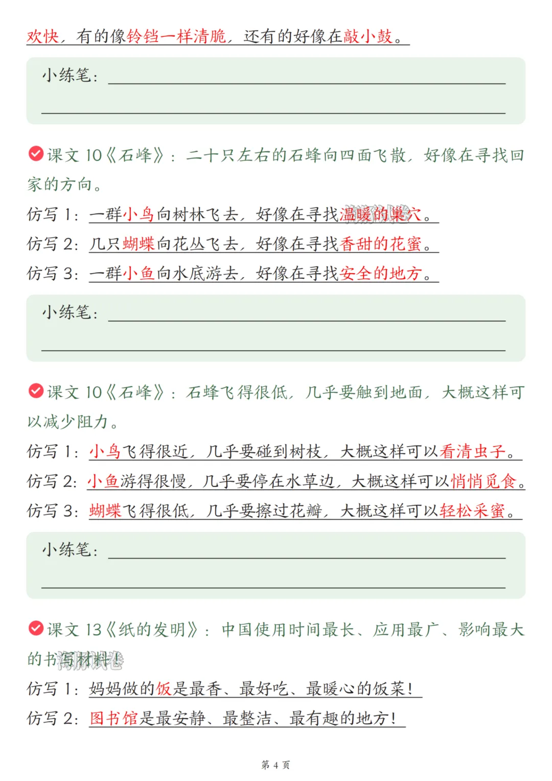 26新版三年级下册语文《重点句子仿写》,电子版可打印