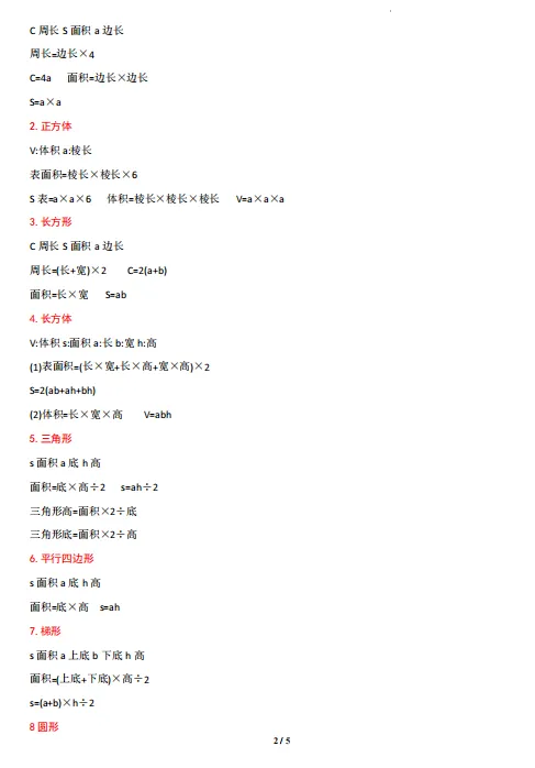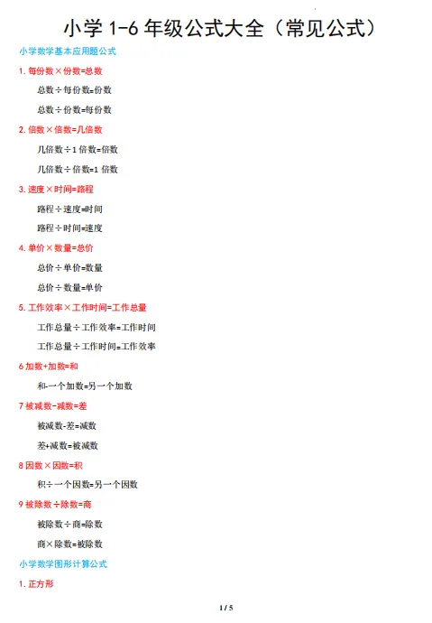 【免费下载】济南1-6年级小学数学常见公式大全!(纯干货)